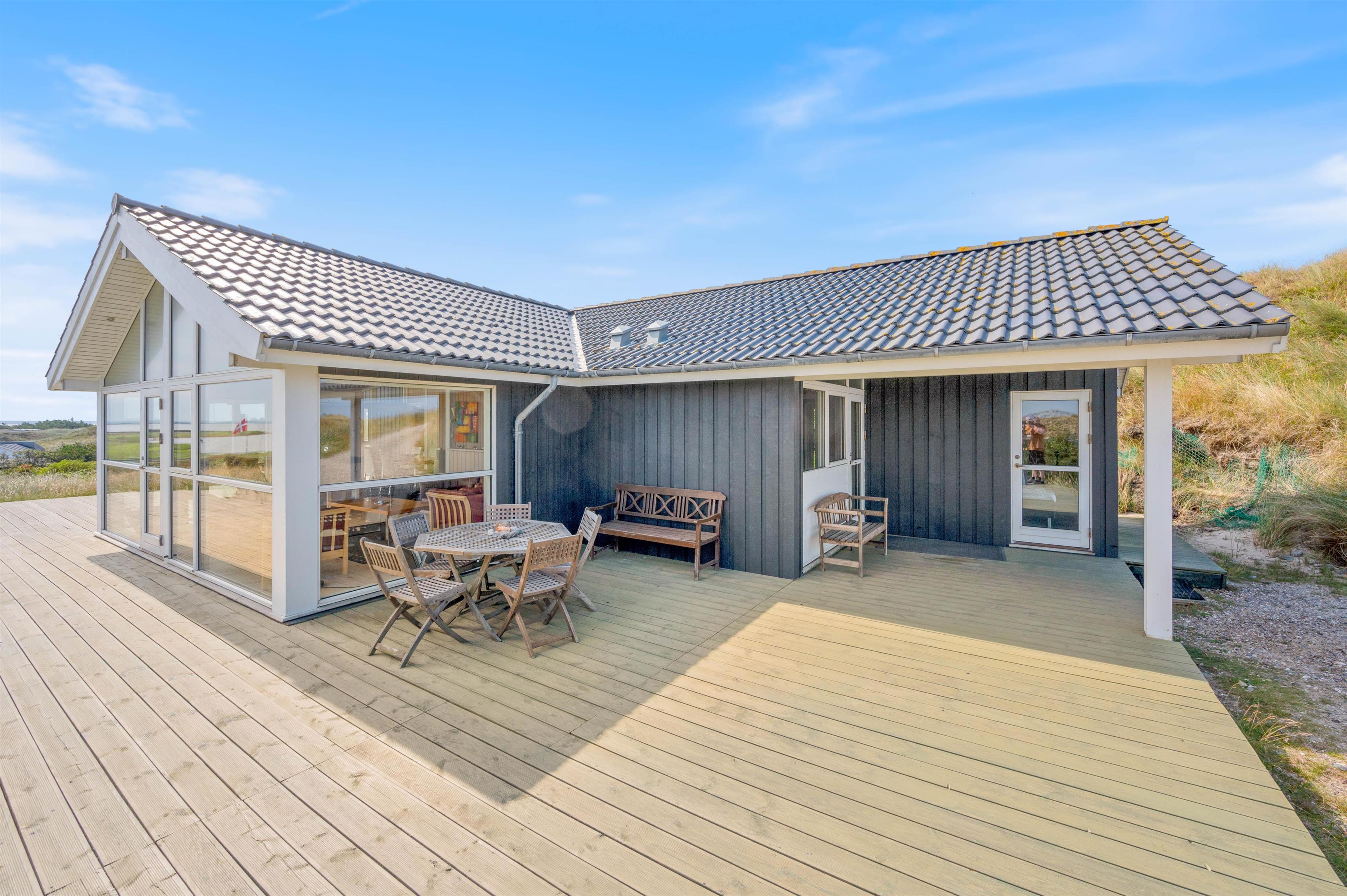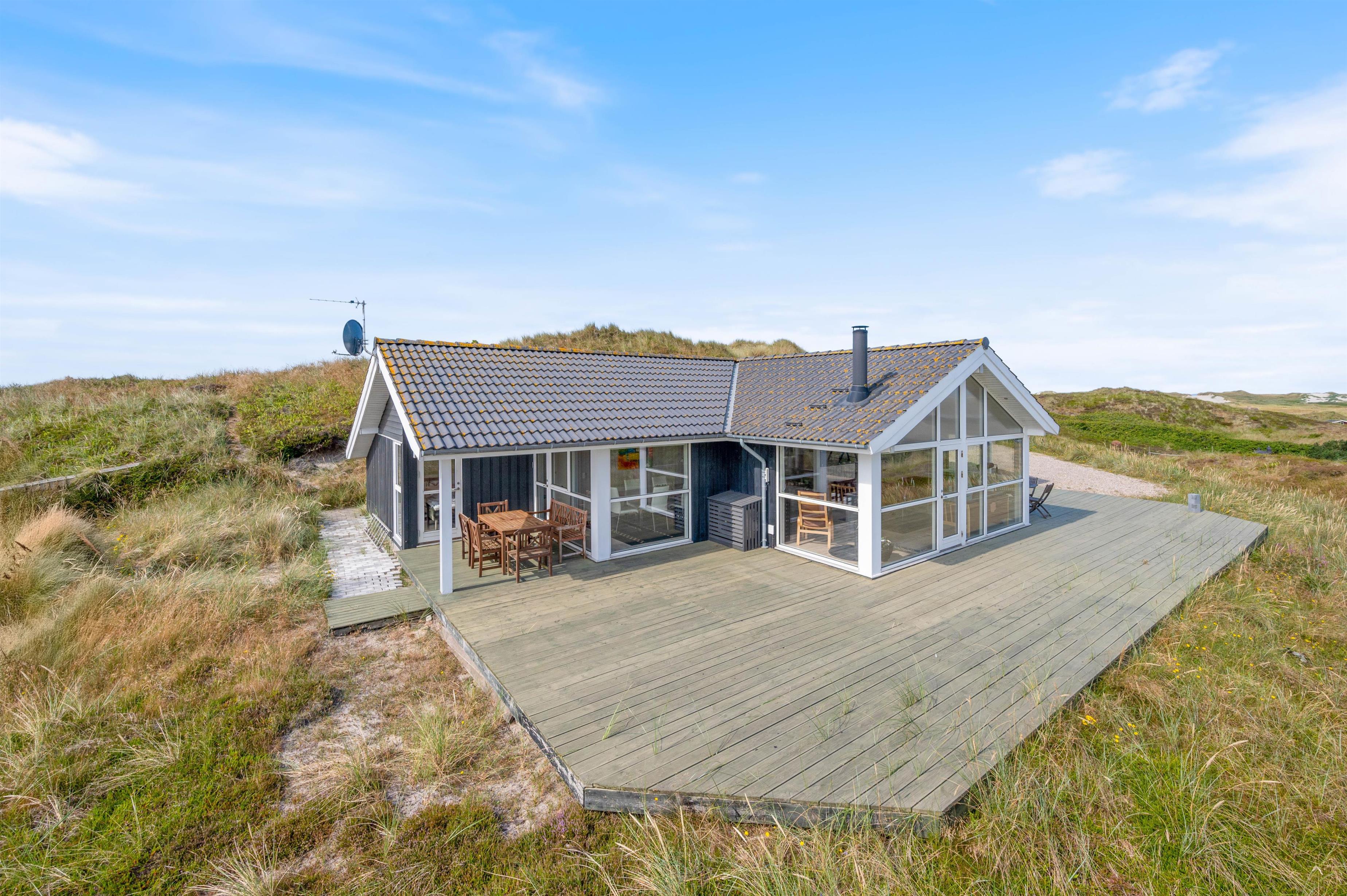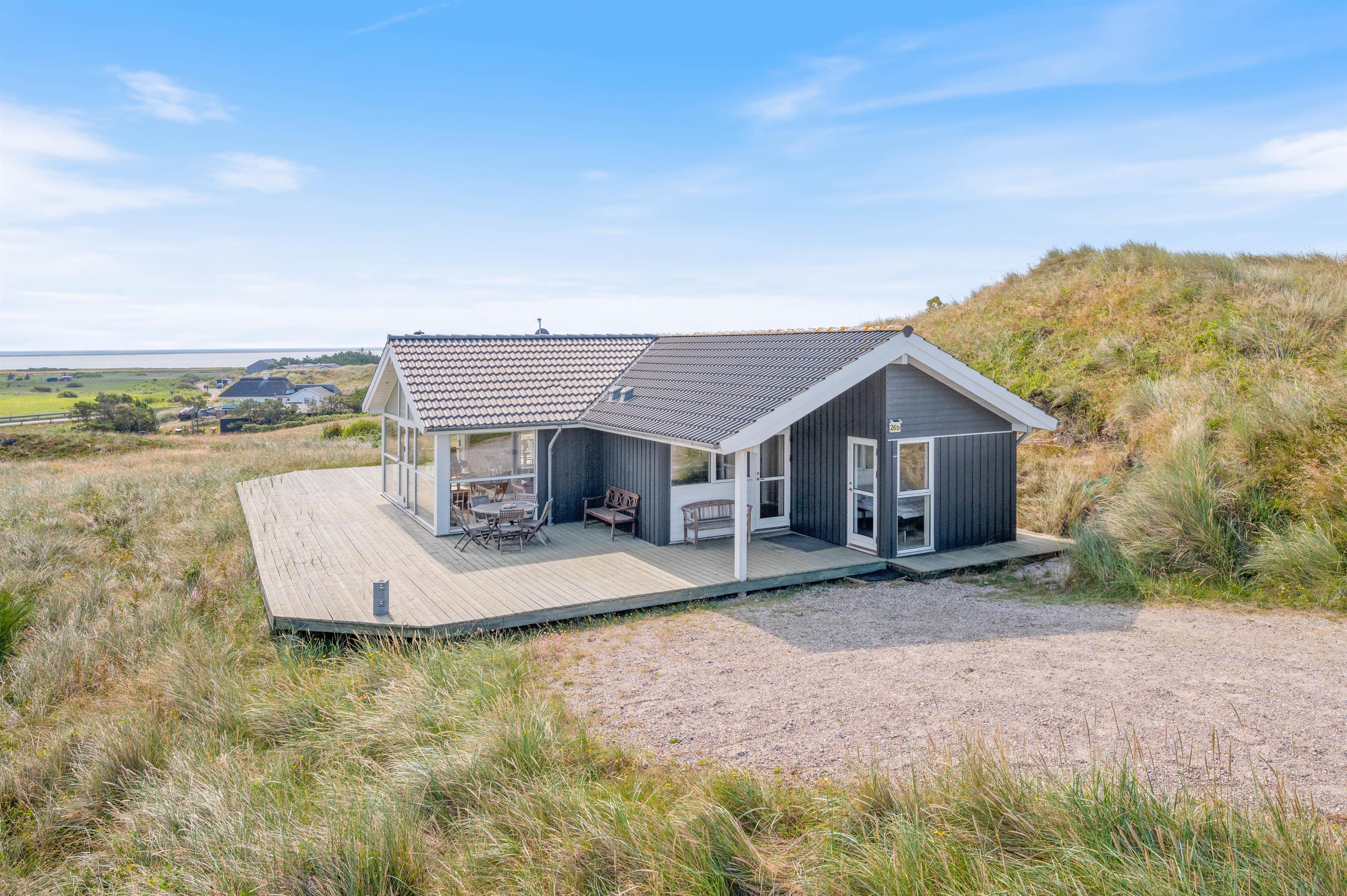 Det skønne sommerhus ligger idyllisk og let forhøjet på en klitgrund i ferieområdet Skodbjerge. Her befinder I jer lige mellem Vesterhavet og Ringkøbing Fjord, hvorfor området især er populært blandt naturelskere, lystfiskere og surfere.