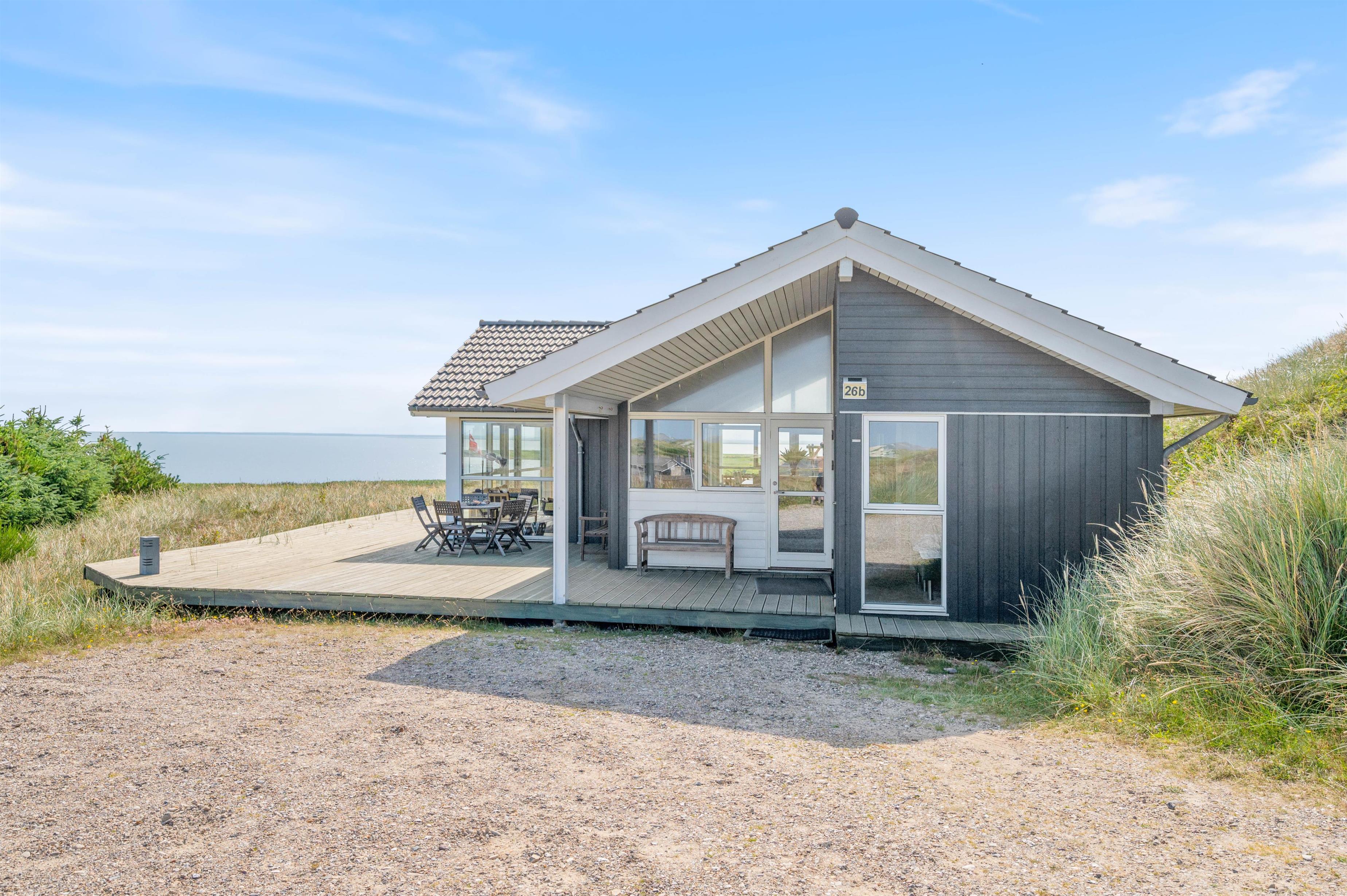 Sommerhuset på Sommervej 26B indbyder til en afslappende ferie på vestkysten med plads til 6 feriegæster samt jeres hund. Det hyggelige sommerhus ligger i ferieområdet Skodbjerge på landtangen Holmsland Klit mellem Vesterhavet og Ringkøbing Fjord. Feriehuset byder på rig mulighed for afslapning foran brændeovnen eller i spabadet efterfulgt af en tur i saunaen.