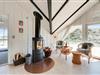 Hjertet og samlingspunktet i sommerhuset er det store opholdsrum med stue, spiseplads og køkken i ét. Her er plads til alle, og alle er med i fællesskabet, uanset om du står for madlavningen i det veludstyrede køkken med bl.a. både mikroovn og opvaskemaskine – eller om I slapper af med kortspil ved sofabordet, mens I nyder lyden af den knitrende ild i brændeovnen.