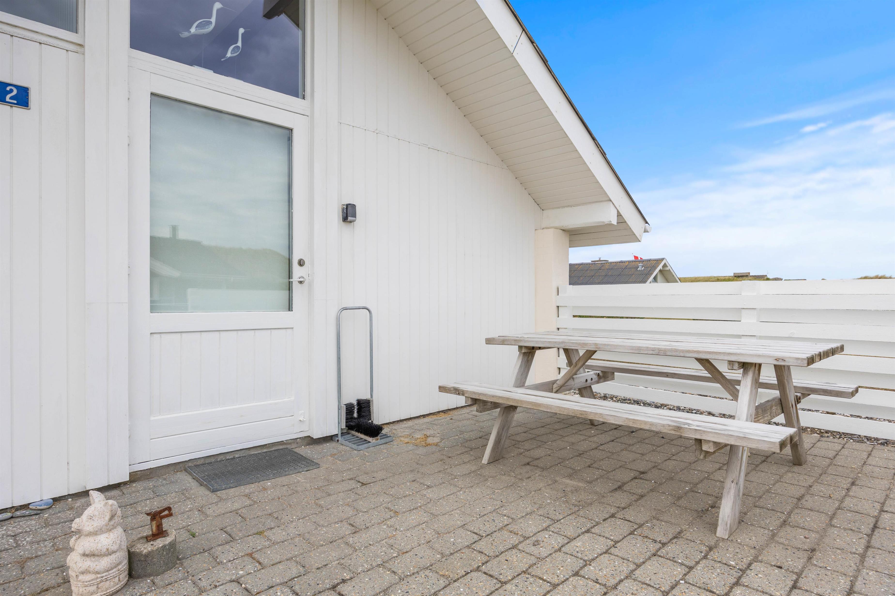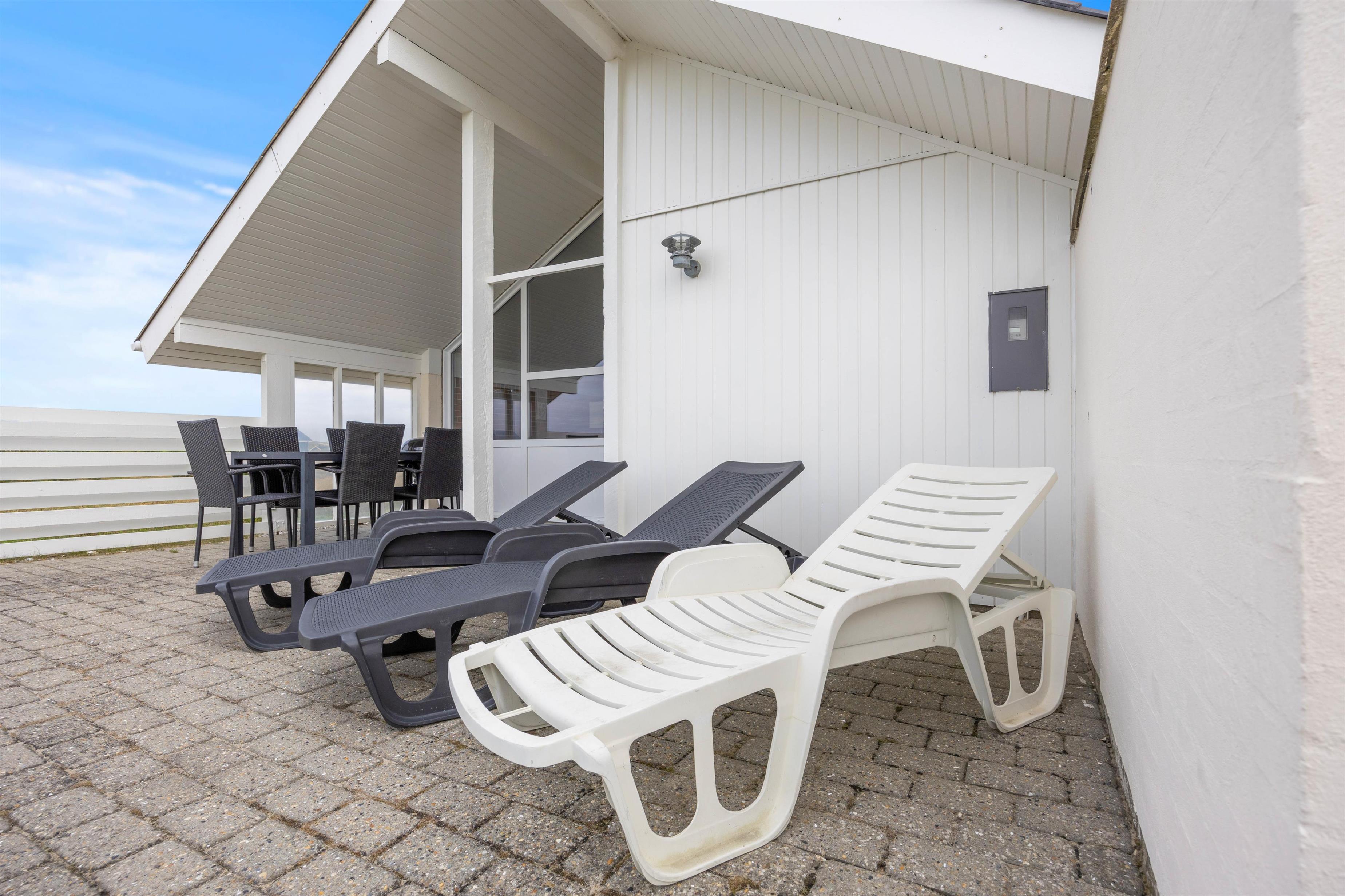 Der er flere terrasser omkring sommerhuset, så du kan altid finde en rolig plet i forhold til sol og vind. I de komfortable havemøbler kan I slappe af og nyde den friske havluft, imens børnene gynger eller leger i sandkassen.