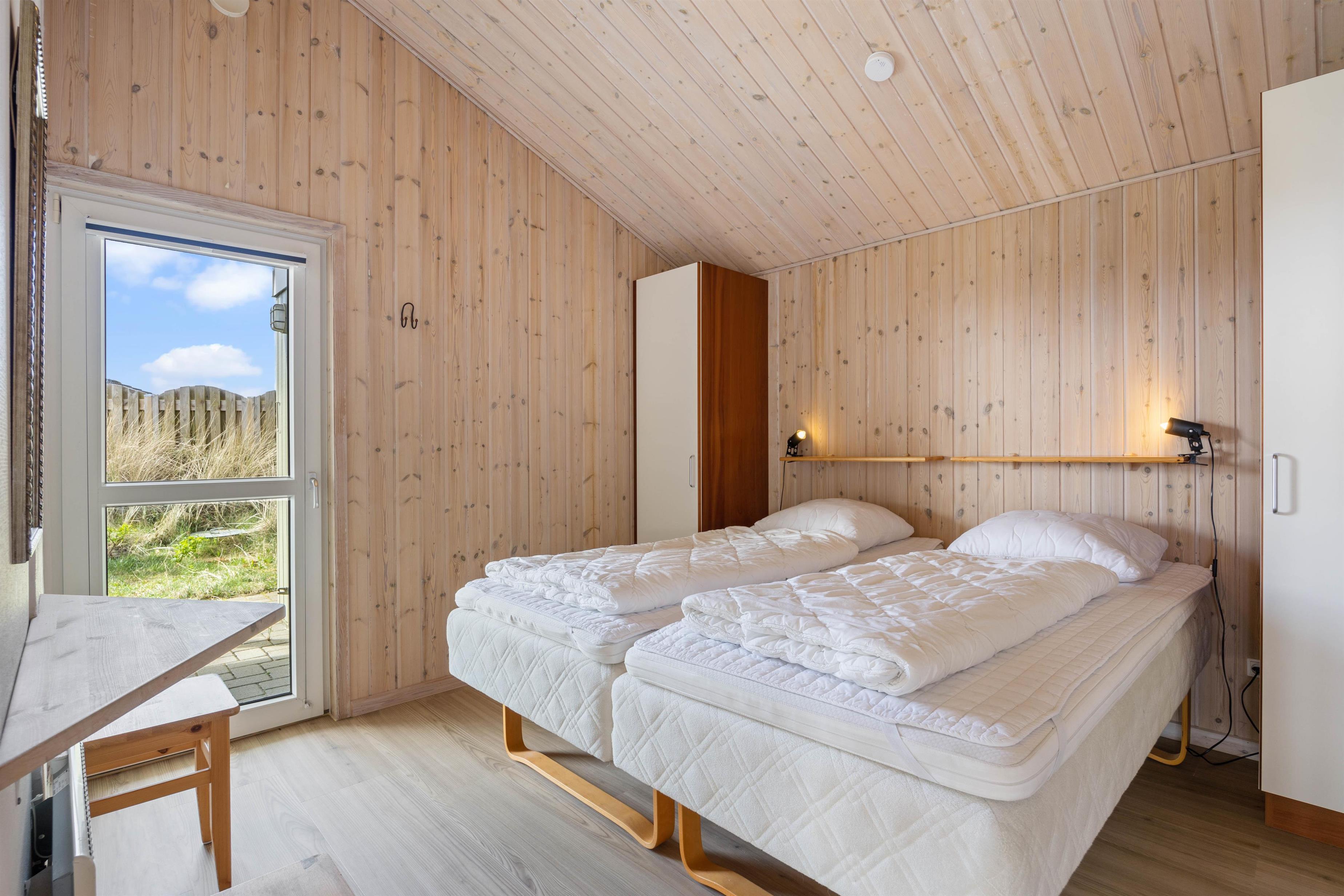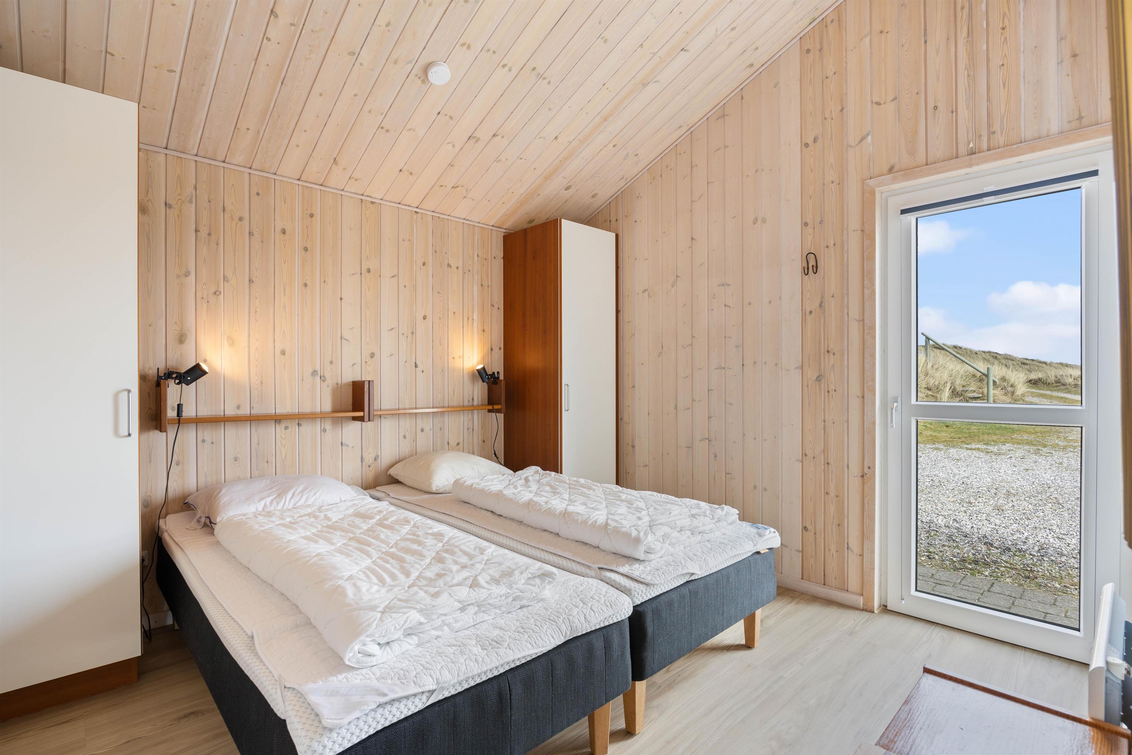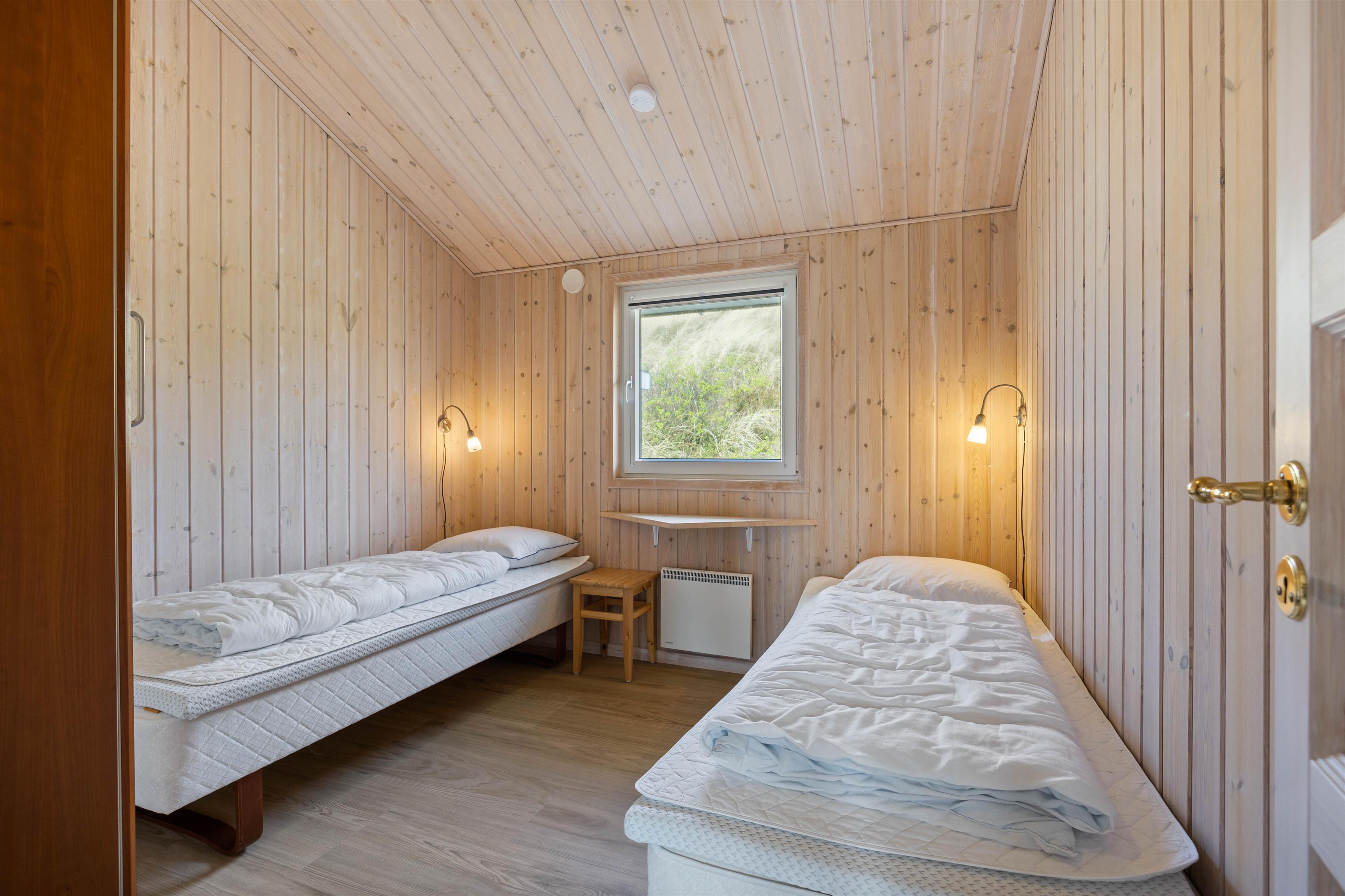 Feriehuset har 2 soveværelser med dobbeltsenge og 1 soveværelse med 2 enkeltsenge. Der er gulvvarme i både badeværelse og gæstetoilet, og desuden vaskemaskine og tørretumbler. Der opvarmes blandt andet med en energibesparende varmepumpe.