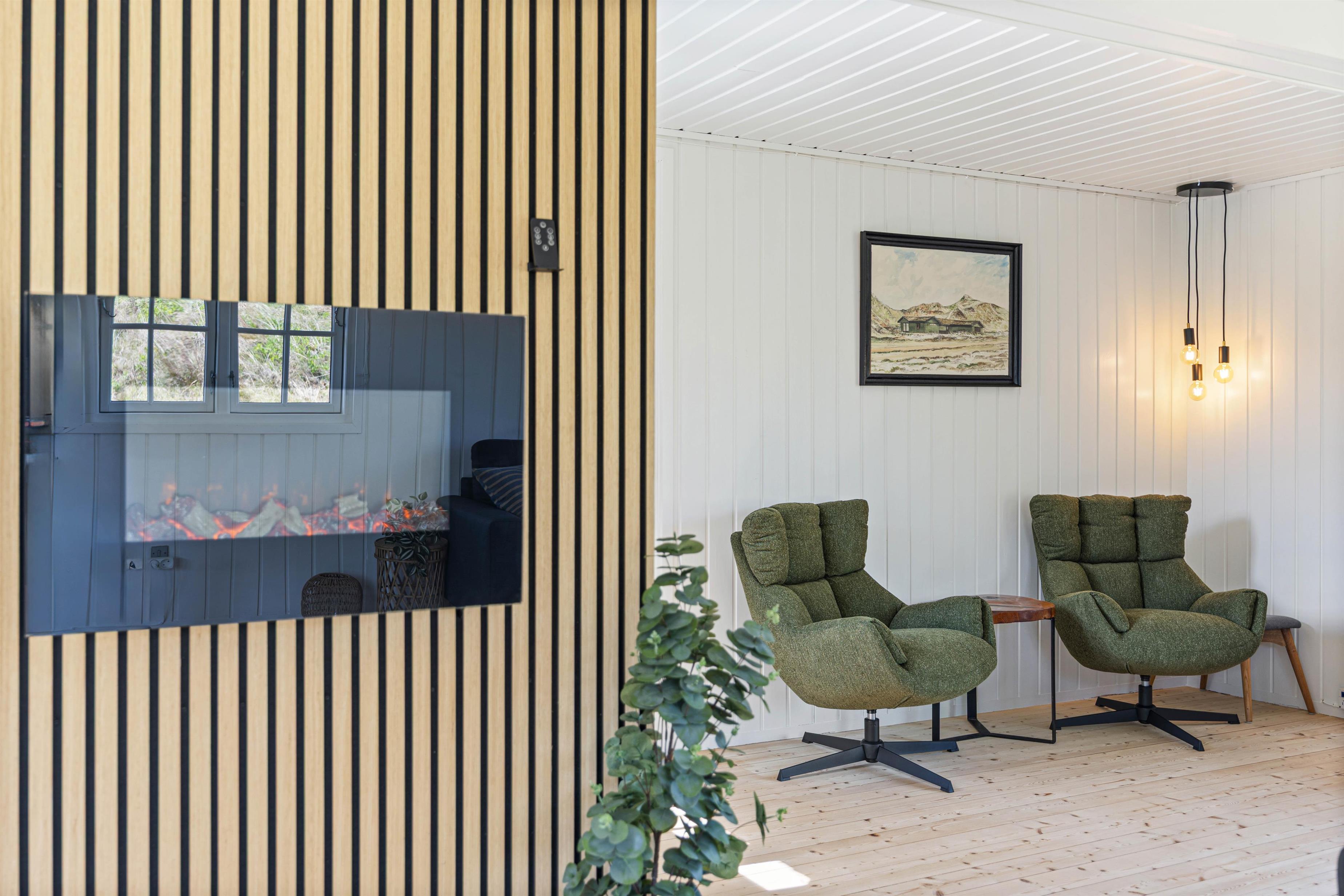 Indvendigt møder I en gennemtænkt indretning med alt, hvad I behøver for et komfortabelt ophold: Her er et fint køkken med opvaskemaskine, en dejlig stue til hyggelige feriestunder med familien, en elpejs, der skaber ekstra stemning på kølige dage, samt en energivenlig varmepumpe, som sikrer behagelige temperaturer året rundt.