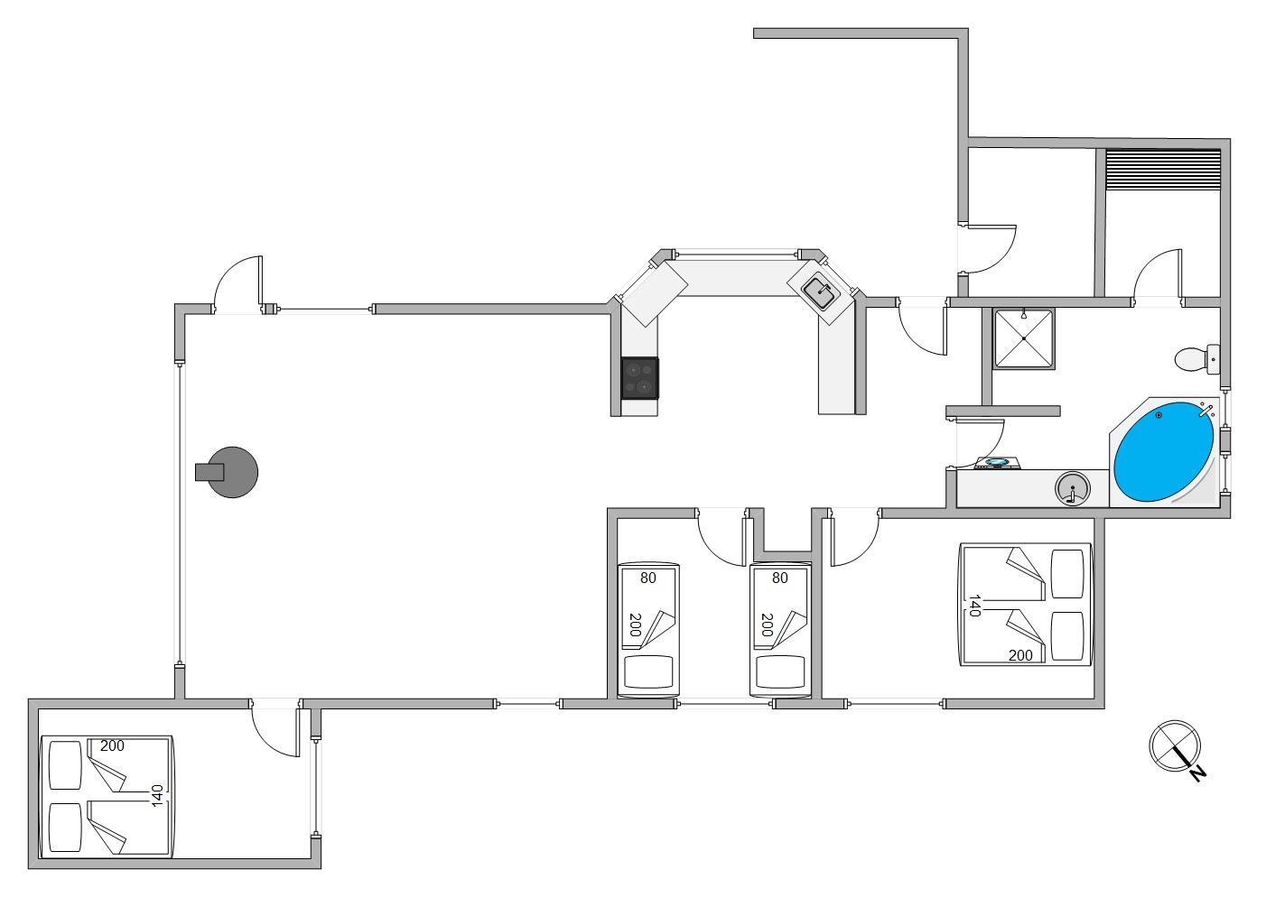 Det hyggelige sommerhus på Sønder Klitvej 170 b er lyst og indbydende indrettet. Her er åbent til kip og store vinduespartier, der giver en skøn og rummelig bolig. Det praktisk indrettede køkken indeholder alt, hvad I behøver for at forkæle hinanden med lækre hjemmelavede måltider. Nyd freden og roen med en god bog på i sofaen, mens ilden buldrer i brændeovnen. Slap af i boblebadet eller bliv varmet godt igennem i saunaen. De 3 soveværelser er indrettet med 2 dobbeltsenge og 1 x 2 enkeltsenge, så I kan indrette jer, som det passer bedst. Læg mærke til, at den friske vesterhavsluft gør noget særligt for nattesøvnen.