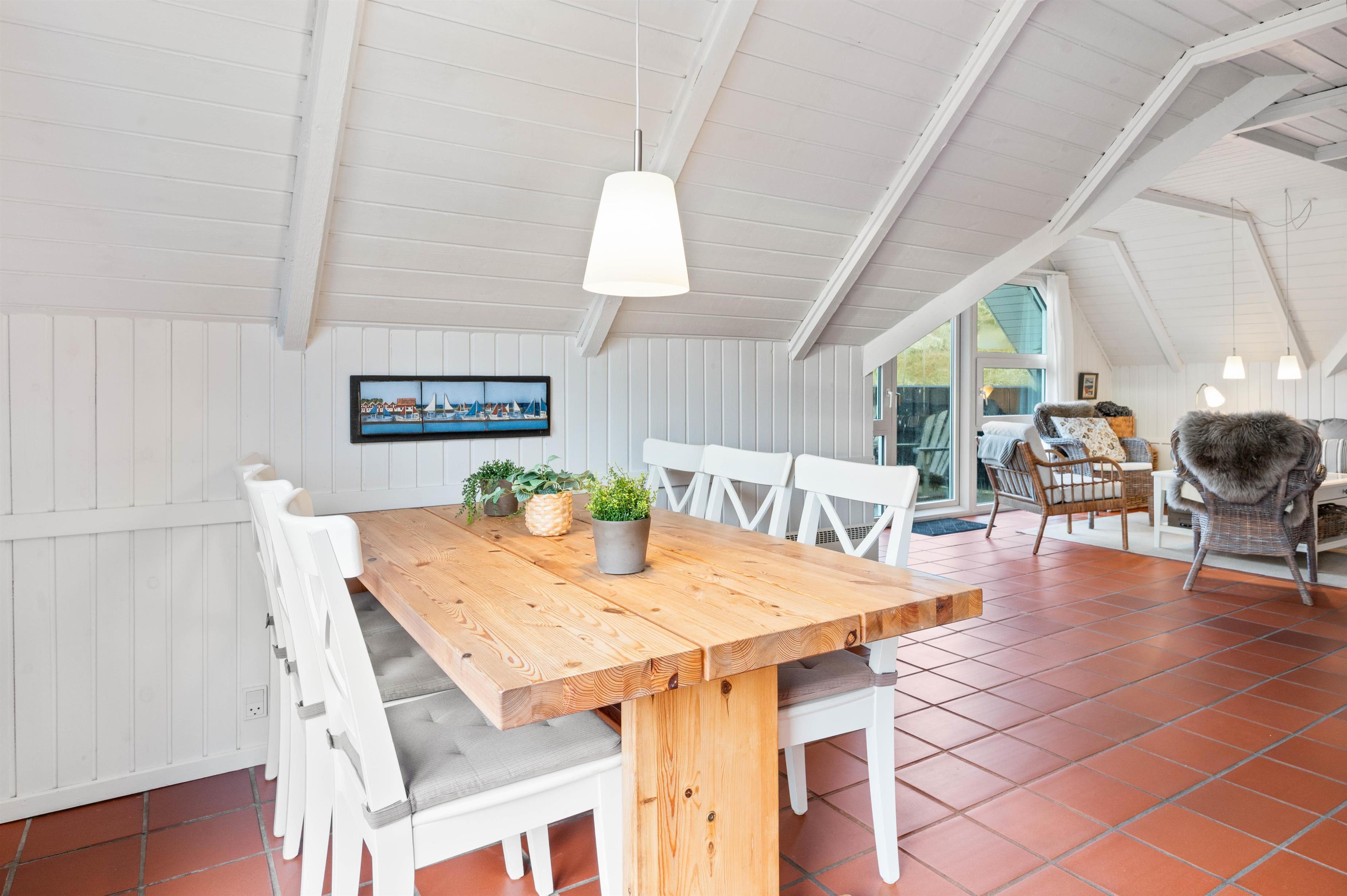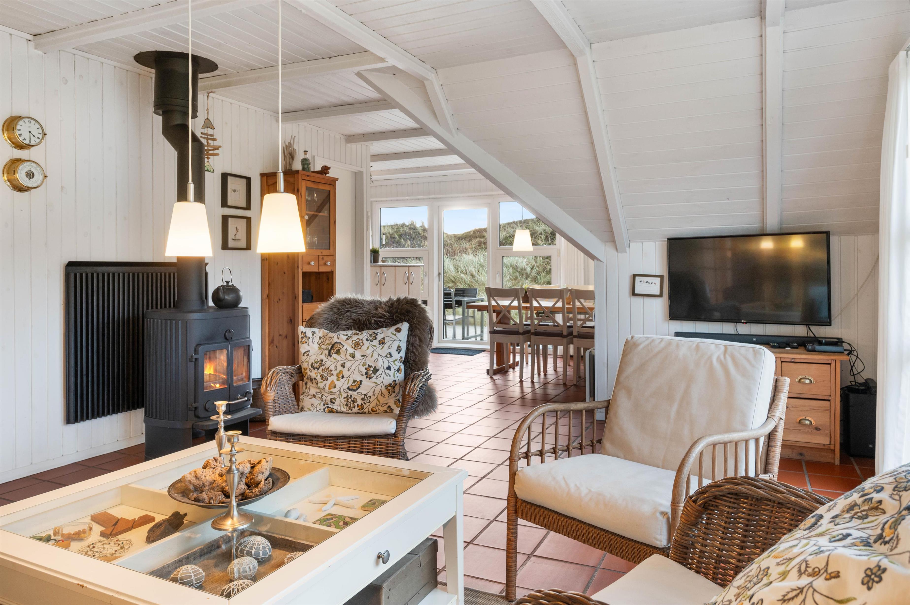 Hjerterummet er fællesrummet, der forbinder stue og køkken. Her kan tilbringes mange gode stunder med brætspil, ferieplanlægning og kræs lidt ekstra om madlavningen i det åbne køkken, hvor resten af familien også kan følge med fra spiseafdelingen. Slut aftenen af med et kapitel i ferielæsningen på sofaen, der både inviterer til afslapning og gode samtaler. På de køligere aftner og dage vil I klart nyde pejsens varme.