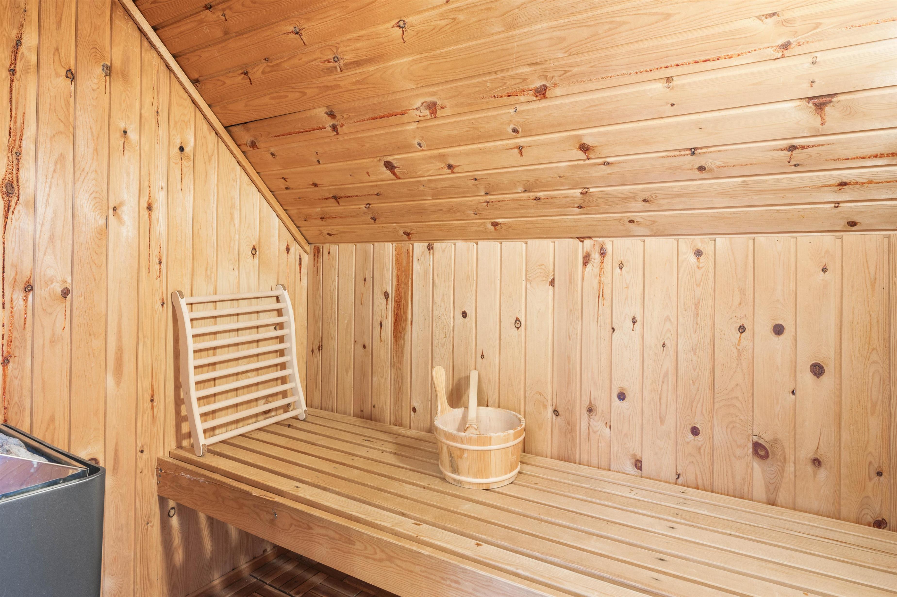 Trænger I til at blive varmet ordentlig igennem, finder I overfor badeværelset sommerhusets sauna – dette er oplagt og tiltrængt efter en dejlig gåtur.