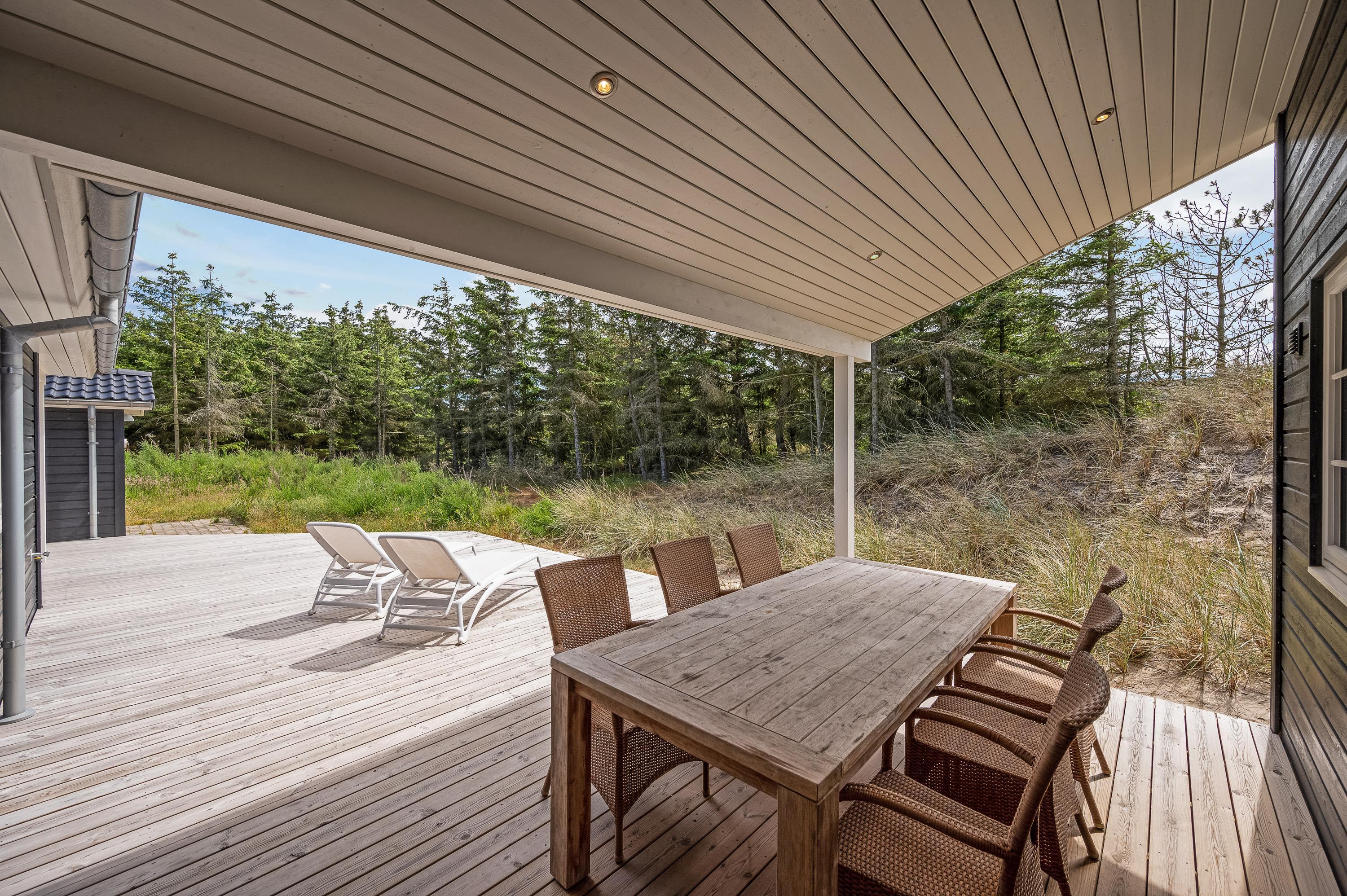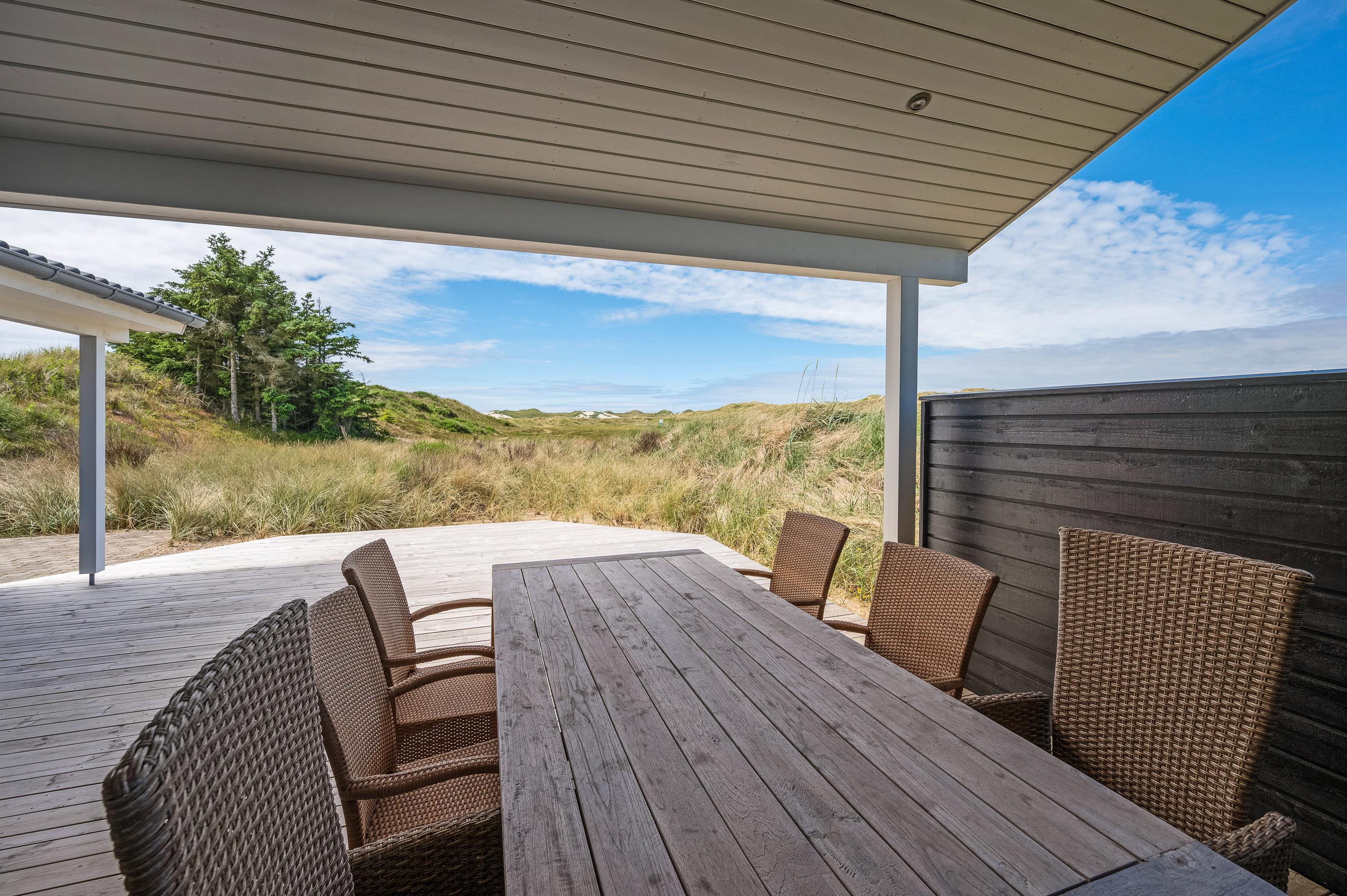 Der er rig mulighed for at nyde solens stråler og den betagende natur på terrasserne, hvor nærmeste nabo mod vest er klitterne. Flere steder rundt om huset er der sørget for terrasser og hyggelige siddepladser, så man altid kan finde et godt sted med læ og sol.