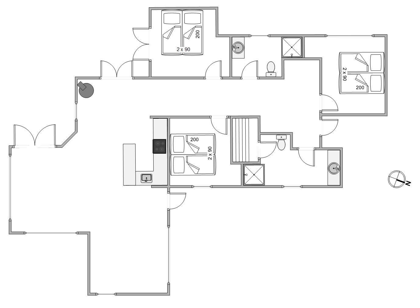Der er 3 lyse soverum i huset med hver en dobbeltseng. Huset råder desuden over 2 badeværelser, hvoraf det ene er udstyret med en sauna, hvor man virkelig kan blive gennemvarm efter en lang efterårsdag i naturen. De 2 badeværelser gør også huset særdeles velegnet til eksempelvis 2 mindre familier.