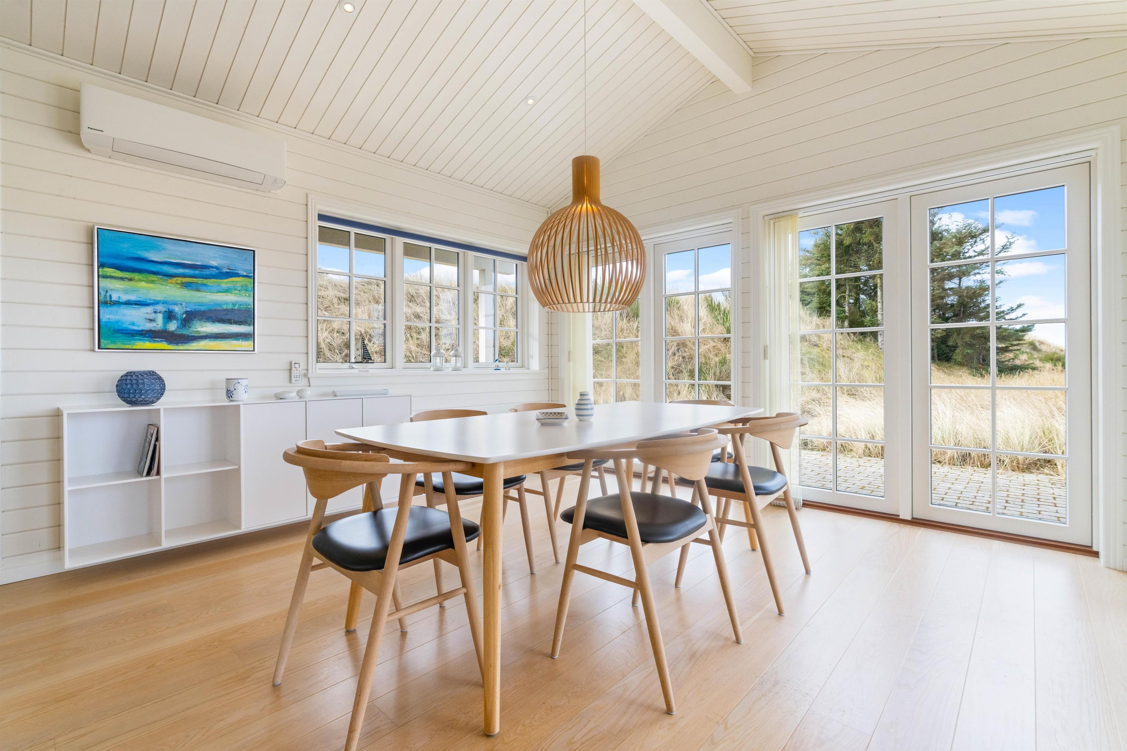 Huset her på Skodbovej 93 i Skodbjerge er gennemgåënde charmerende og lyst indrettet i hyggelig skandinavisk stil, med bl.a. trægulve. Der er desuden en energibesparende varmepumpe og vaskemaskine i huset. Det gør at man kan pakke let - og ikke behøver at være bekymret over, at børnene bliver beskidte under legen i klitterne.