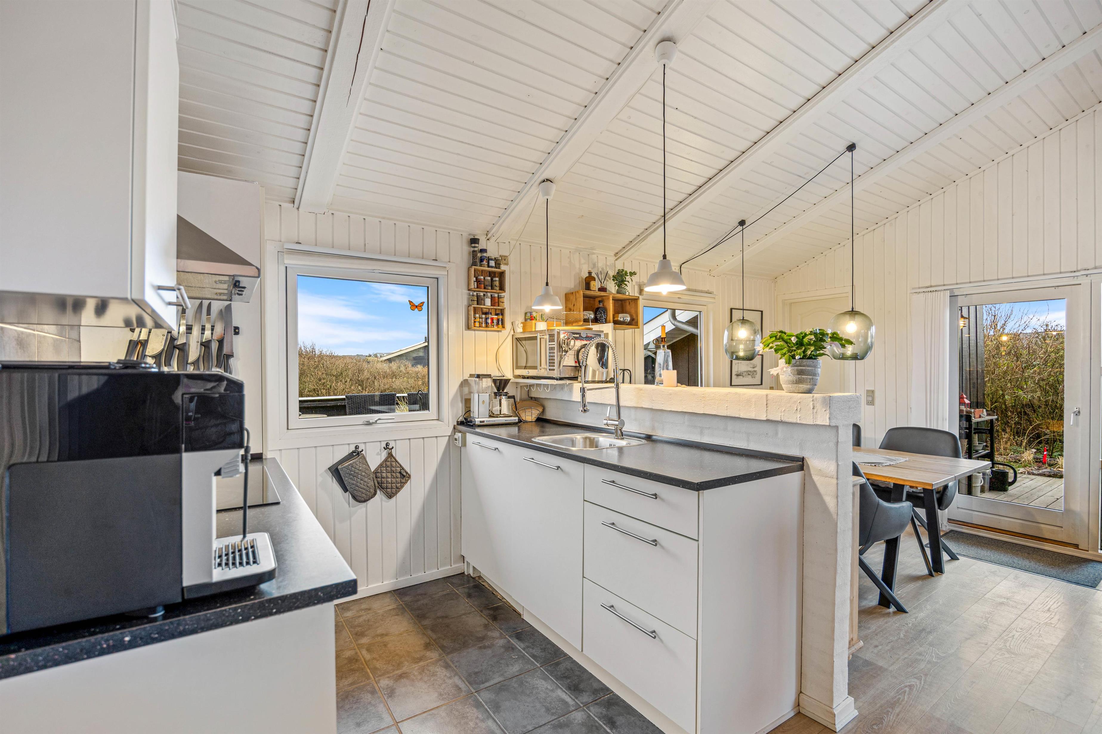 Hjerteligt velkommen på Skodbovej 107 i Skodbjerges fortryllende og bakkede klitlandskab, bare 800m fra stranden og Vesterhavet. Her venter der op til 6 personer og 2 hunde en afslappet og velfortjent ferie ved havet – fyldt med hygge, hvad enten det er foran en knitrende brændeovn, på den store sydøstvendte solterrasse eller på den overdækkede og afskærmede solnedgangsterrasse mod vest.