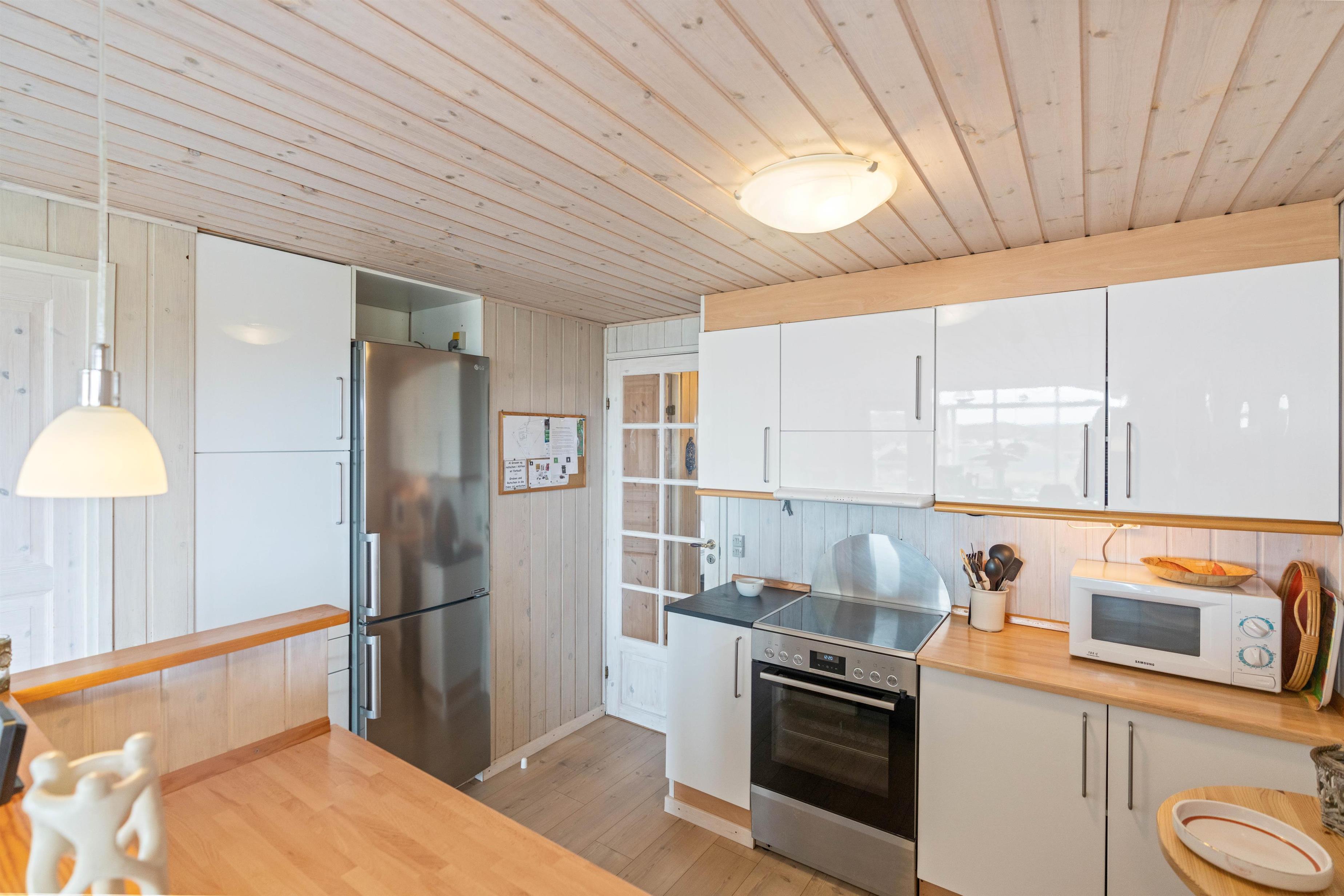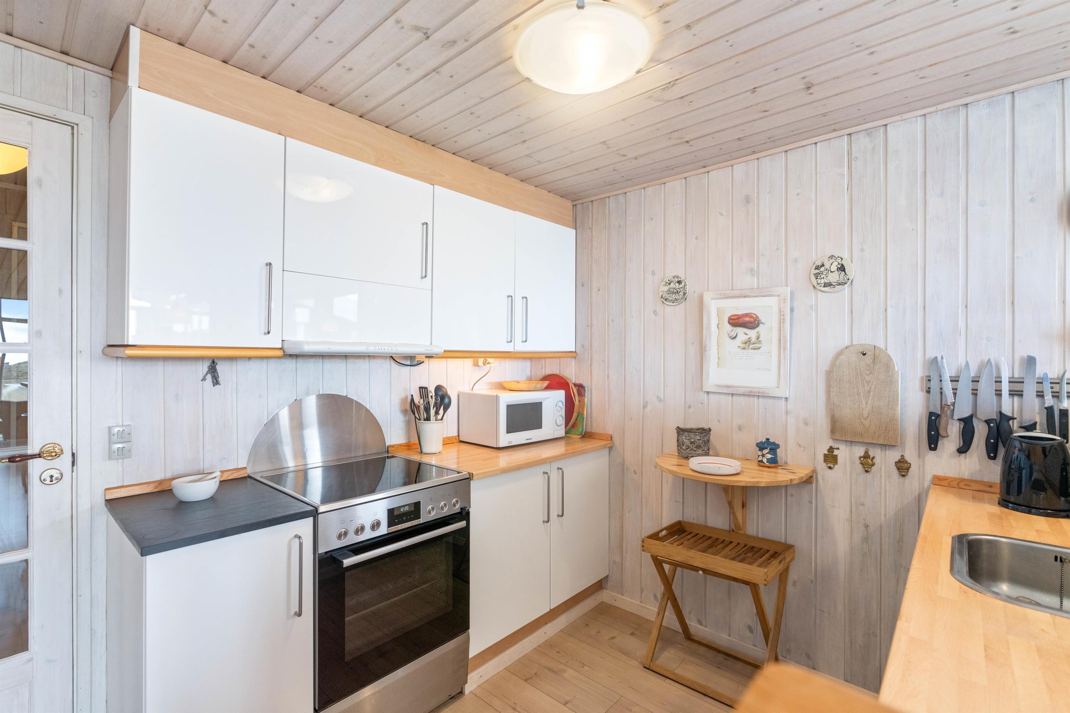Feriehuset er hyggeligt og personligt indrettet med omtanke for, hvad en (børne)familie har brug for under ferien. Der er både vaskemaskine, tørretumbler og opvaskemaskine, der overtager de praktiske gøremål, så du i stedet kan slappe af og nyde ferien. Og på grunden er der gynger og en sandkasse, hvor de mindste kan hygge sig.