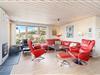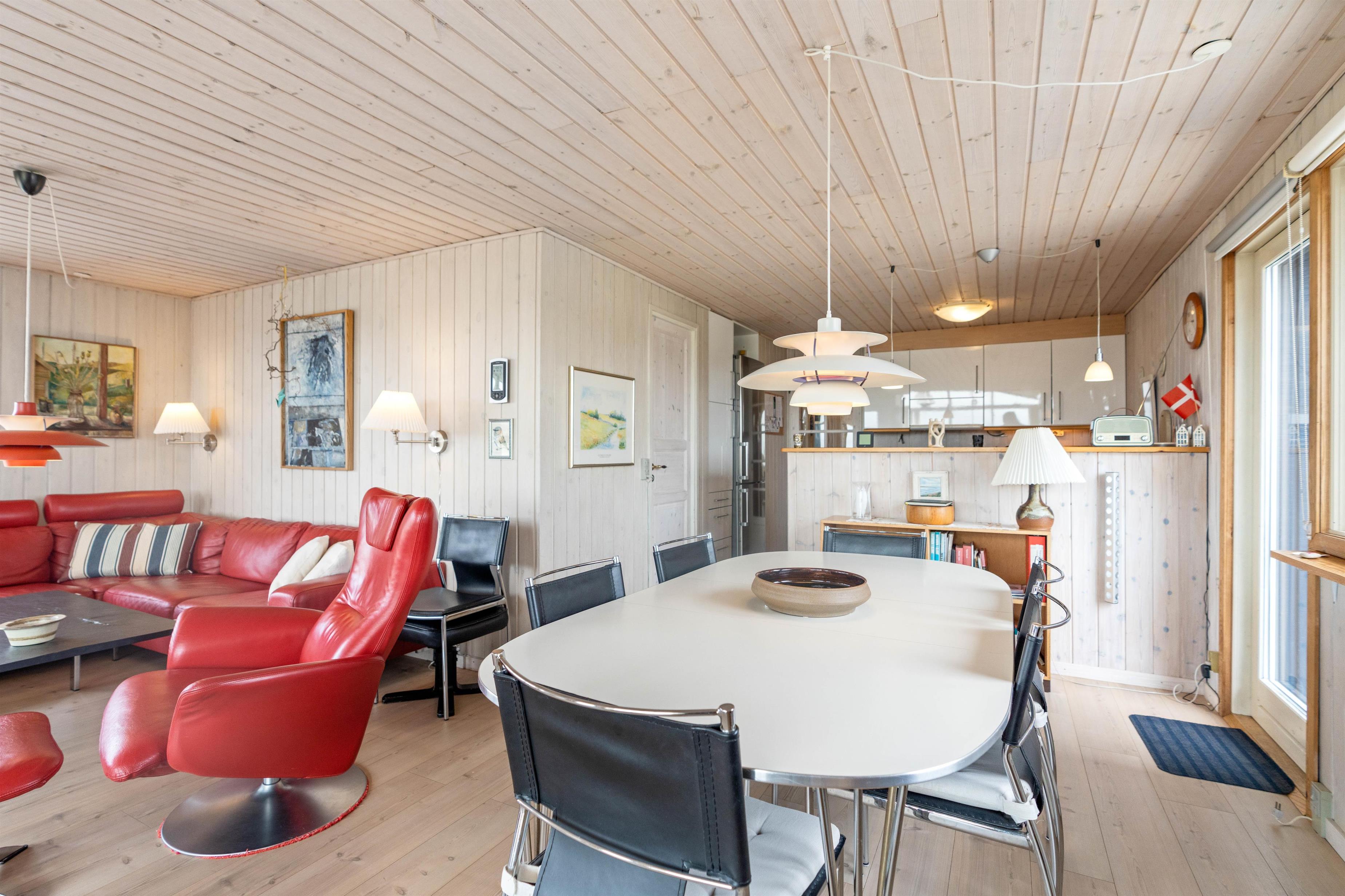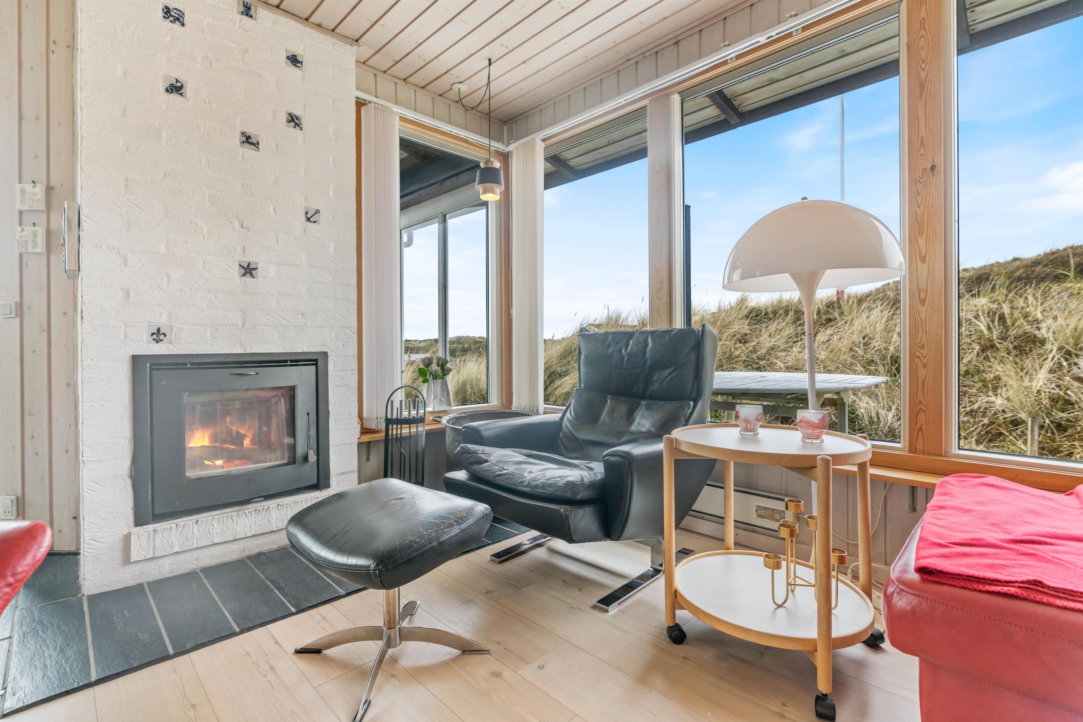 Husets stue er også indrettet med store vinduespartier og en god hyggekrog, så du også på køligere dage kan sidde inde og nyde udsigten, evt. med en god bog og lidt varmt at drikke.