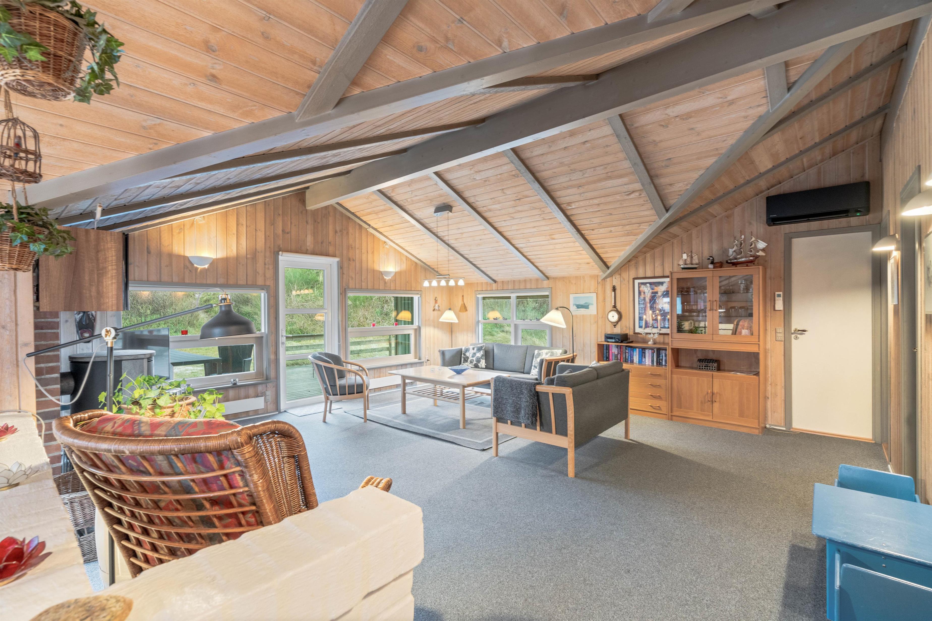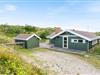 Dette højtbeliggende feriehus ligger på en flot, kuperet klitgrund tæt på Vesterhavet. Fra sommerhusets store terrasse kan du sidde ugeneret og nyde den flotte udsigt til landskabet. Sommerhuset er både velindrettet og veludstyret samt byder på masser af komfort. Og familiens hund er naturligvis velkommen.