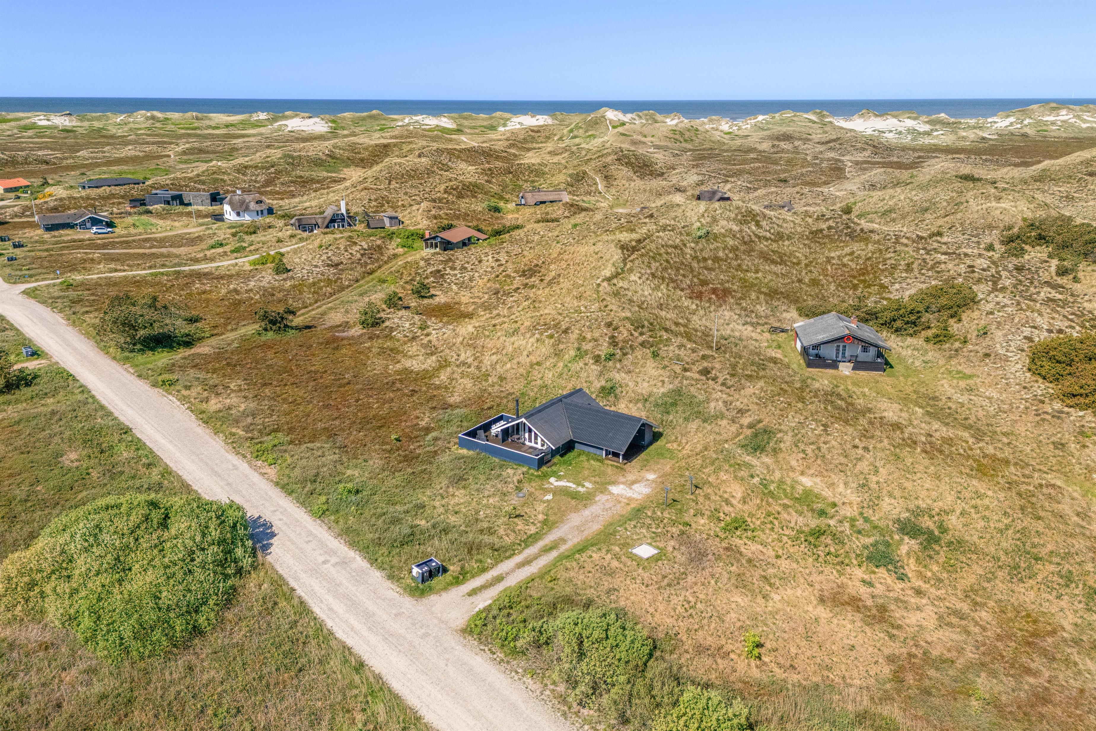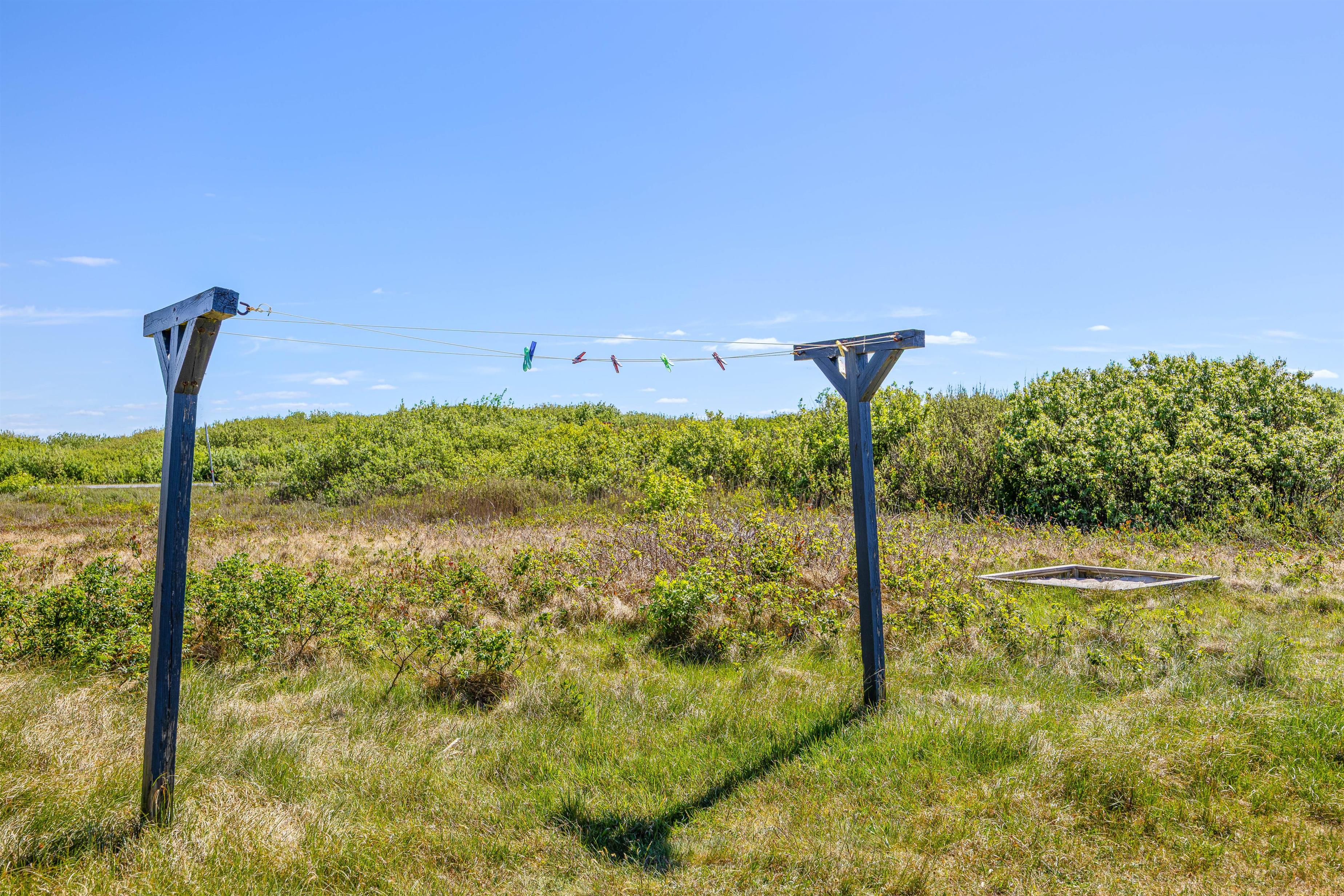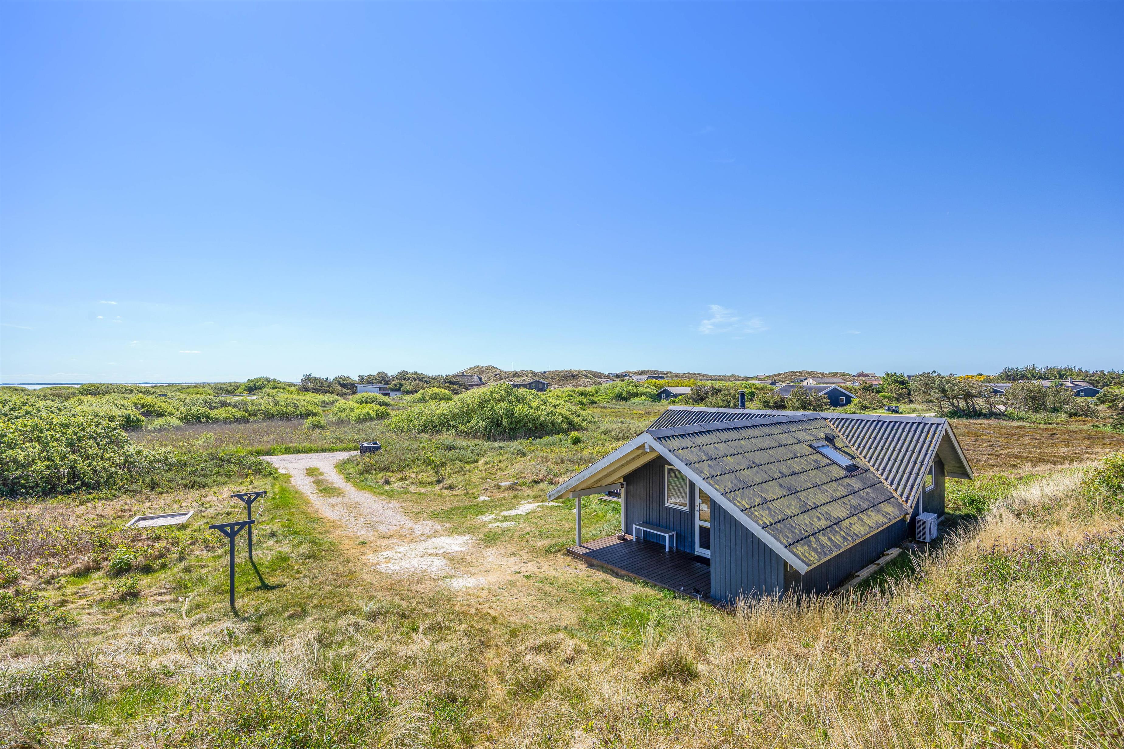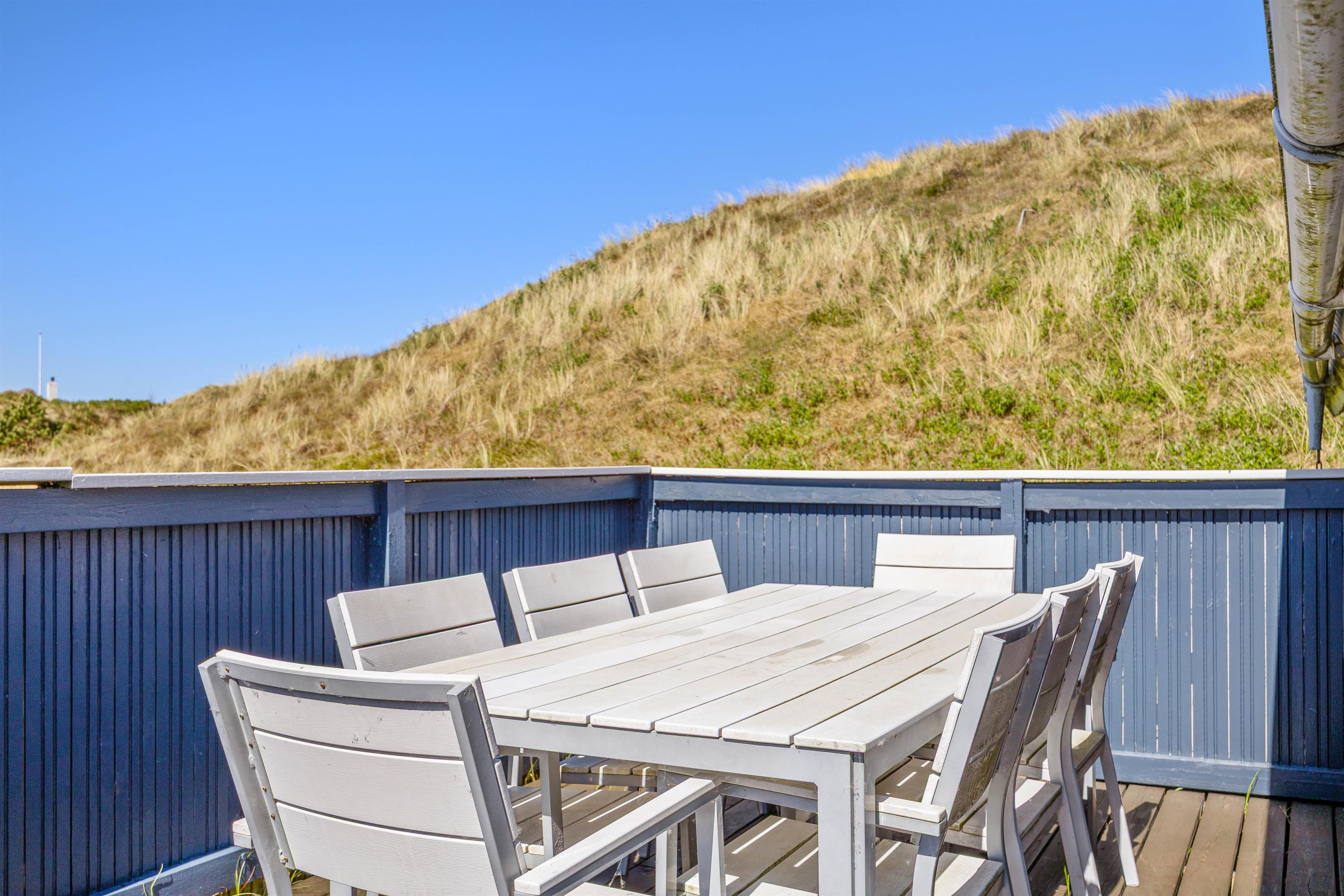 Fra den høje klit bag feriehuset har man en fantastisk udsigt udover klitterne, hvor I kan sidde på bænken følge solens gang. Både fra udkigsposten og den lille overdækkede terrasse mod øst kan I nyde en god kop kaffe og se solopgangen over Ringkøbing Fjord – hvilken fantastisk måde at starte dagen på!