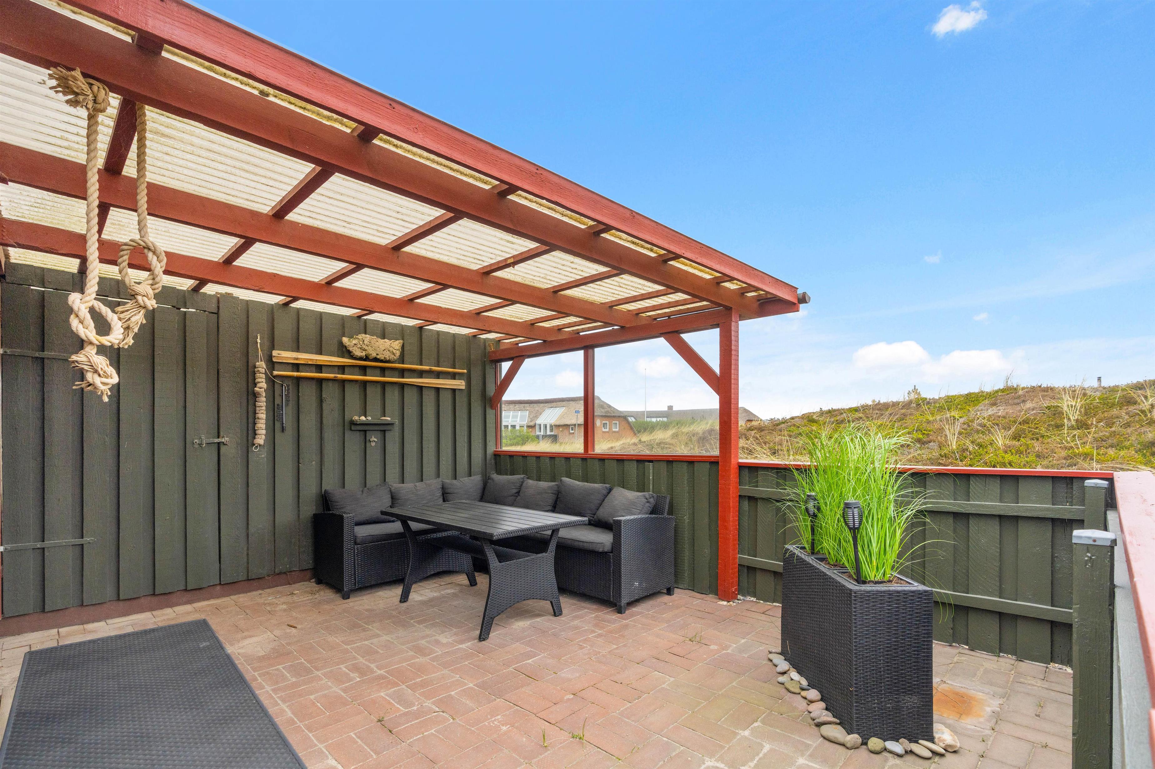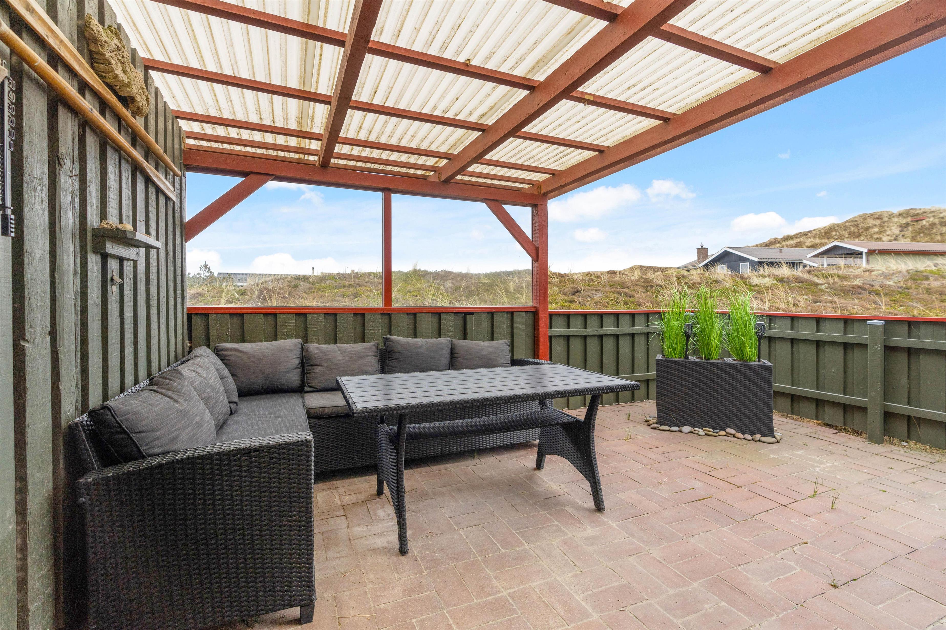 På udendørsarealet ved sommerhuset finder I en lukket, delvist overdækket og afskærmet terrasse på den store naturgrund i Skodbjerge. På liggestolene kan I uforstyrret nyde solens stråler med en kølig drink og en spændende krimi.