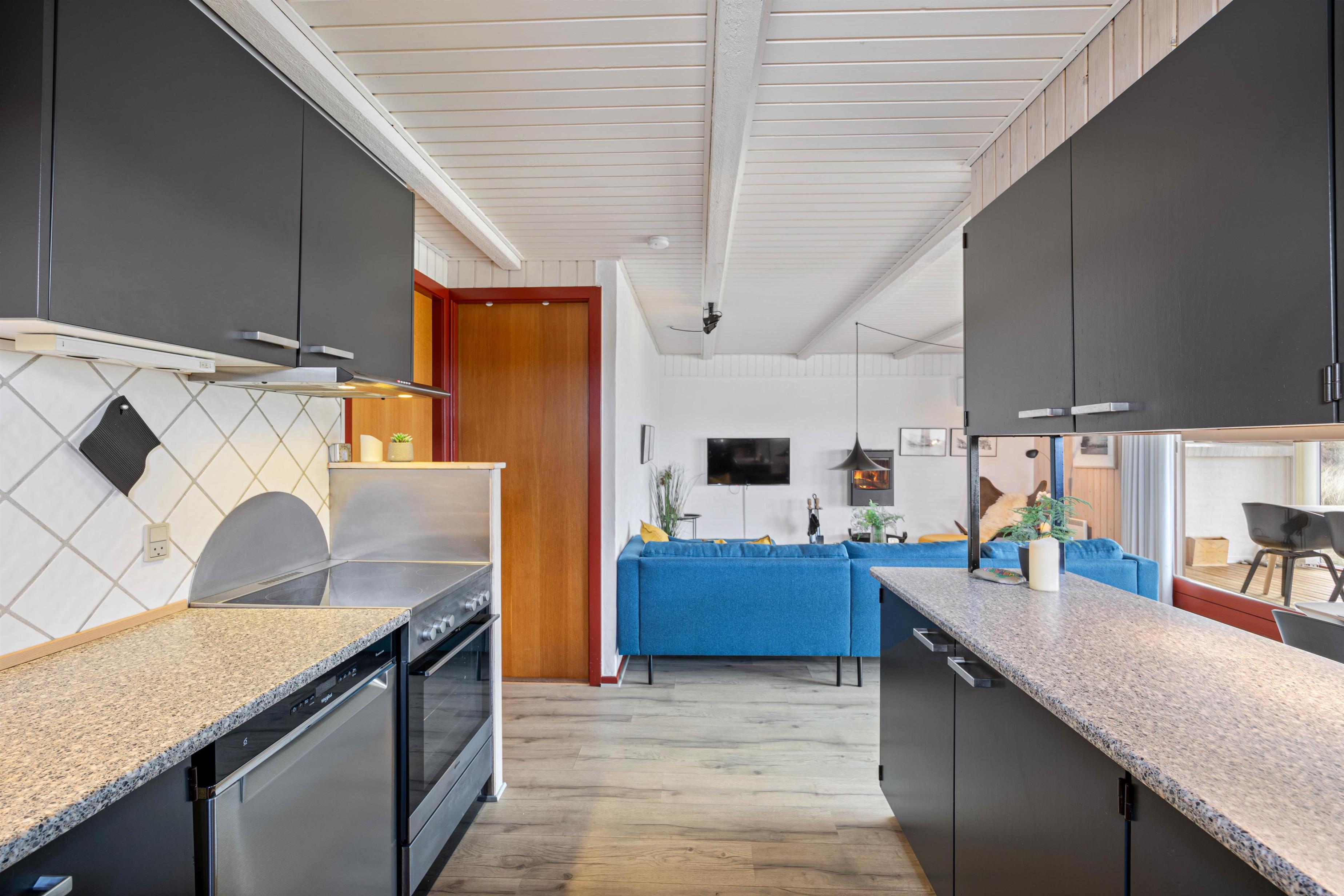 Et lækkert aftensmåltid kan tilberedes i sommerhusets køkken, mens opvaskemaskinen klarer opvasken for jer efterfølgende. Der findes også en microovn i køkken.
