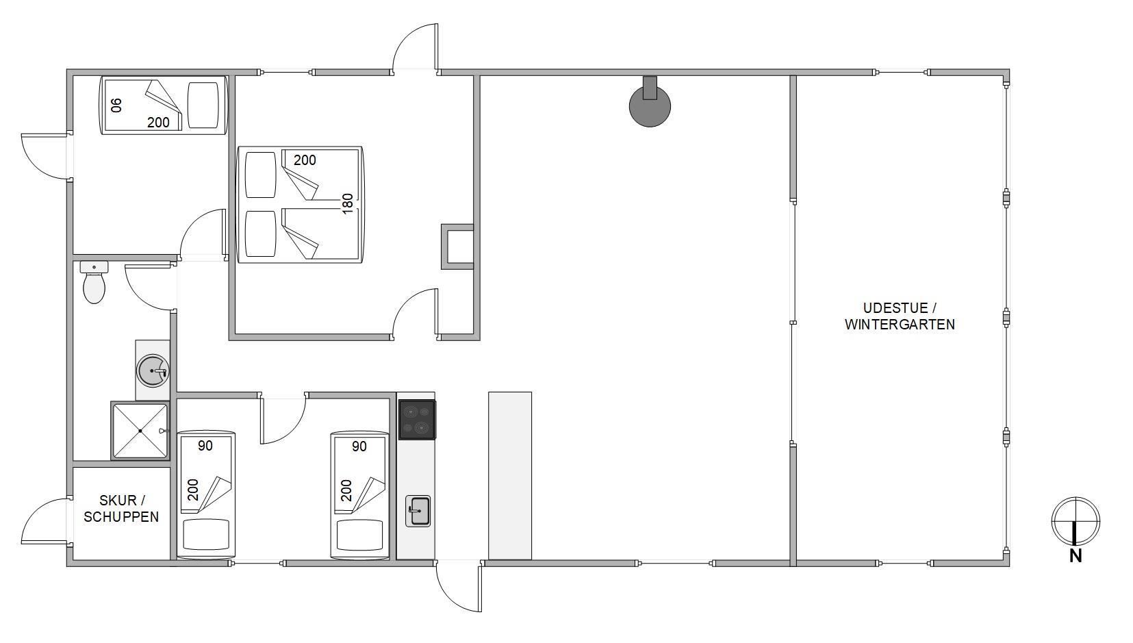 Til en god nats søvn står 3 soveværelser til rådighed i sommerhuset. De 3 soveværelser er indrettet med 1 dobbeltseng og 3 enkeltsenge.