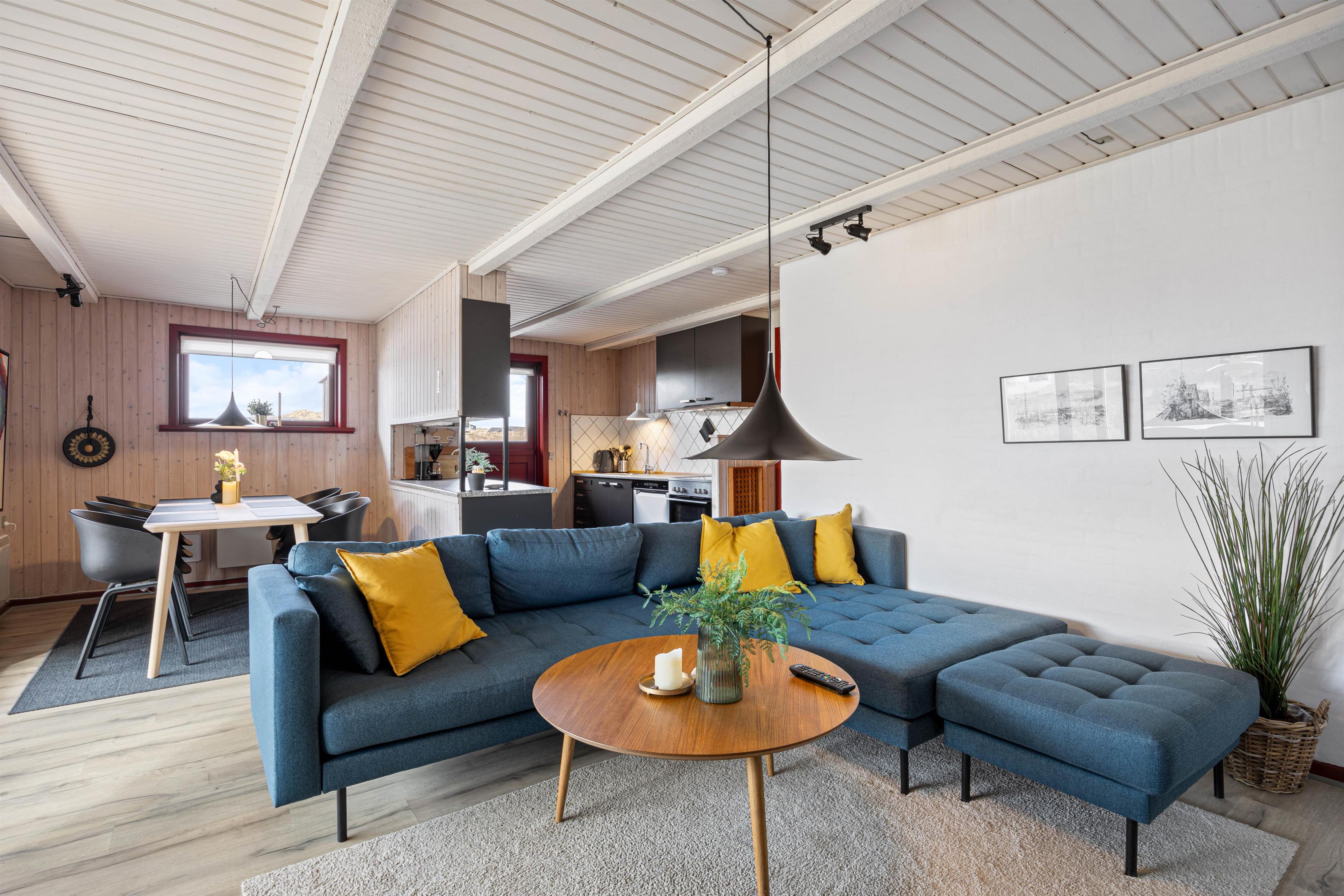 I sommerhusets opholdsstue kan I sætte jer godt tilpas i sofaen og nyde varmen fra den knitrende brændeovn. Derudover finder I også en varmepumpe, som til enhver tid kan tændes som en energibesparende opvarmningsmetode.