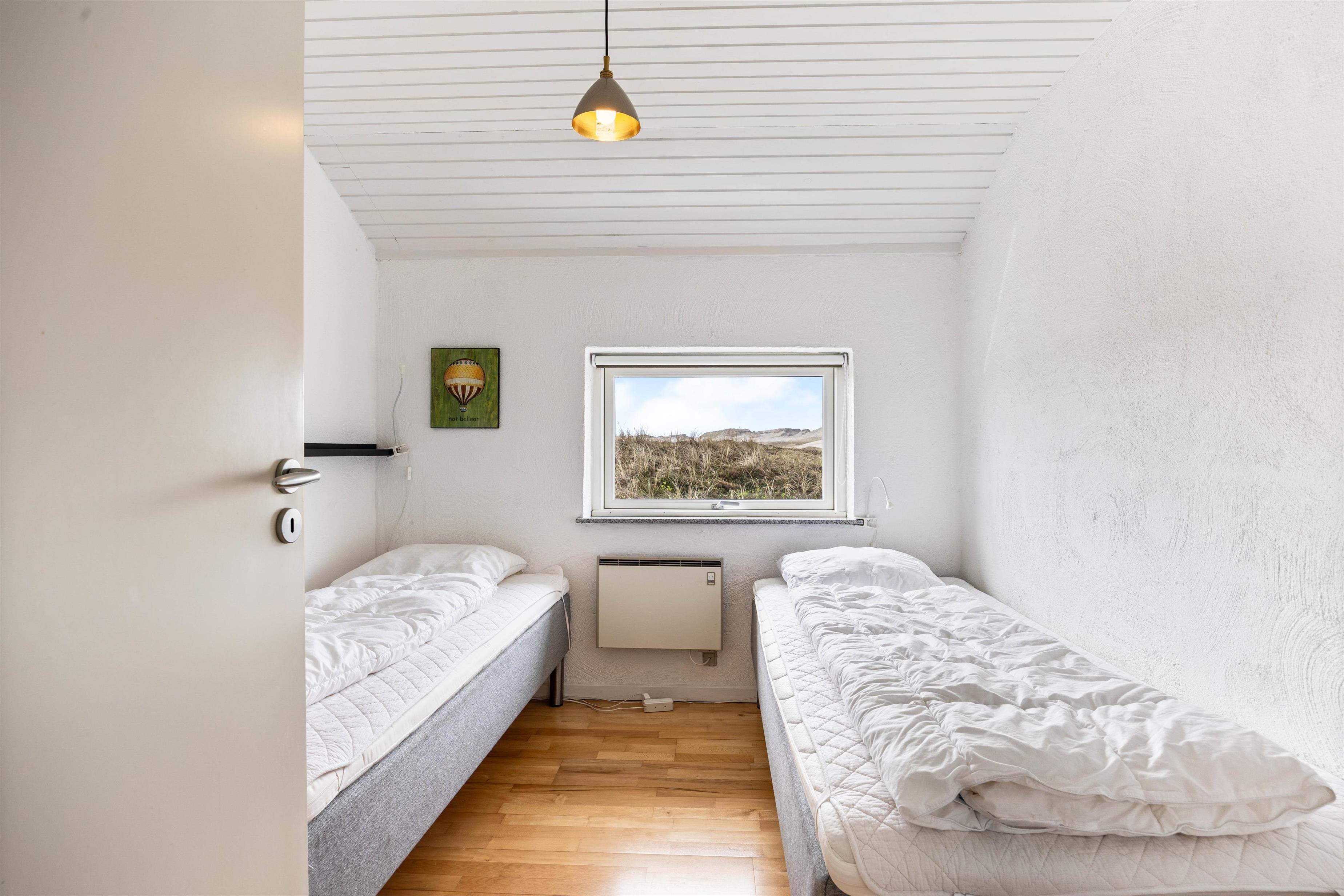 De 7 sovepladser er fordelt på 4 lyse soverum, med både dobbeltsenge og enkelt senge.
