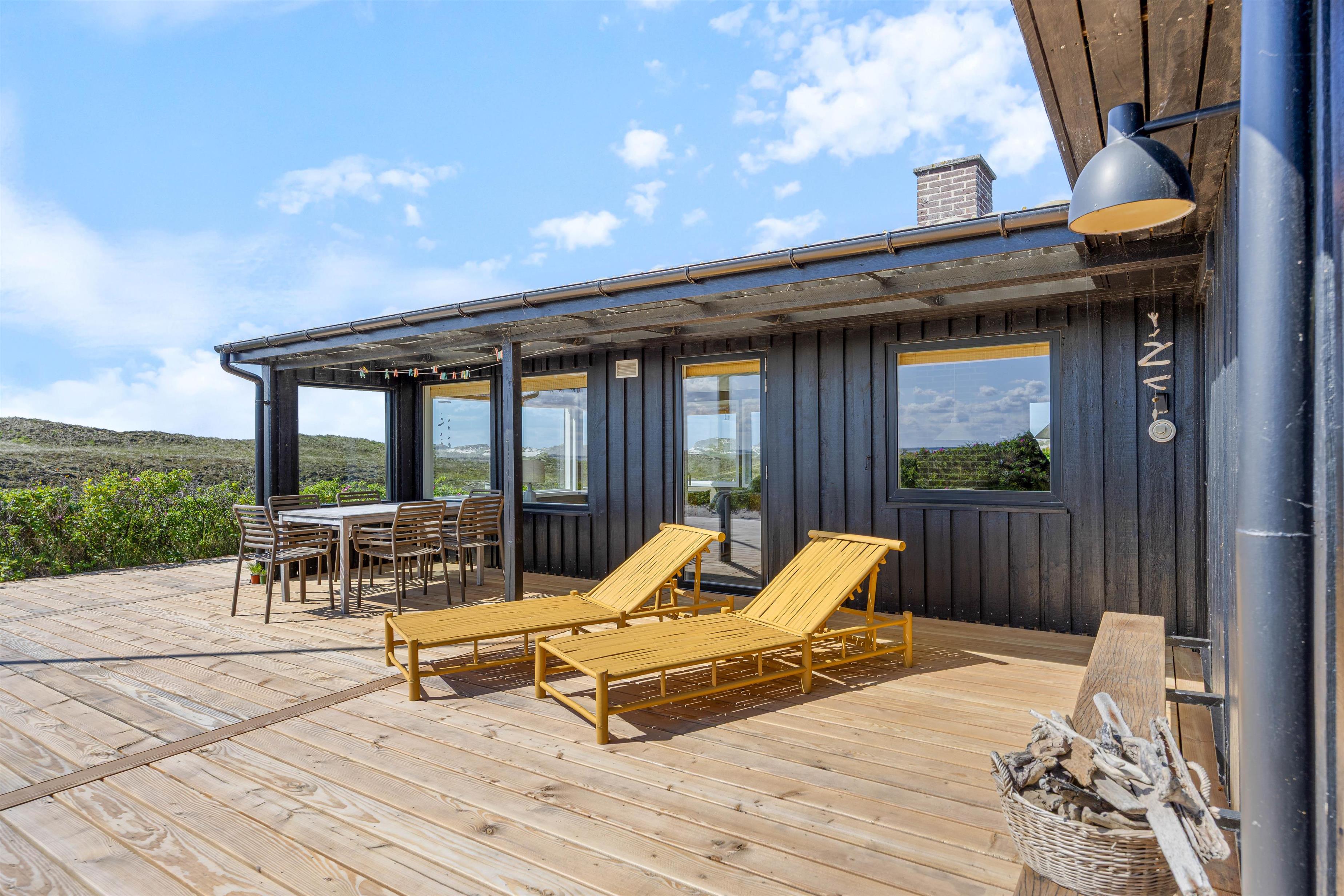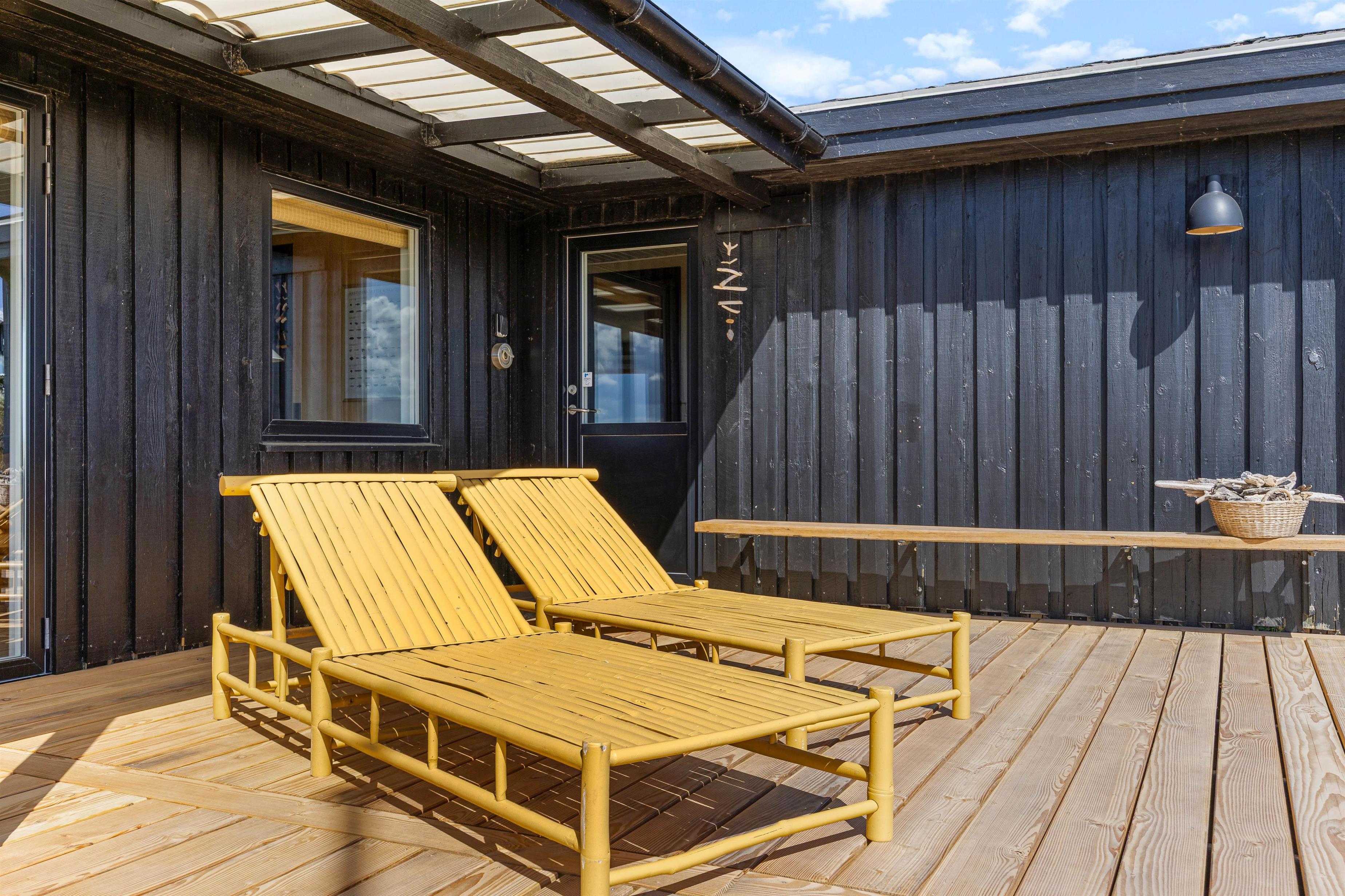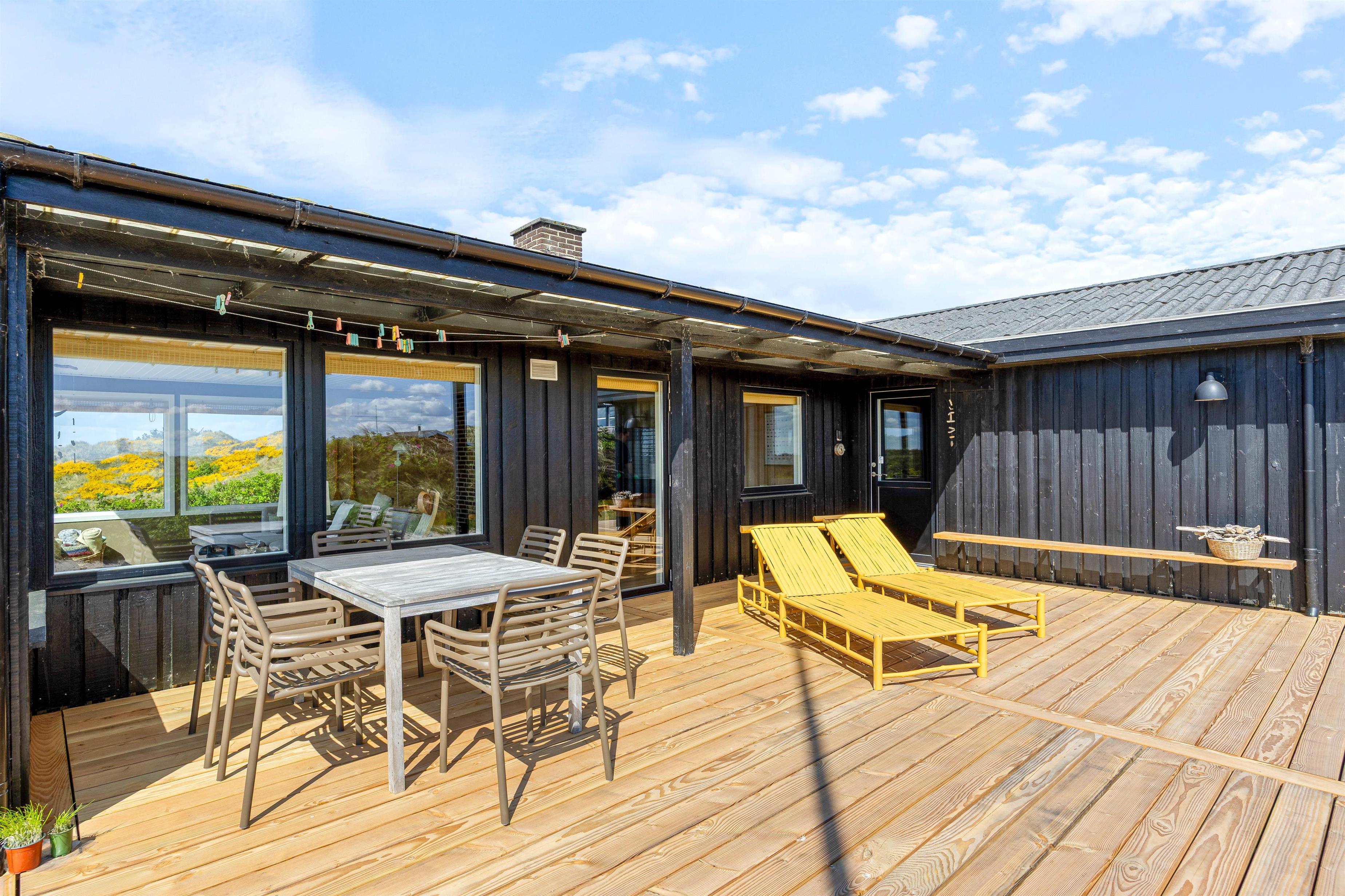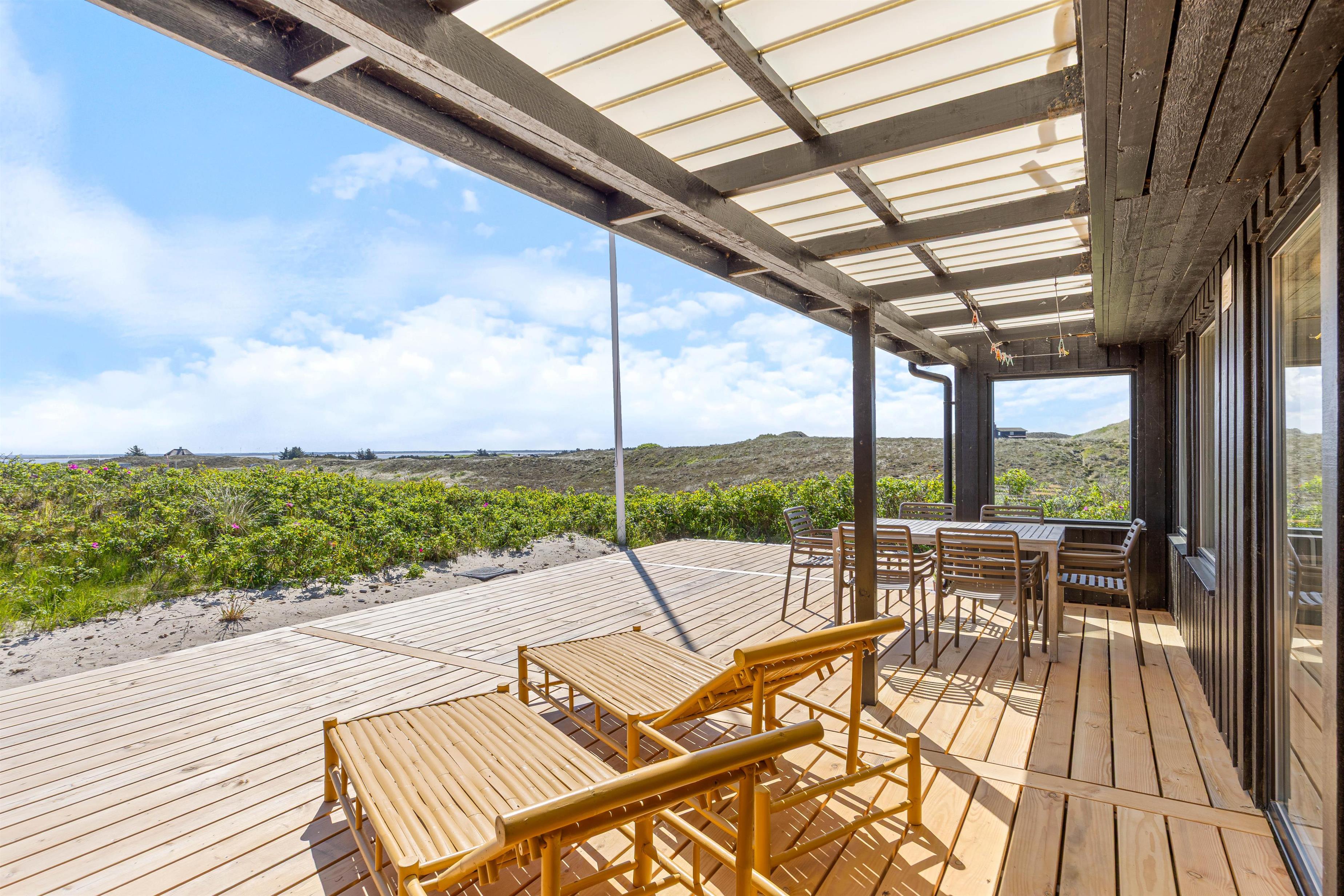 På den vestvendte terrasse kan I slappe af og nyde den friske havluft i de komfortable havemøbler. Der er både en overdækket og en afskærmet del af terrassen, så her er godt at være – også til at nyde måltider udendørs. Tænd for eksempel op i grillen og slut dagen af med en lækker grillaften sammen, imens solen går ned bag klitterne.