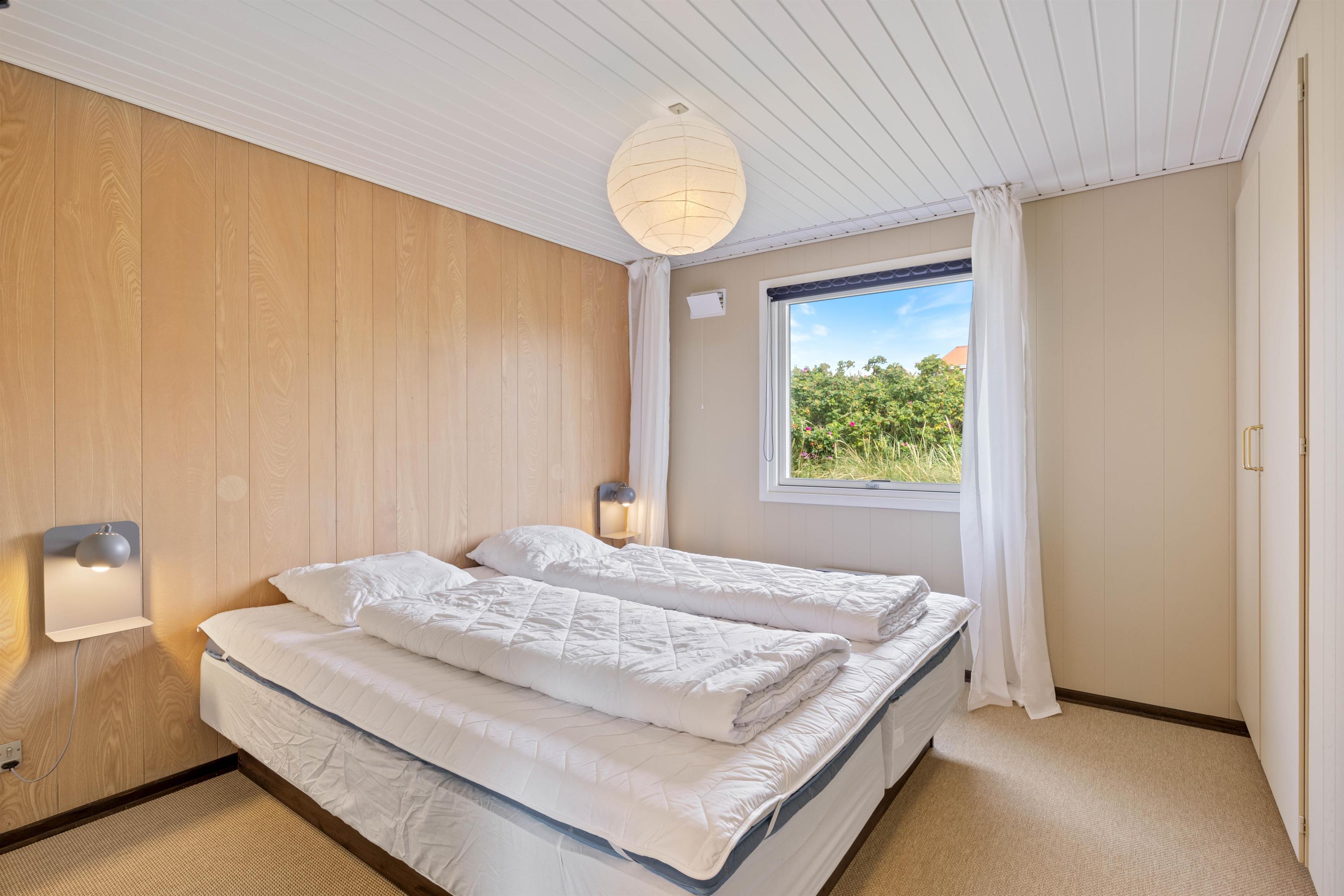 Dette sommerhus, der er renoveret i 2023, ligger på en idyllisk klitgrund på Holmsland Klit. Den let forhøjede beliggenhed giver dig en vidunderlig udsigt over det omkringliggende landskab, og der er cirka lige langt (500 meter) til både Vesterhavet og Ringkøbing Fjord. Op til 5 personer kan have en afslappende ferie her, omgivet af Vestkystens natur.