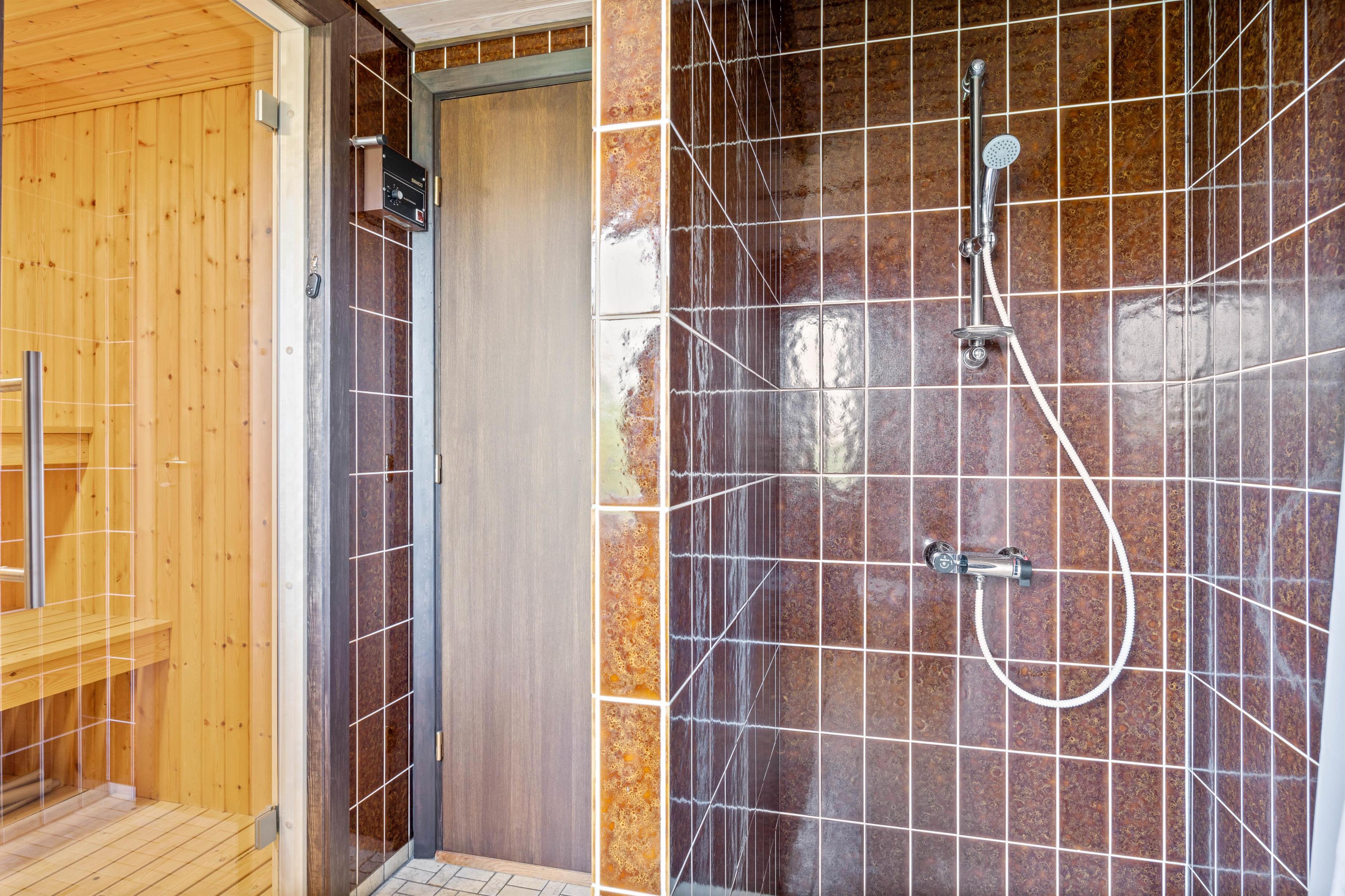 Fra badeværelset med gulvvarme er der indgang til sauna, hvor I kan blive rigtig godt muskelafslappede efter en oplevelsesrig feriedag. De 2 soveværelser har dobbeltsenge, og i det tredje er der et par køjesenge, så der er god plads til de unge også.
