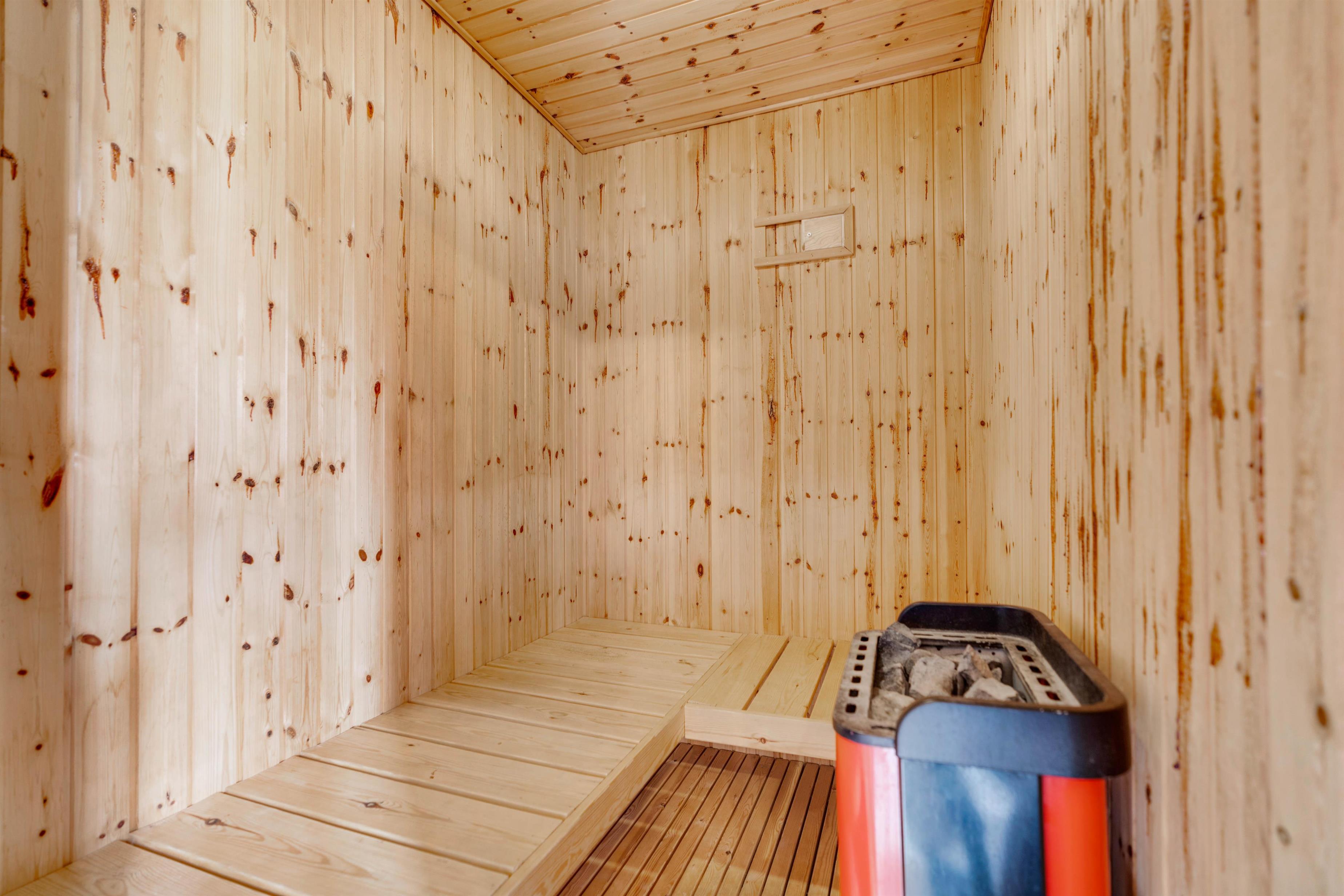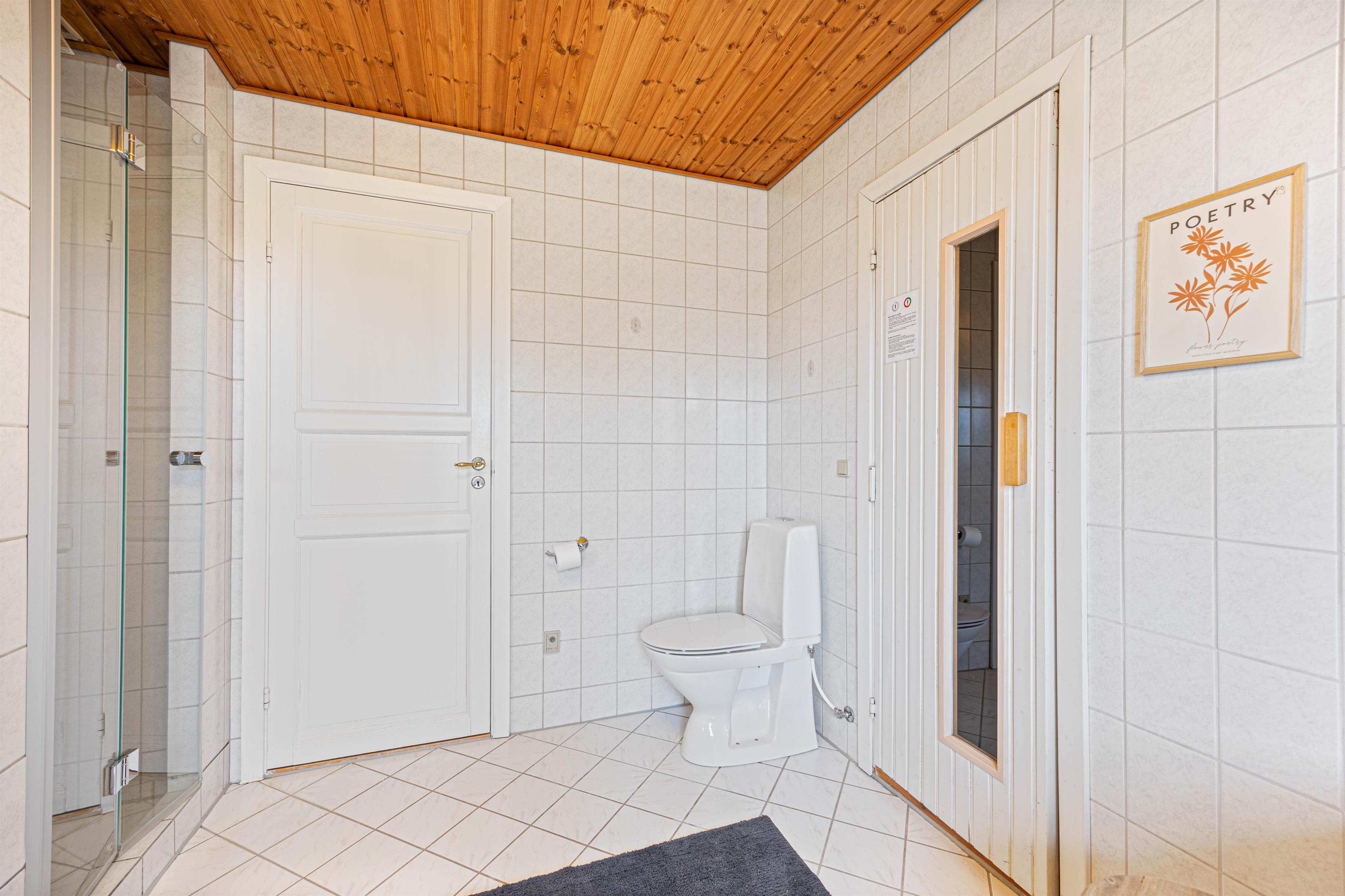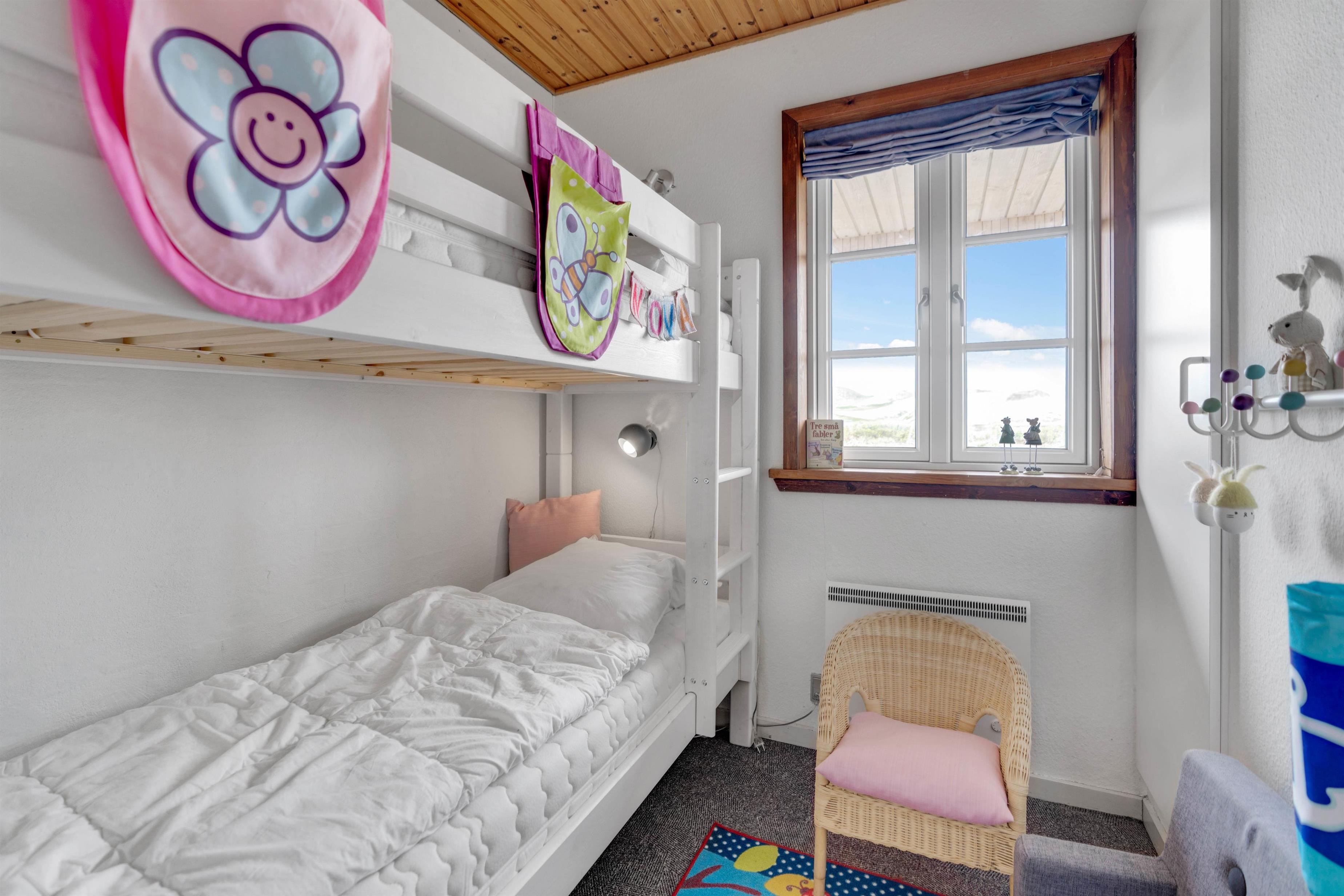 Udover egen wellnessafdeling med stort badeværelse, spa og sauna, indeholder feriehuset et ekstra badeværelse med brus, så I behøver ikke at stå i kø om morgenen. Der er barneseng til småbørnsfamilien. Soveværelserne har rigeligt med sengepladser og flere kombinationsmuligheder i forhold til at placere børn, voksne eller teenagere i gode værelser. Et værelse med køjesenge, som kan benyttes af børn eller voksne. Et rum med to dobbeltsenge til dem, som kræver meget plads, eller gerne vil sove flere sammen.