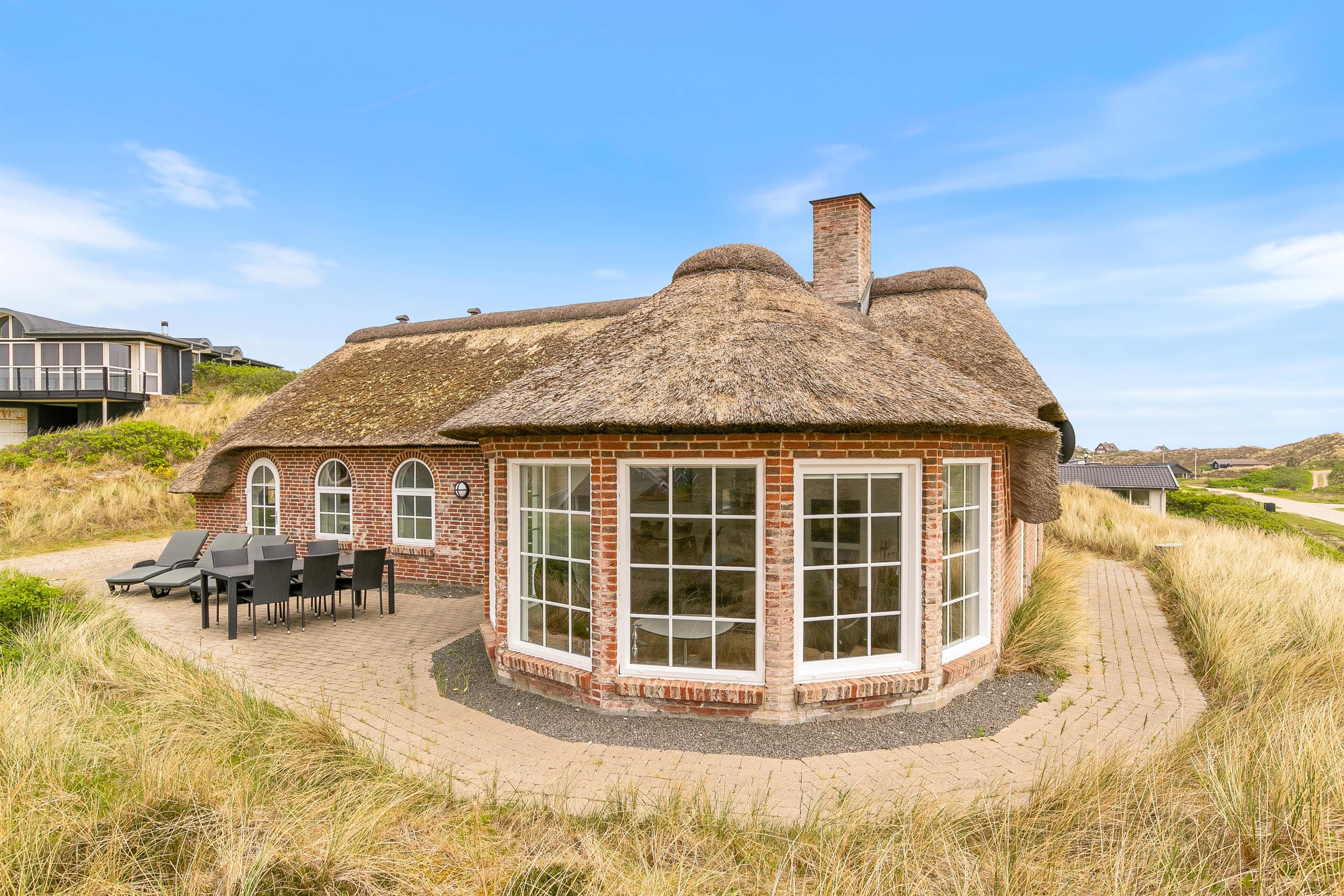 Her kan I holde ferie i et skønt stråtækt sommerhus med dejlig rolig beliggenhed på en kuperet klitgrund i Skodbjerge. Feriehuset er højt placeret på en 2.030 m2 naturgrund med den smukkeste udsigt udover klitterne. Her er plads til 8 gæster, og sommerhuset ligger kun 350 meter fra Vesterhavet.