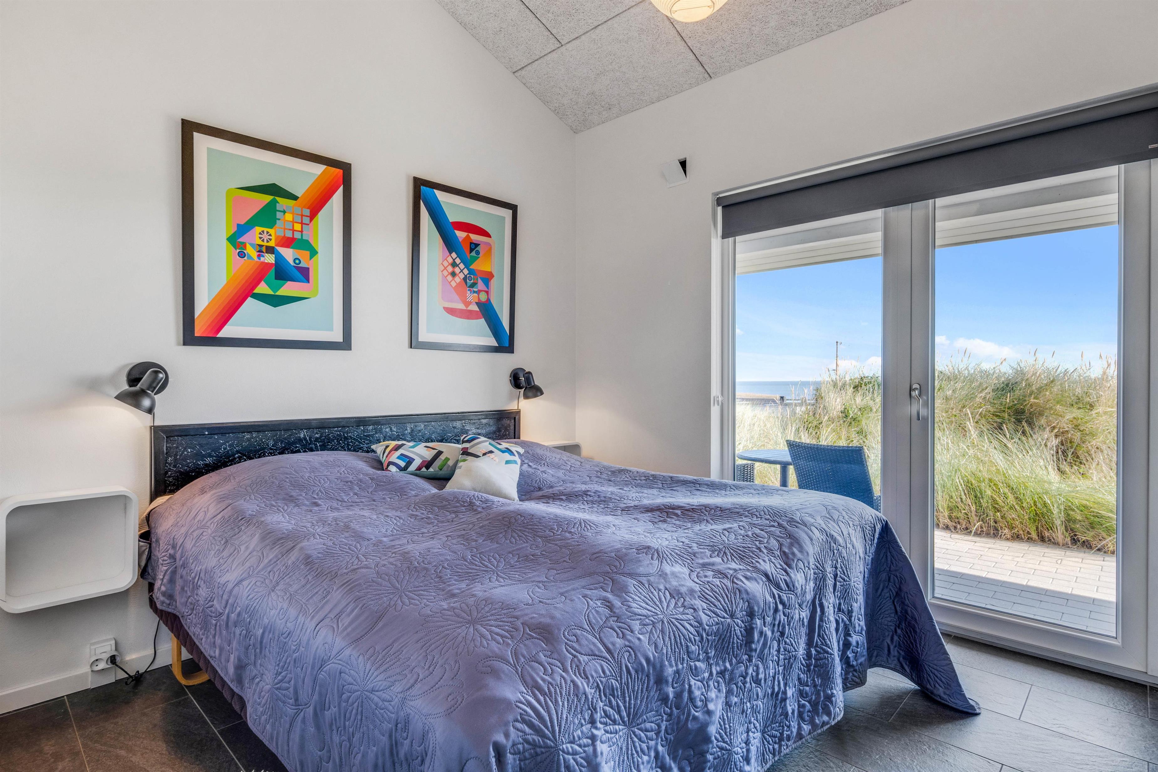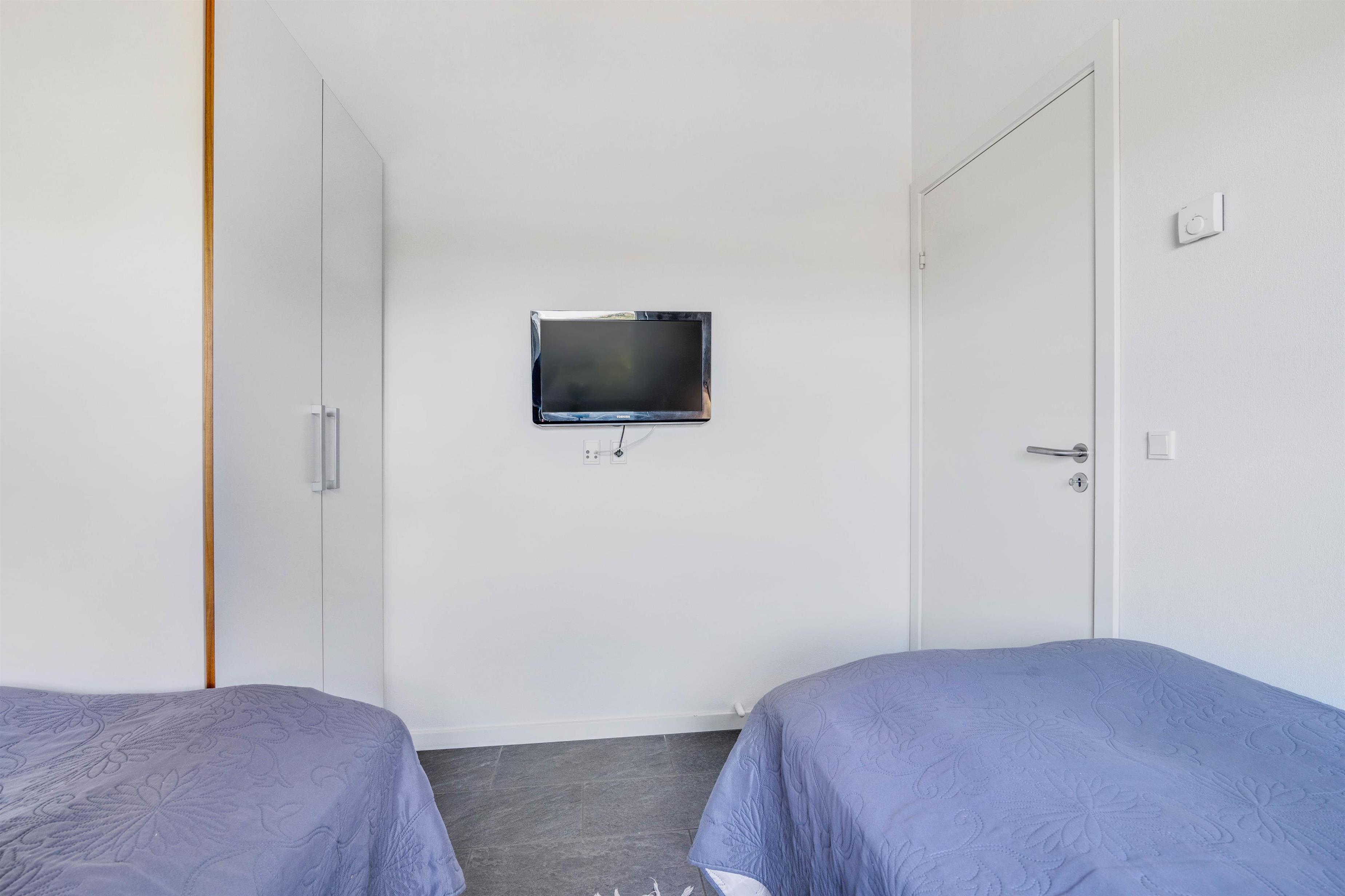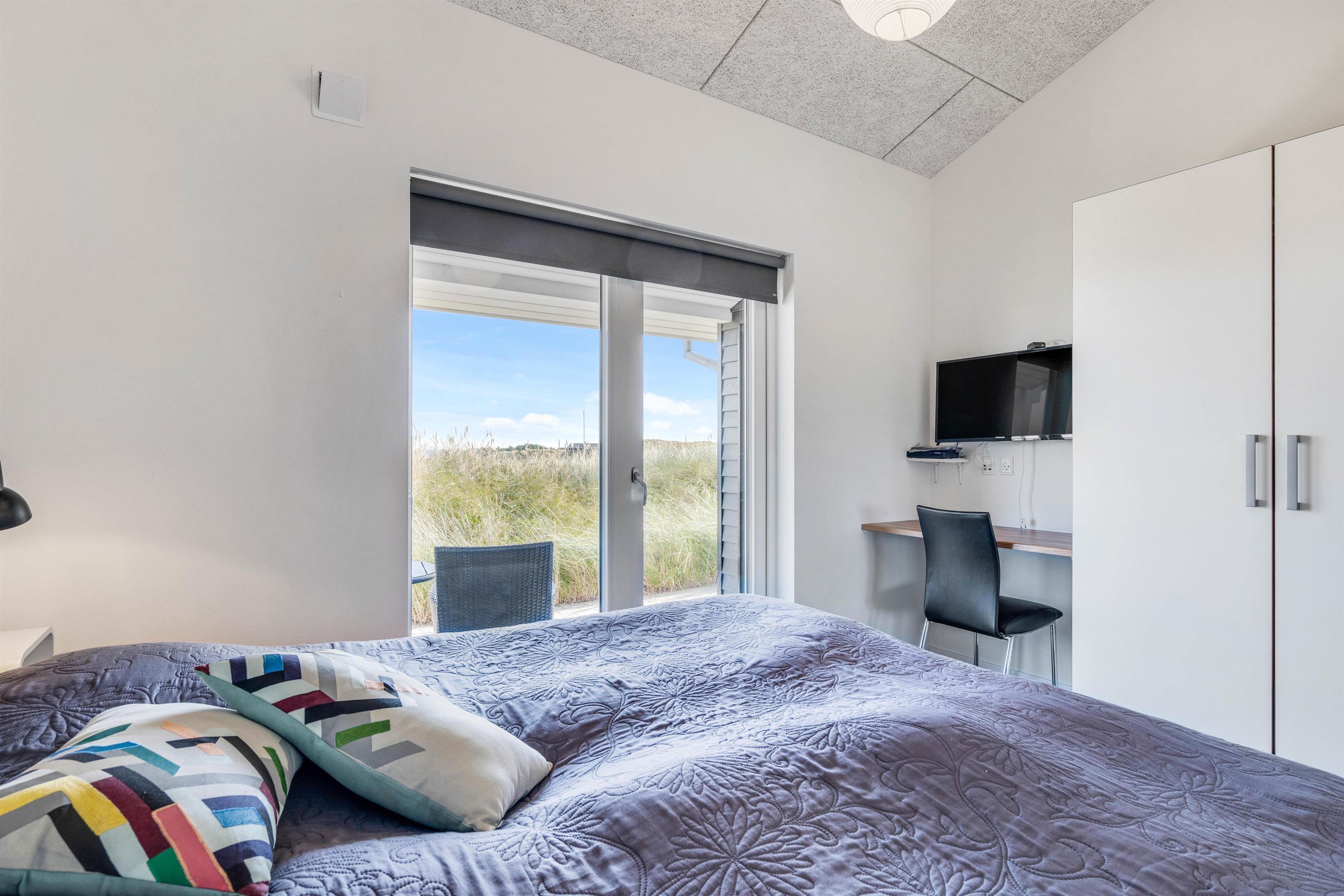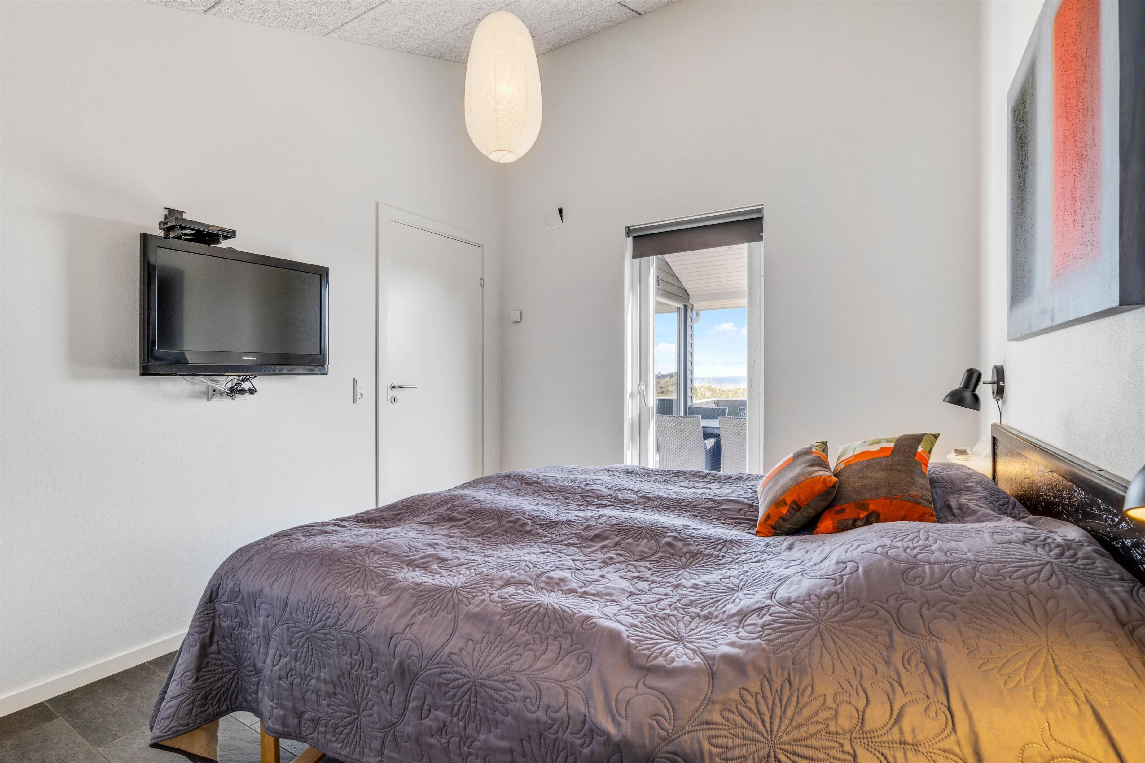 Det flotte sommerhus har 3 gode soveværelser med plads til i alt 6 personer. Her er 2 værelser med dobbeltsenge og et soveværelse med 2 enkeltsenge. Alle soveværelser har gode brede senge, fladskærm og klinkegulv med gulvvarme. I værelset med enkeltsengene er der desuden indbygget en DVD afspiller i tv'et.