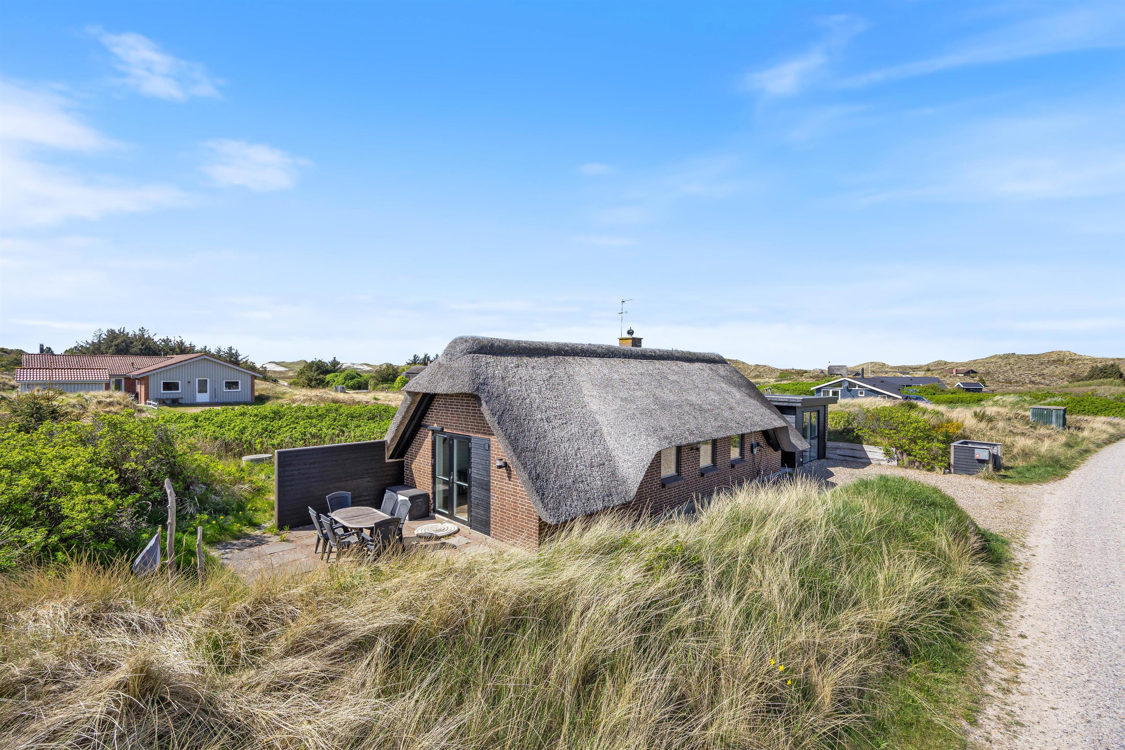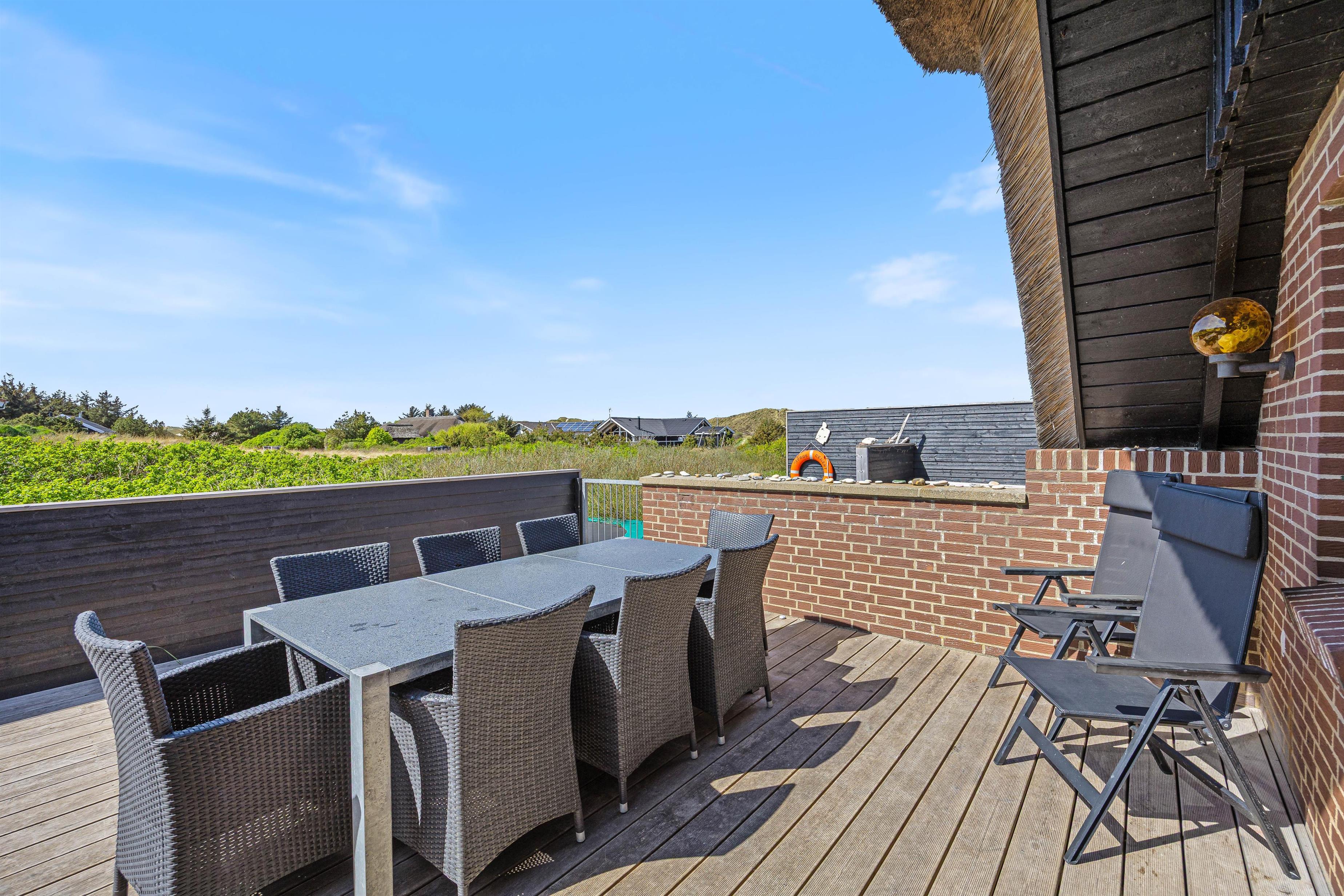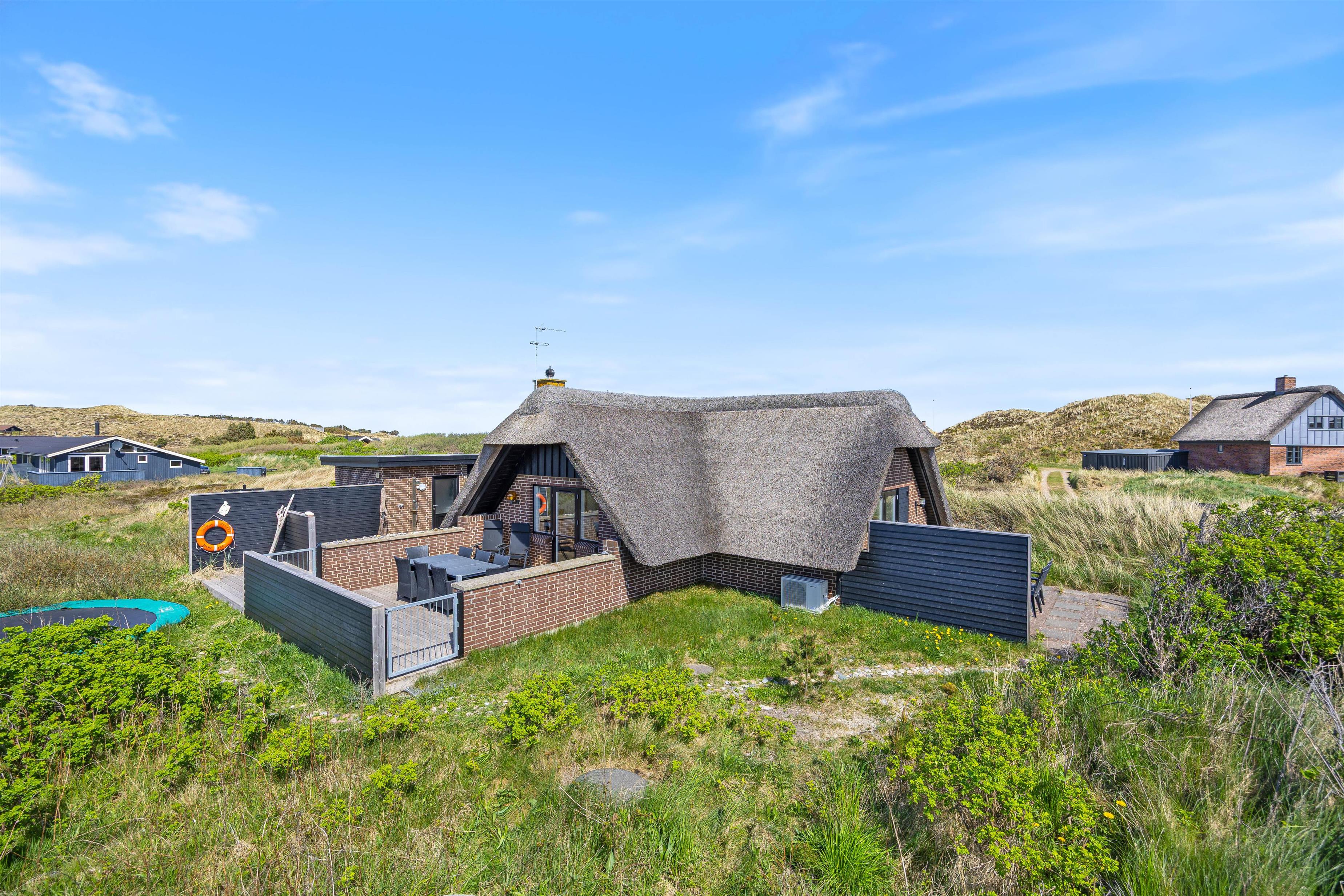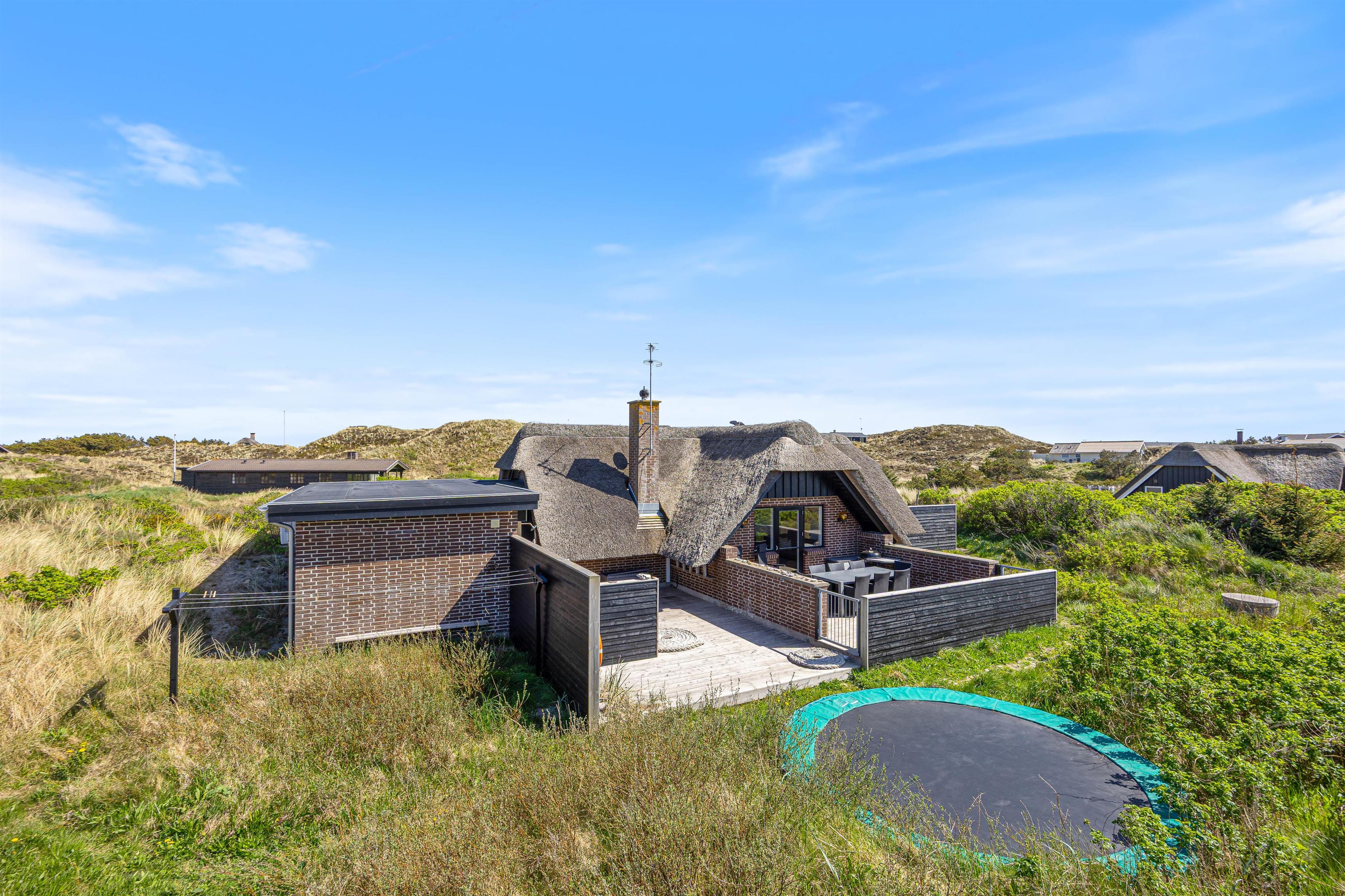Den lukkede terrasse er som skabt til en afslappet eftermiddag med en god bog og et køligt glas vin. Med 5 kilometer til nærmeste indkøbsmuligheder, er det let at arrangere en impulsiv grillaften. Tænd op i grillen og nyd et lækkert måltid sammen, imens skyggerne bliver lange. Lad børnene hoppe på trampolin, sæt hunden i snor og gå en fælles tur til stranden for at opleve solnedgangen i Vesterhavet.