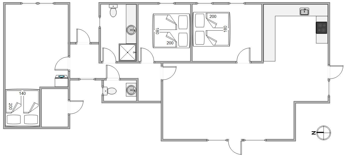 Med gulvvarme i badeværelset og en luft-til-luft varmepumpe kan I nyde et hyggeligt og varmt ophold, selv på de køligere dage. Sommerhuset rummer 2 soverum og en alkove med 2 ekstra sovepladser, hvilket tilsammen giver plads til 6 personer. Badeværelset og et ekstra gæstetoilet betyder, at der er god plads til hele familien. Med både vaskemaskine og tørretumbler til rådighed kan I pakke let og opfriske garderoben i løbet af ferien.