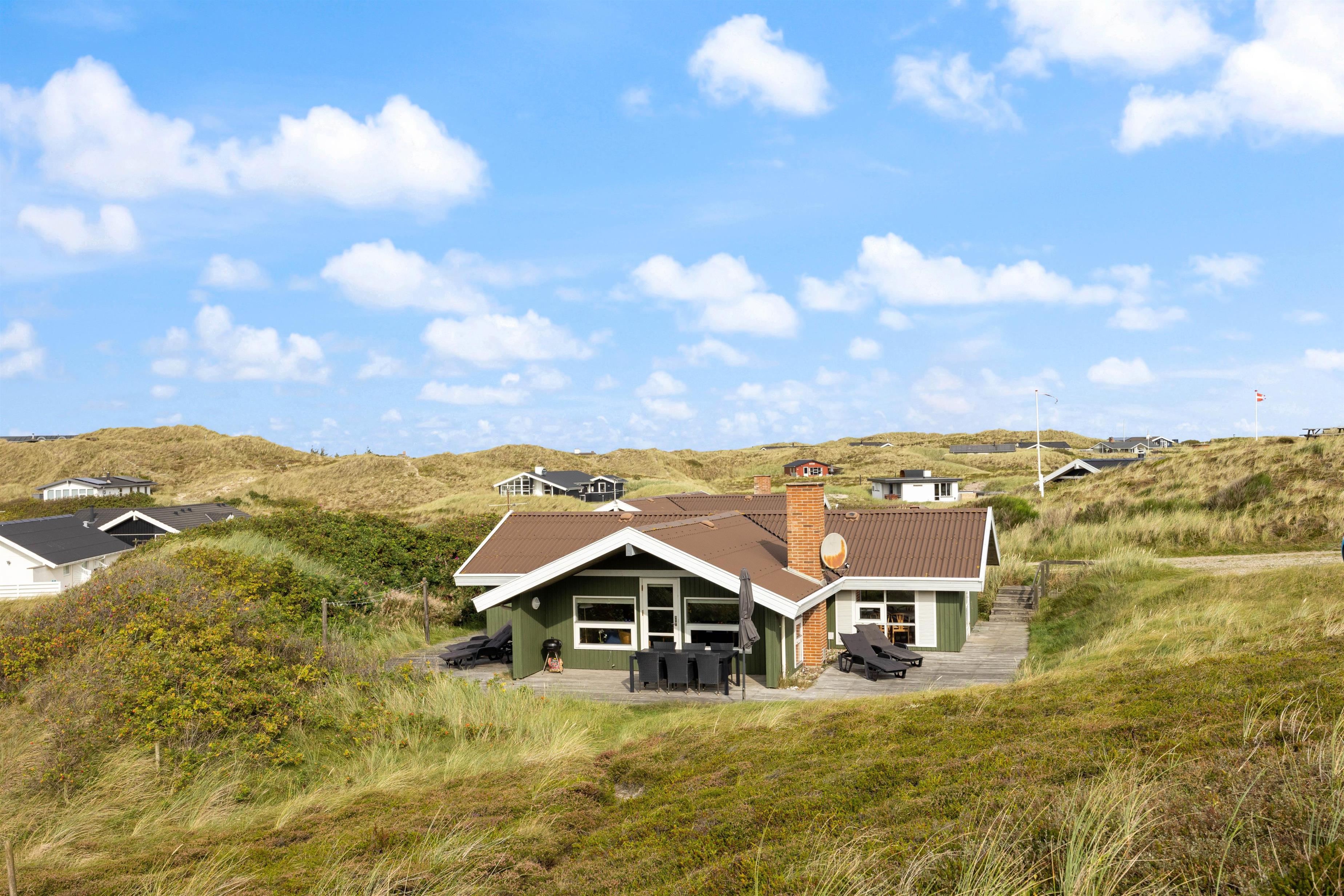 Ferie i Skodbjerge er noget helt særligt. Her er I tæt på den vestjyske natur, Vesterhavet og Ringkøbing Fjord. Sommerhuset på Sandvej 5 er skønt og med en herlig, ugeneret beliggenhed på en klitgrund. Fra sommerhusets stue og terrasse har I en skøn udsigt til den smukke omkringliggende natur. Der er en trappe ned til huset fra indkørslen.