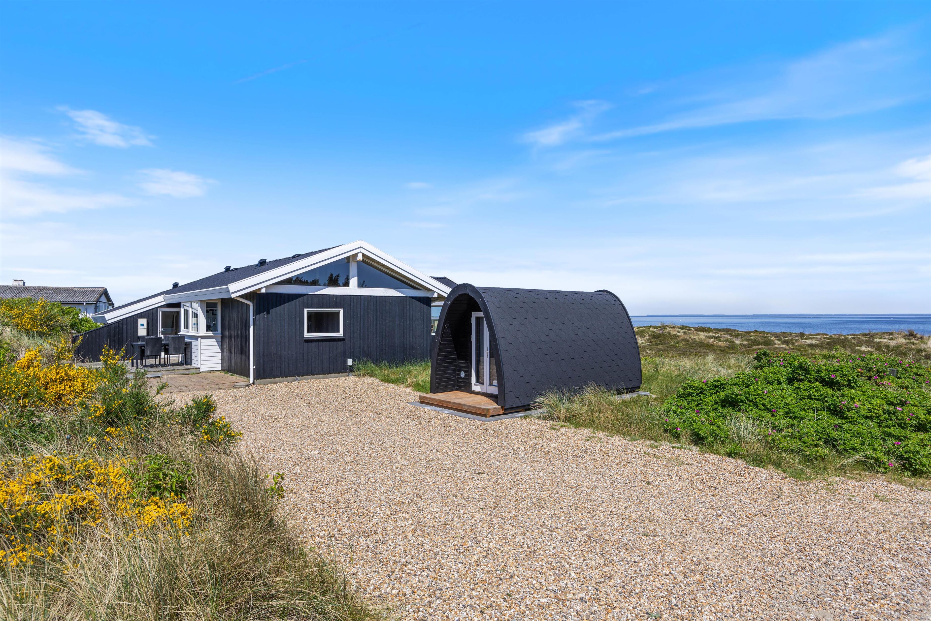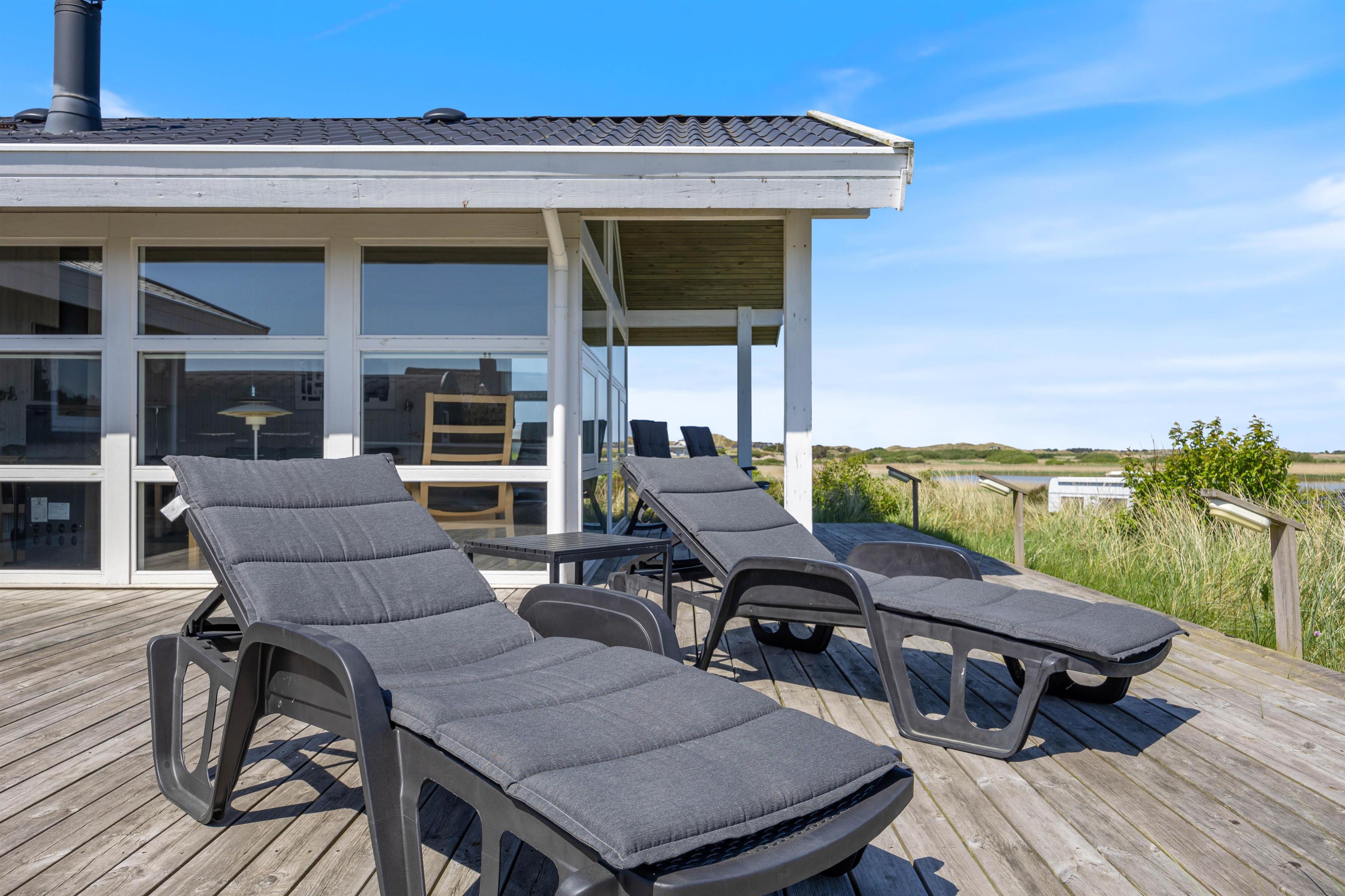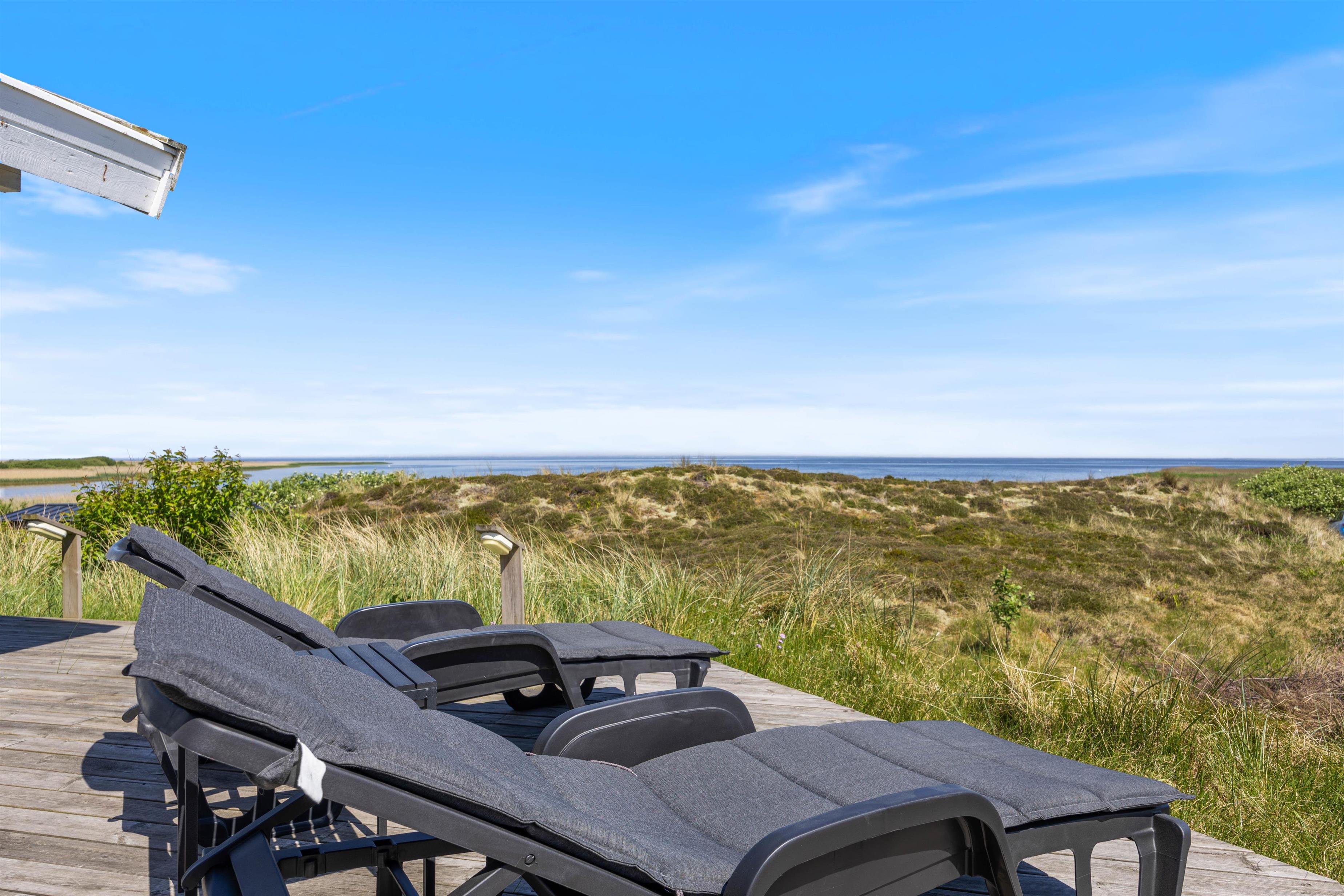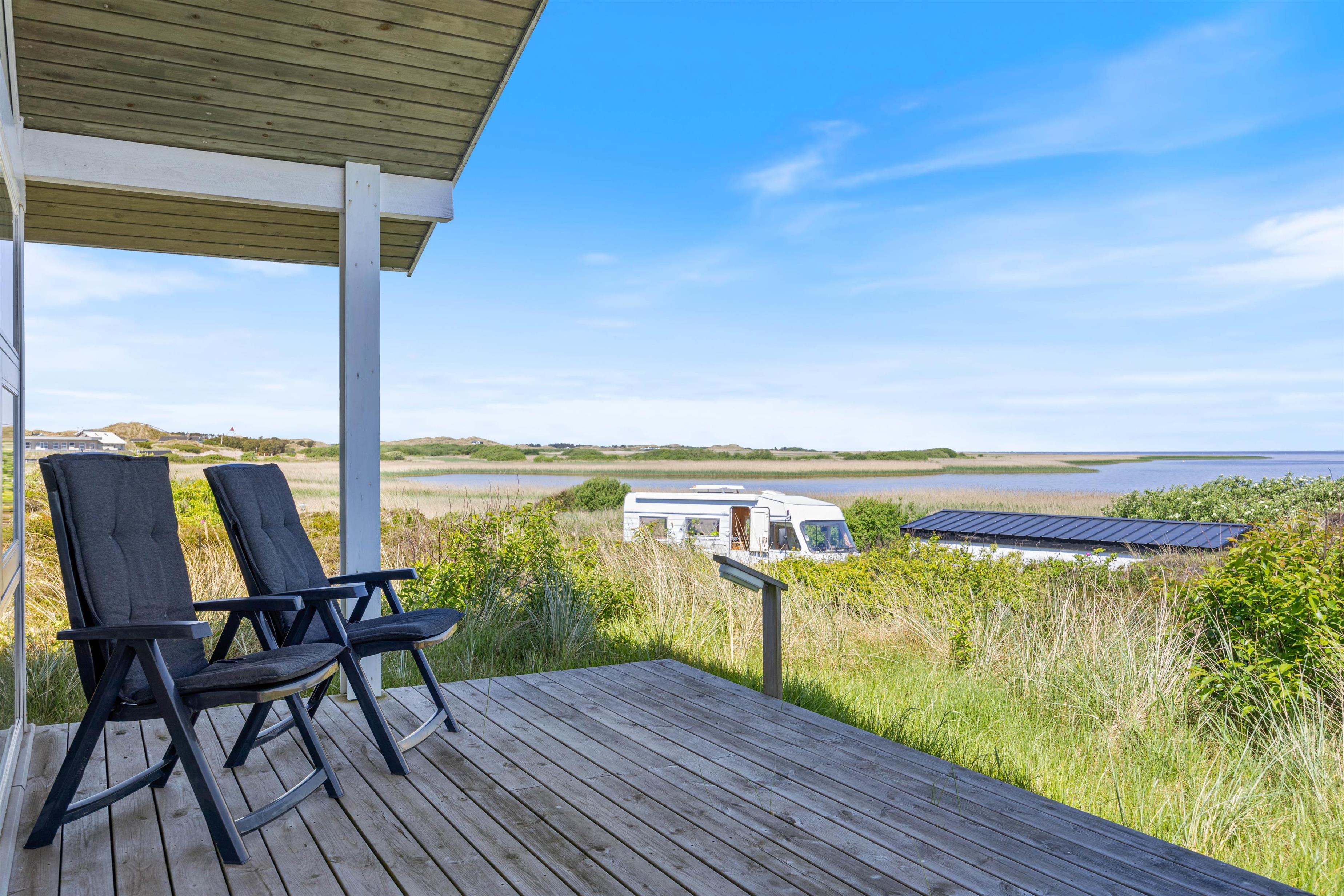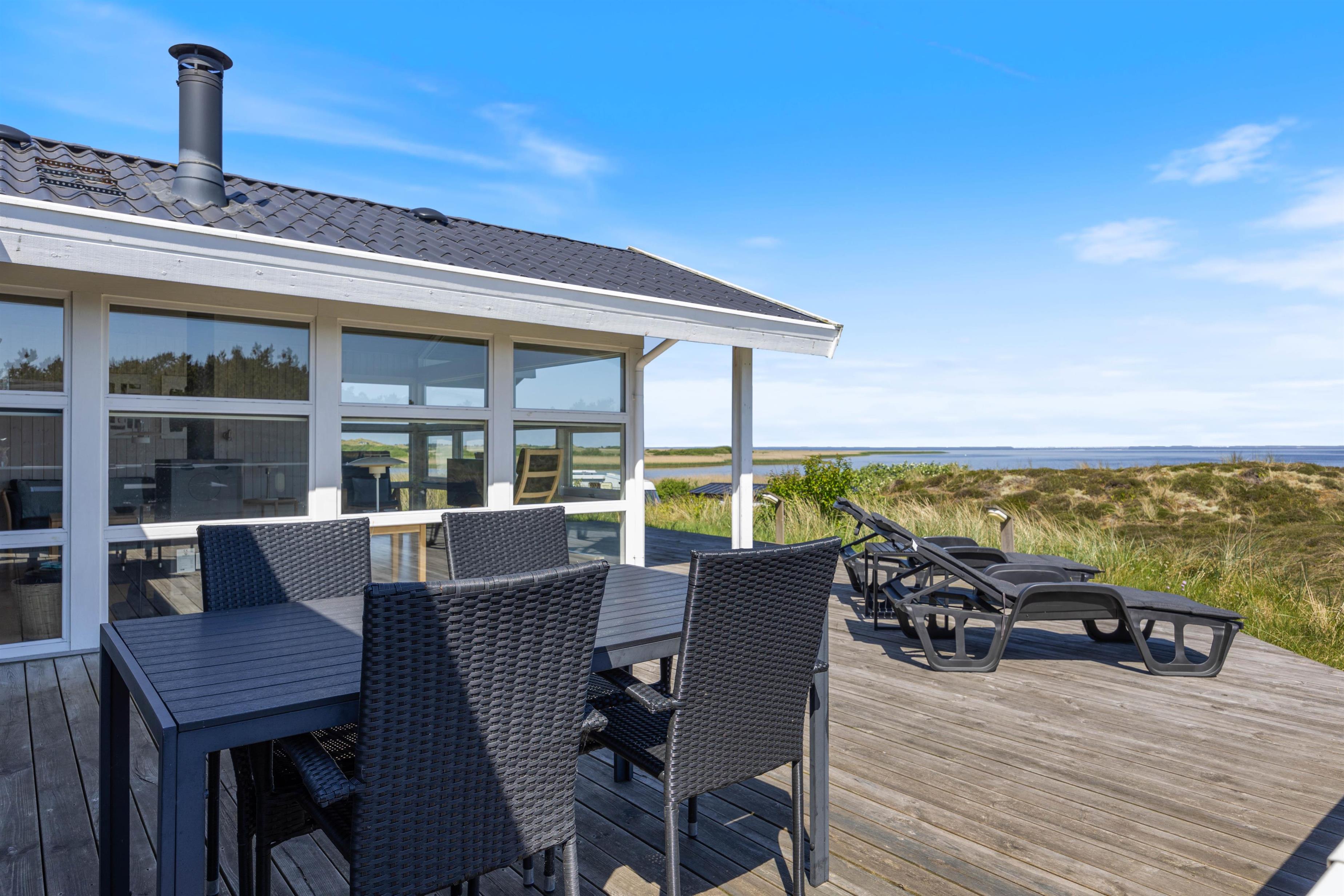 Dejligt feriehus på Hareklit med skøn beliggenhed ved Ringkøbing Fjord. Huset har en helt fantastisk udsigt over Ringkøbing Fjord fra både stue og terrasse. Feriehuset er indrettet med tre gode soverum med dobbeltsenge til 6 personer og indeholder også spa og sauna.
