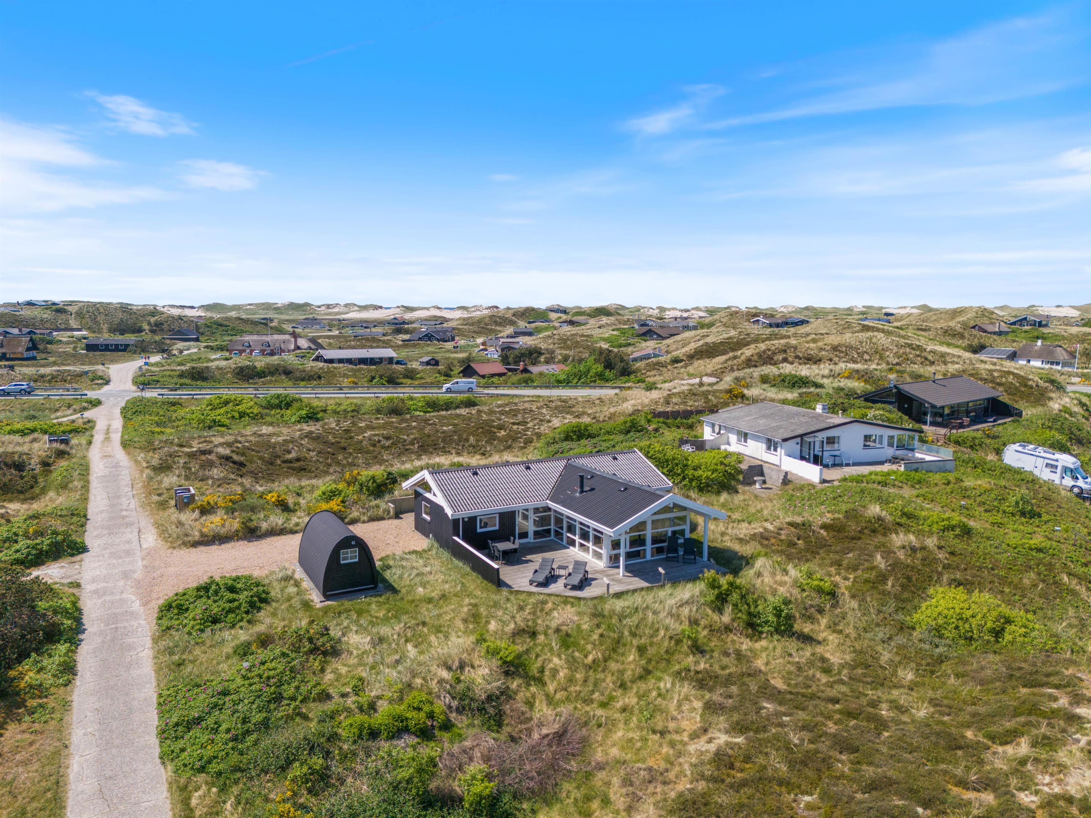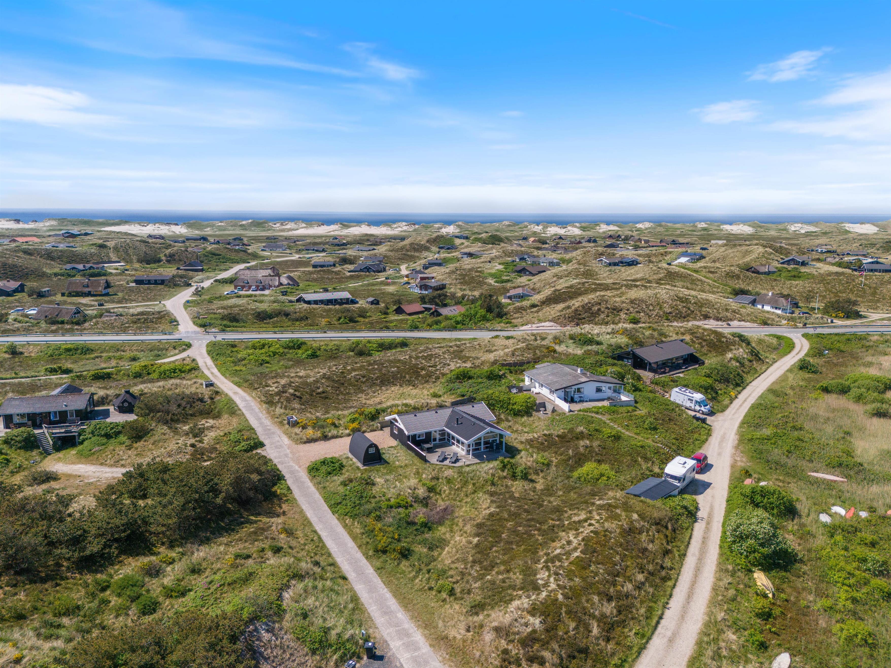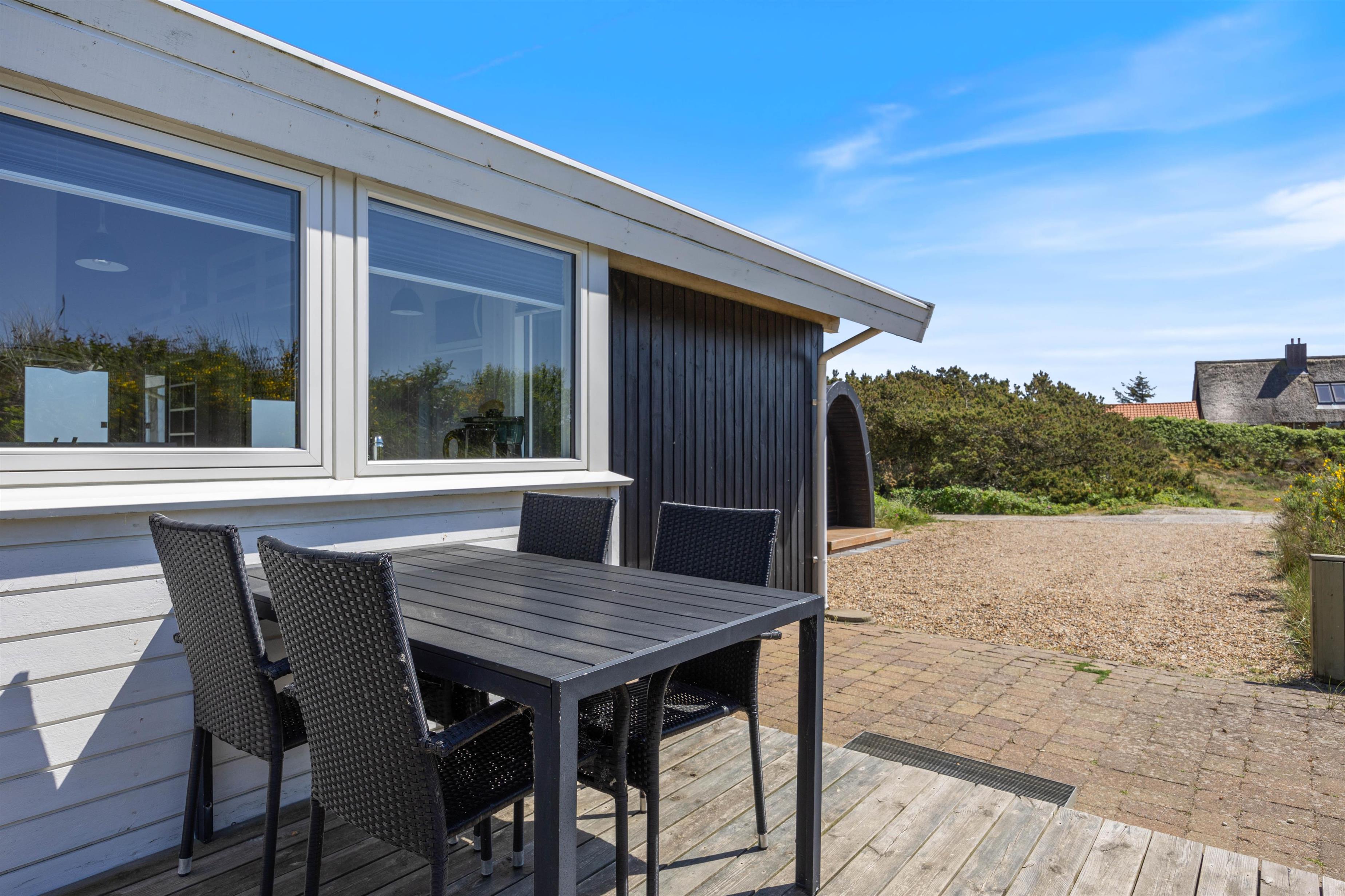 Fra feriehuset er der blot 850 meter til det brusende Vesterhav, hvorfor man nemt kan planlægge en gåtur hertil og vandre langs stranden. Fra sommerhuset er der 4,5 km til indkøbsmuligheder i Hvide Sande, som også er en udflugt værd. I Hvide Sande er der forskellige shoppingsmuligheder, restauranter samt diverse aktiviteter, som I kan lave sammen hele familien.