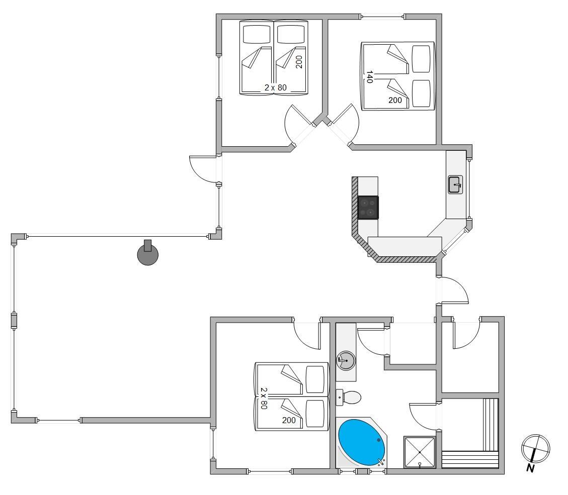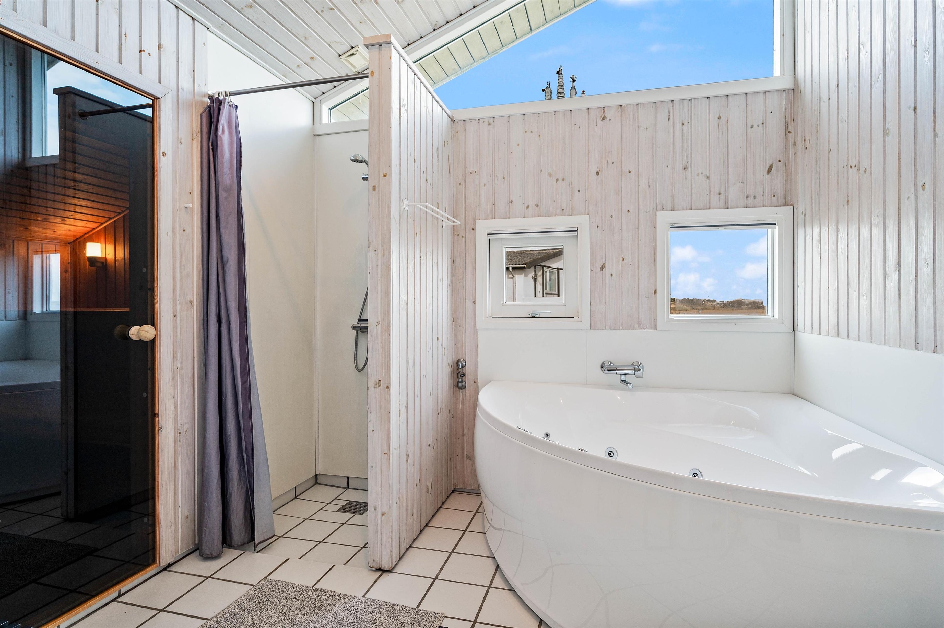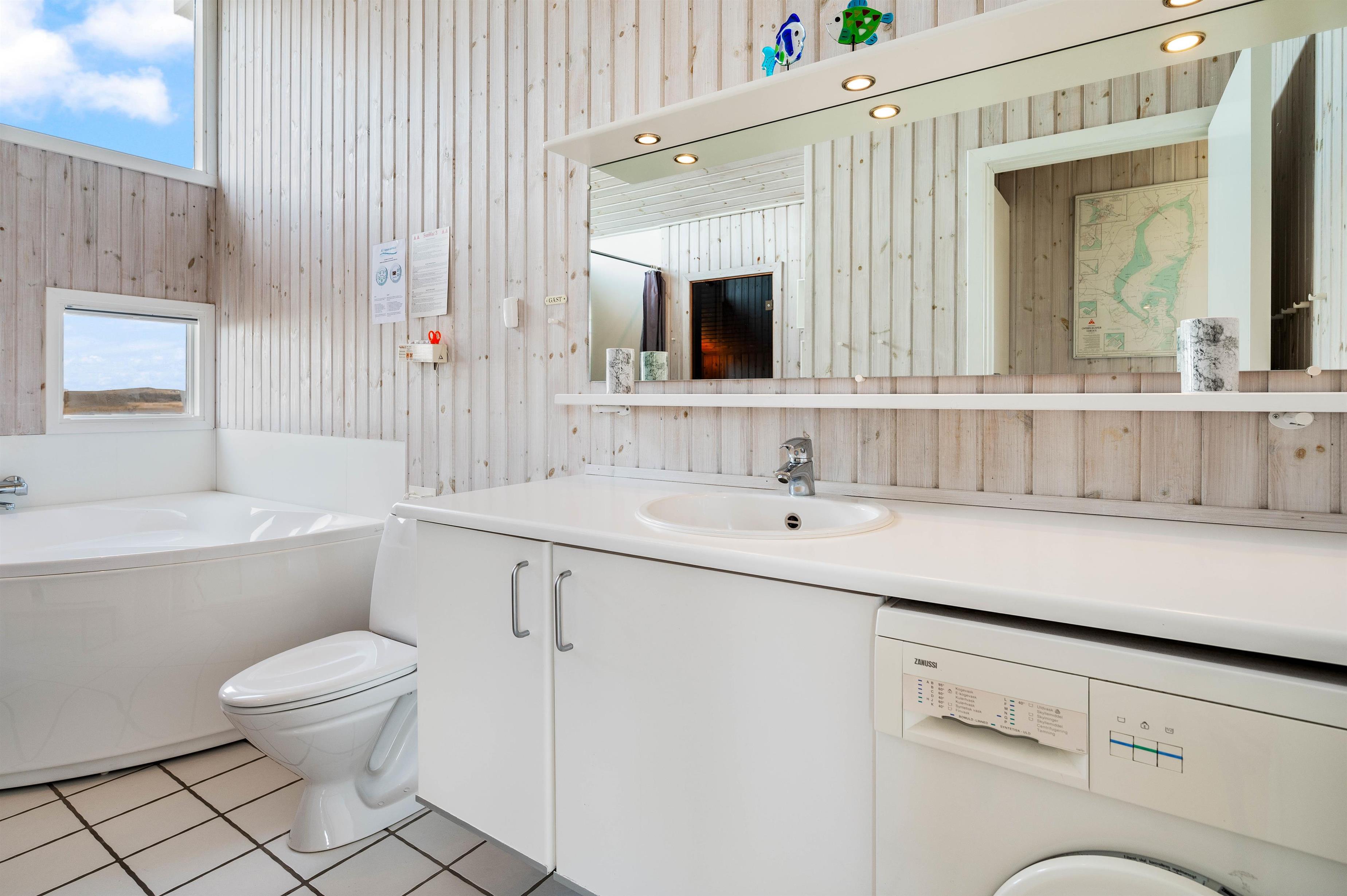 Fra spiseområde og køkken er der adgang til en lille hems, som er helt perfekt til familiens teeanagere. De vil elske at have et rum, som er deres, og hvor de kan trække sig tilbage fra resten af famiilen. Huset har gratis, trådløst internet, så der kan surfes på nettet. Derudover er der 3 soverum, som alle er med dobbeltsenge. Det dejligt store og lyse badeværelse har både spabad og sauna.