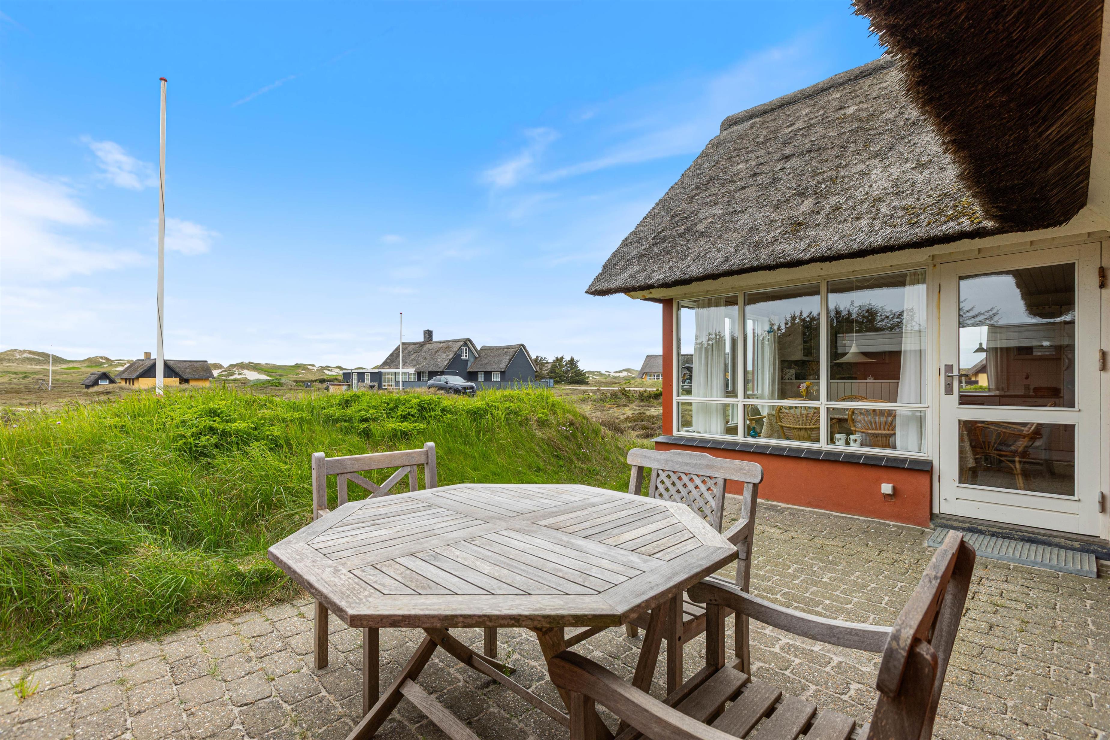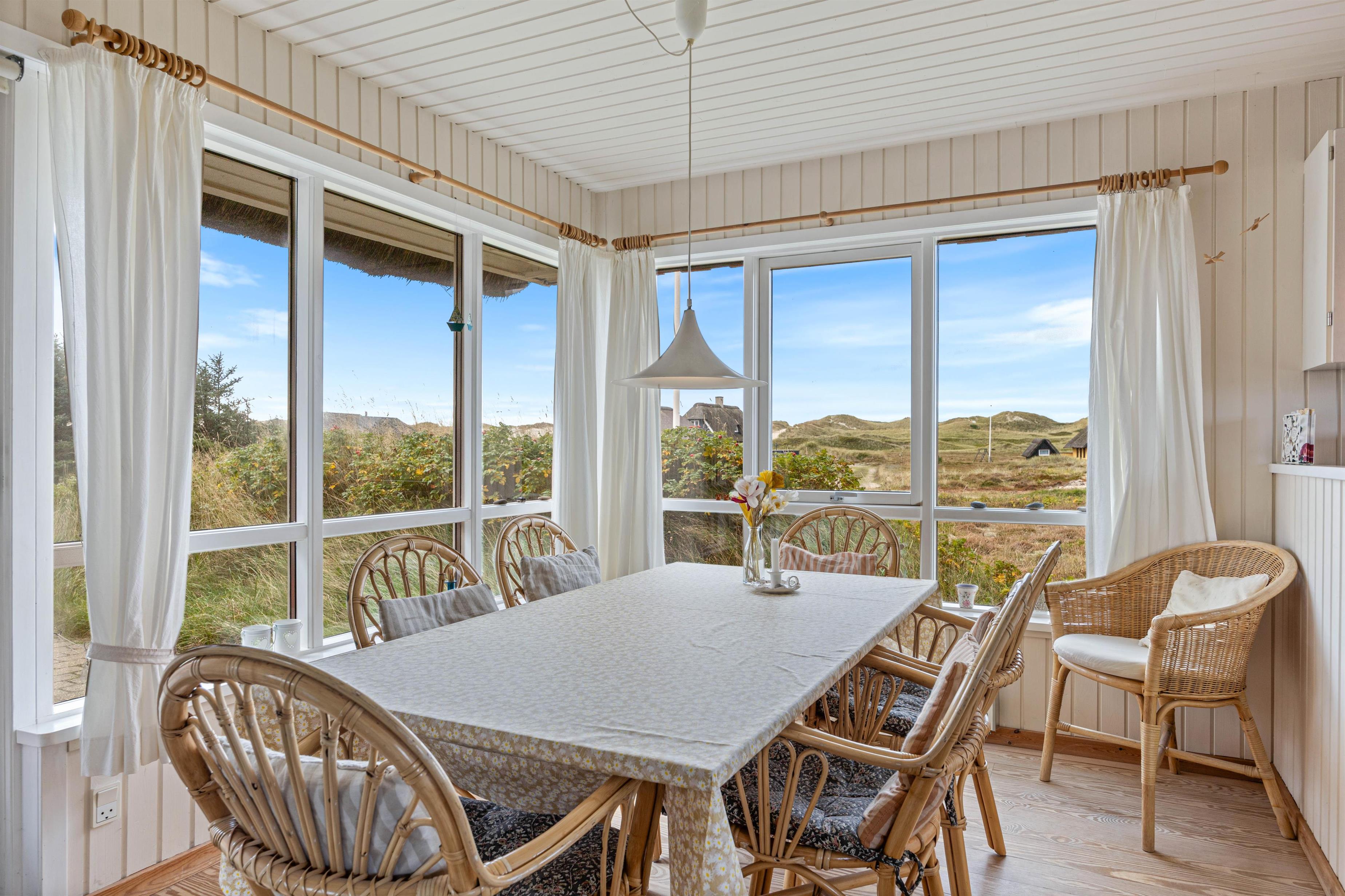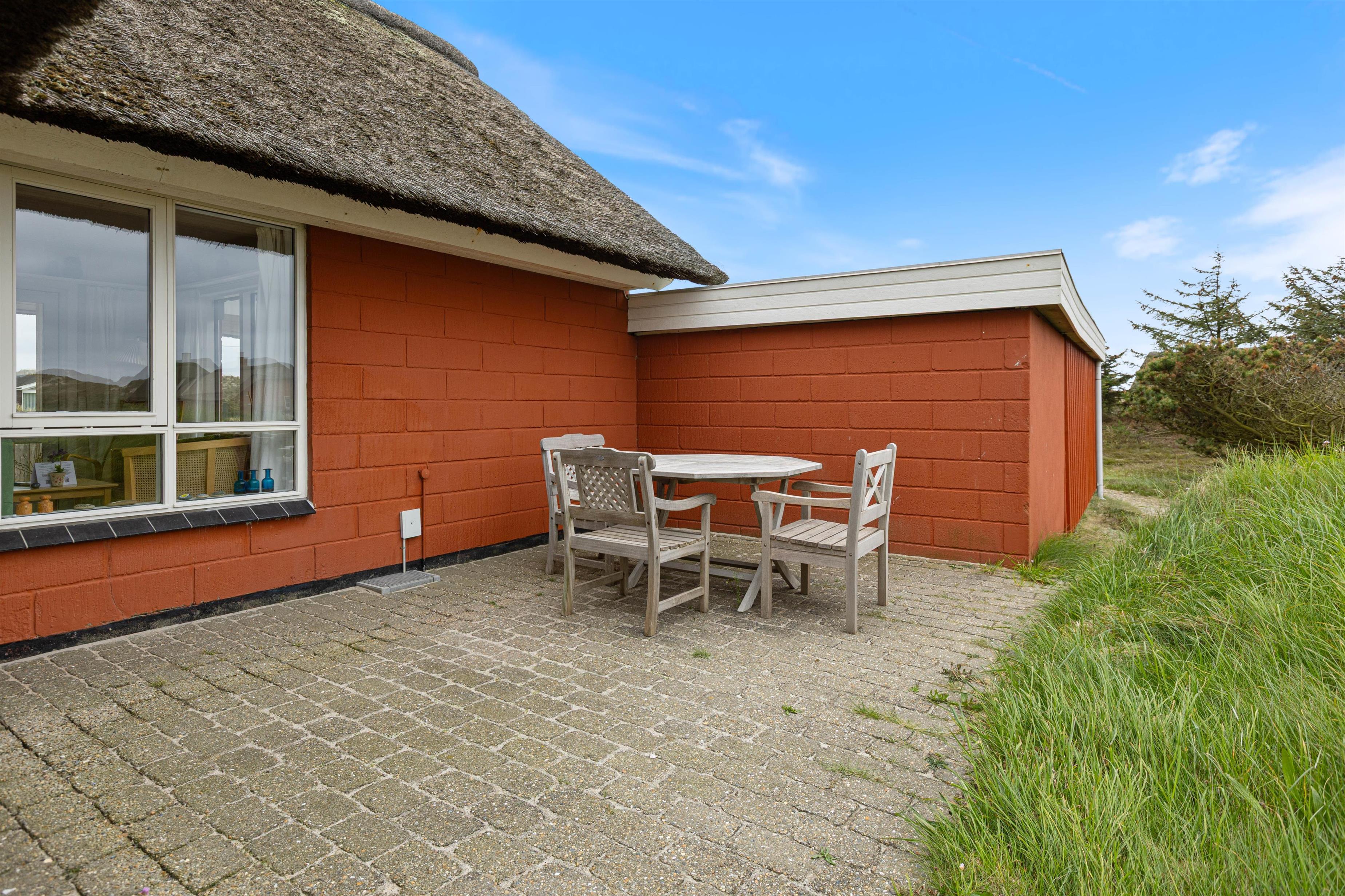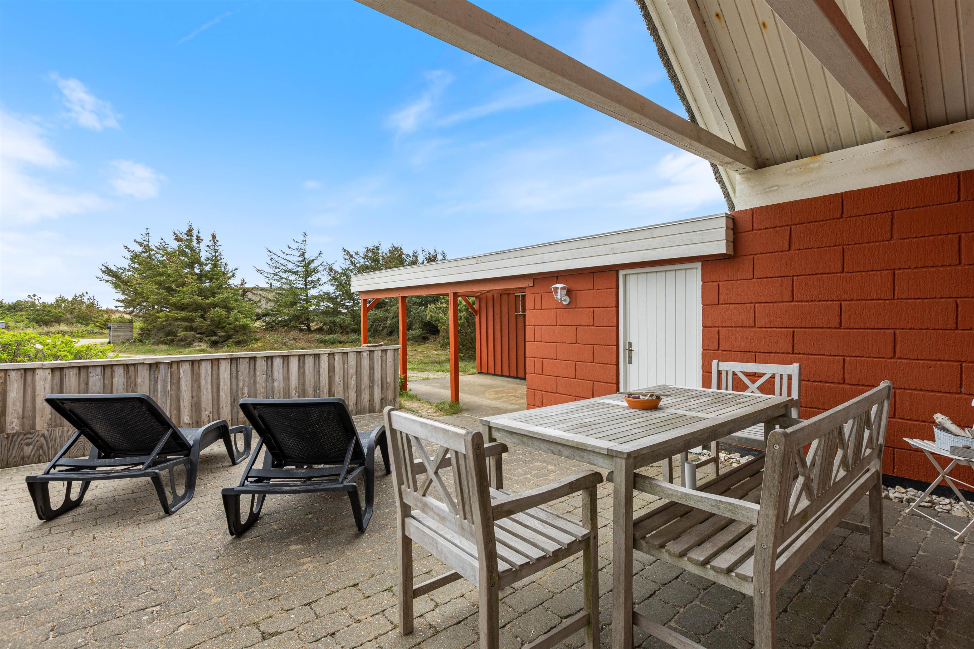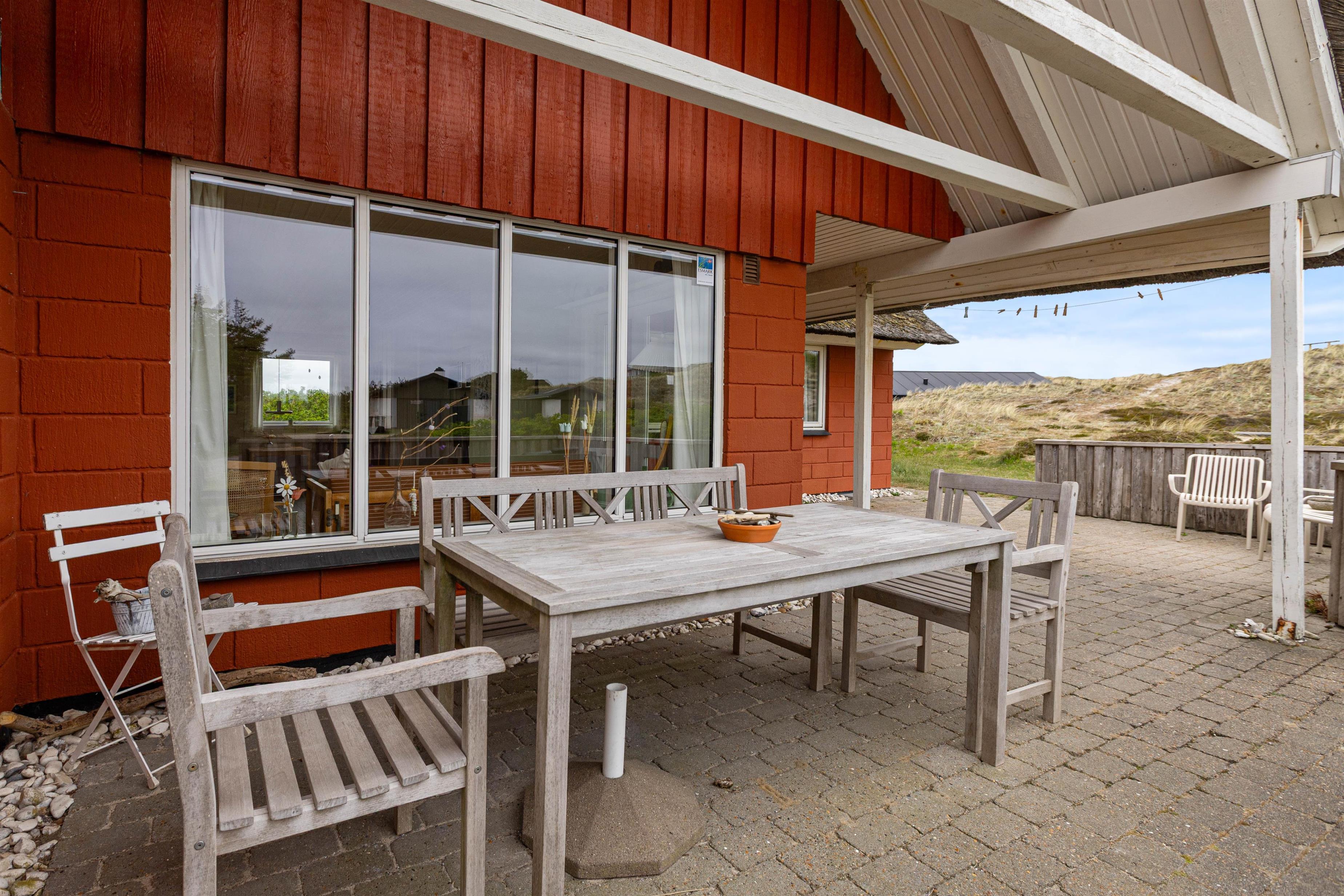 Lad batterierne op på en af sommerhusets dejlige afskærmede terrasser, hvoraf den ene er delvist overdækket. Du kan som regel altid finde en dejlig læfyldt plet, hvor du kan nyde den friske luft. Efter en god dag på stranden, kan I nyde en god bøf fra grillen og slappe af til lyden af Vesterhavets brusen, imens solen langsomt går ned.