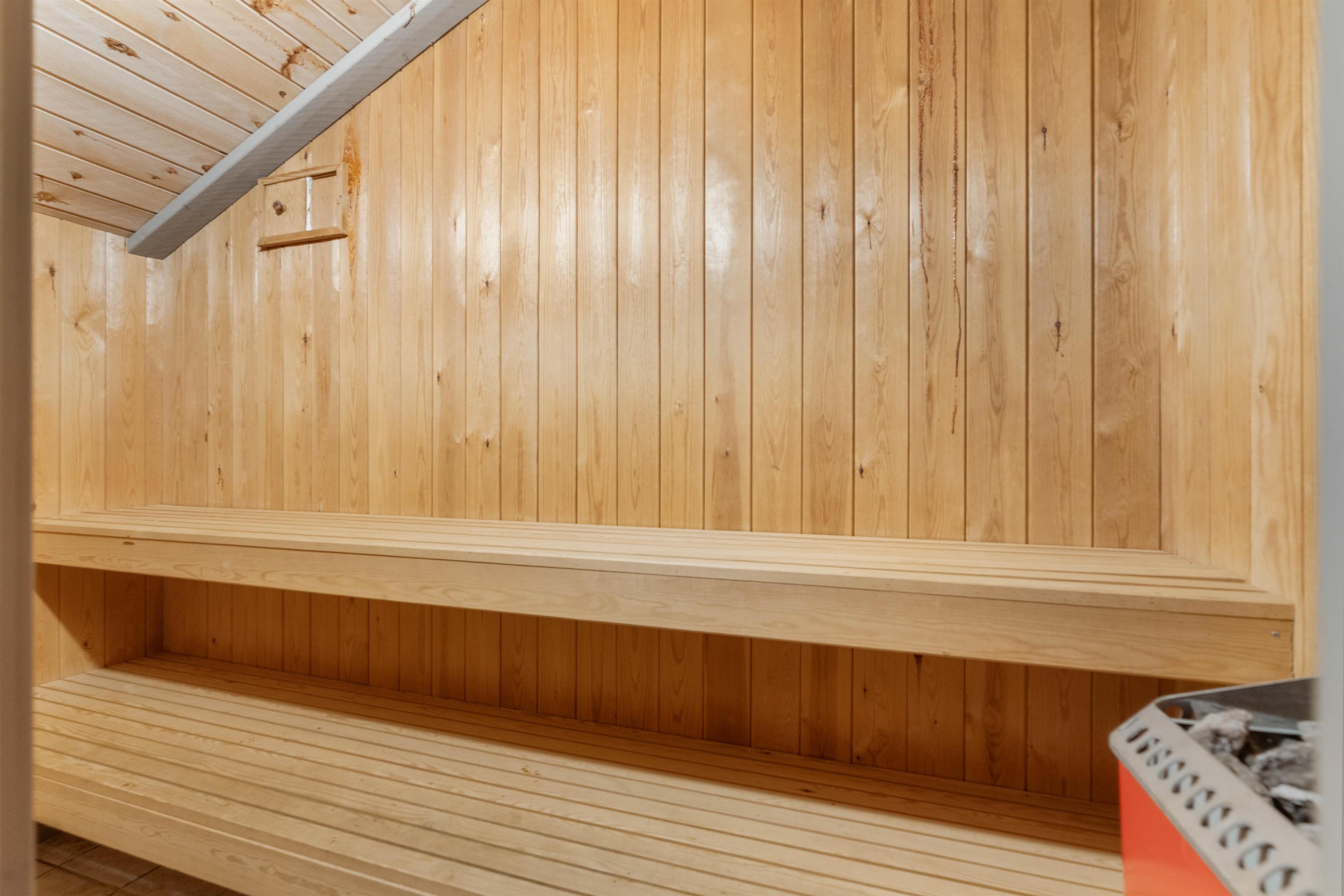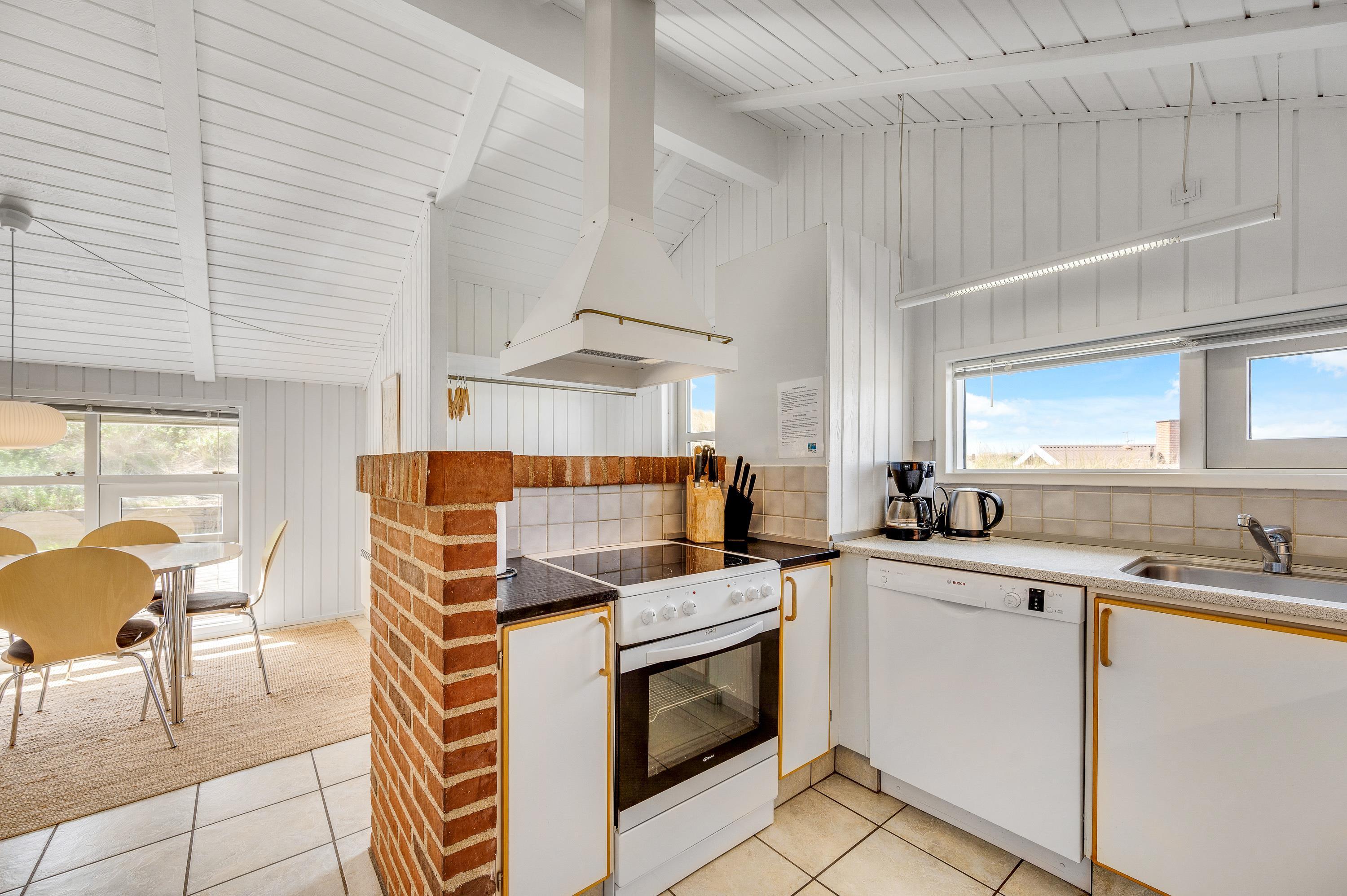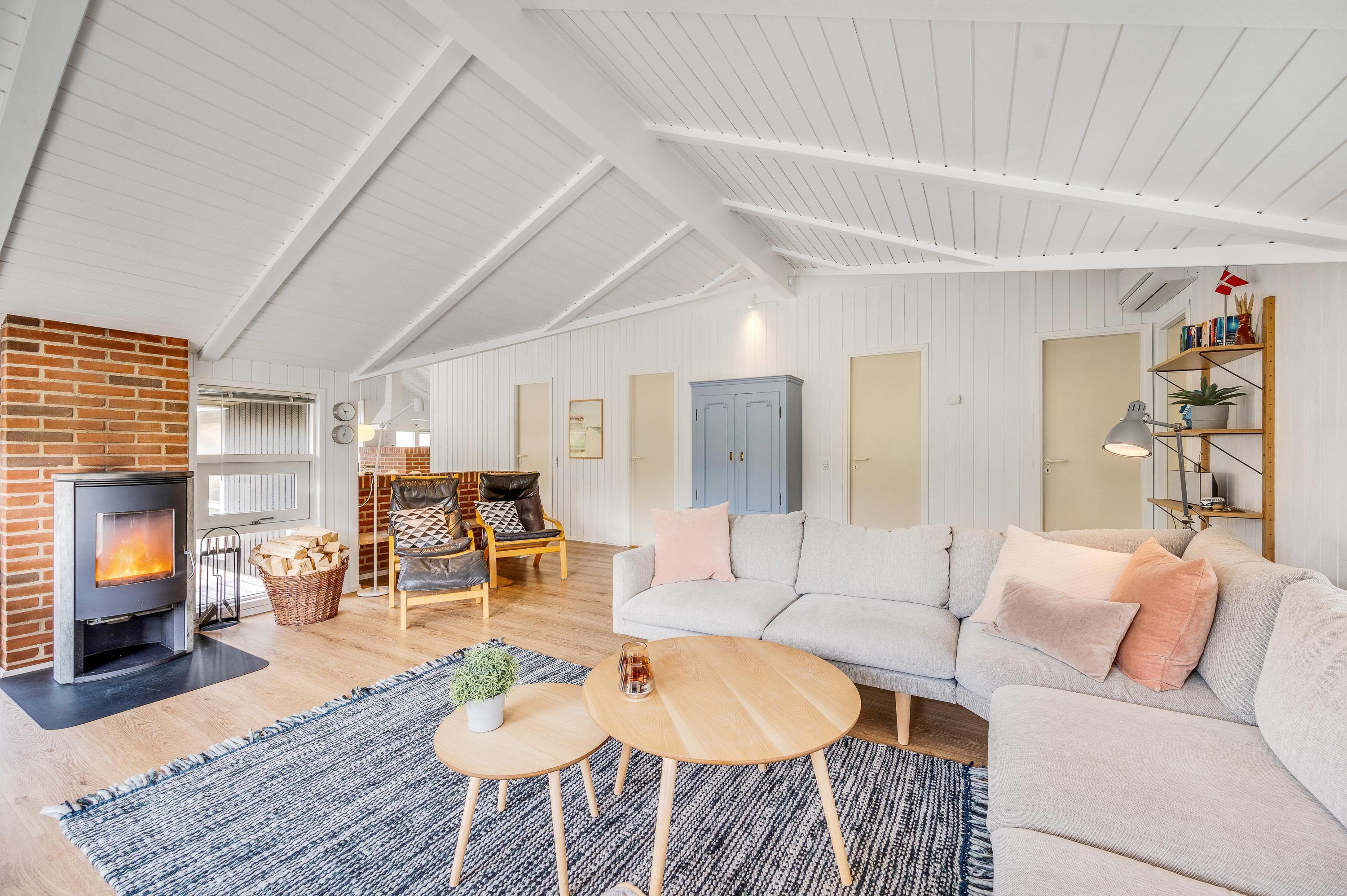 På Sandvej 1 mærker I den fine feriestemning straks, I træder ind i det hyggelige sommerhus. De lyse vægge og lofter i kombination med trægulvene og mursten skaber en lys og rummelig atmosfære. I det lyse køkken/alrum kan I spise sammen, eller spille et brætspil imens det næste måltid forberedes i det åbne køkken. I stuen kan I hygge jer i sofaen foran ilden i brændeovnen. Herfra kan I også følge med i, hvad der sker på terrassen. Sommerhuset har et dejligt stort og lyst badeværelse med spabad og sauna samt vaskemaskine. Der er en energibesparende varmepumpe, som hurtigt og effektivt sørger for et behageligt indeklima og en god temperatur.