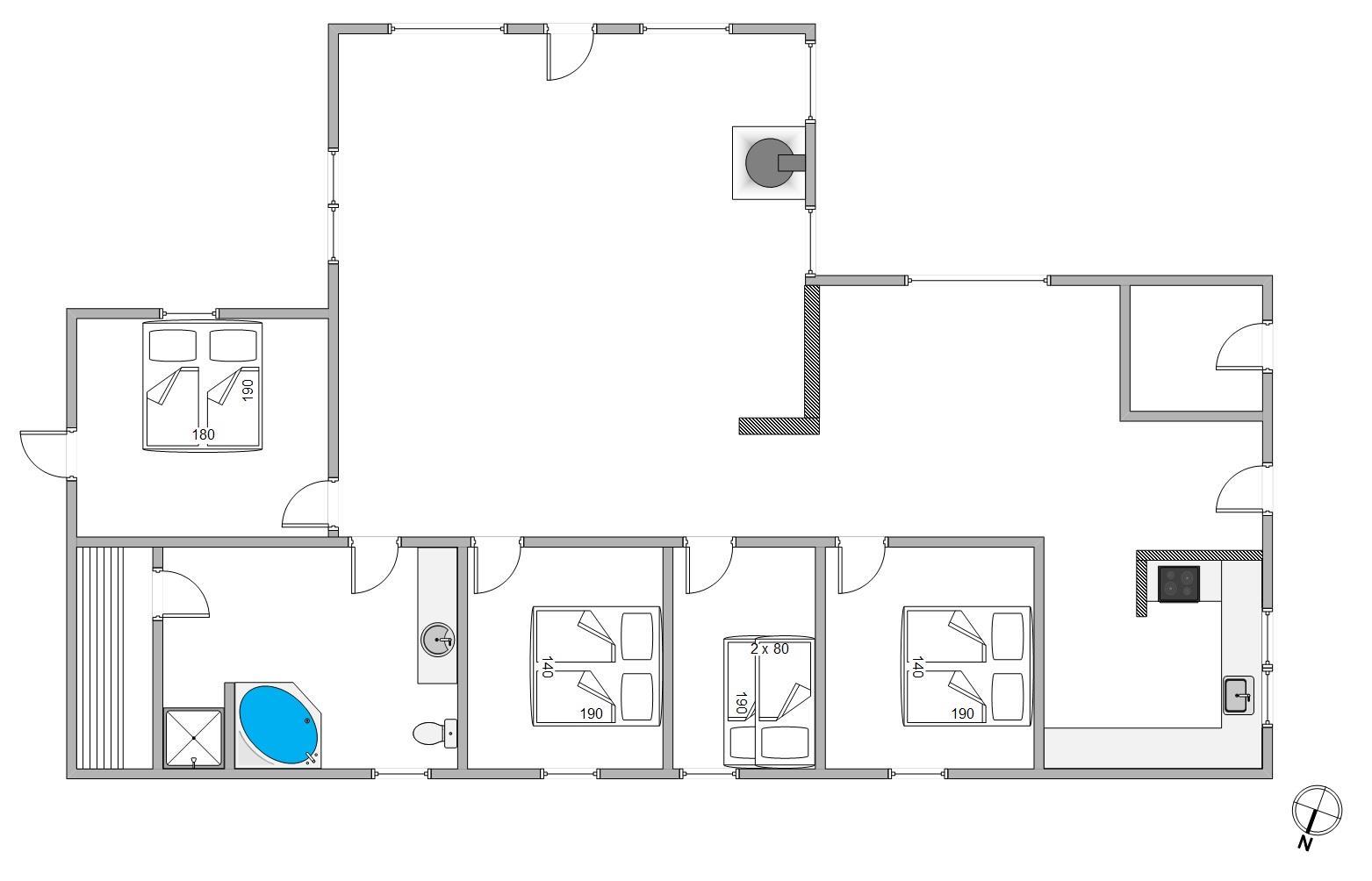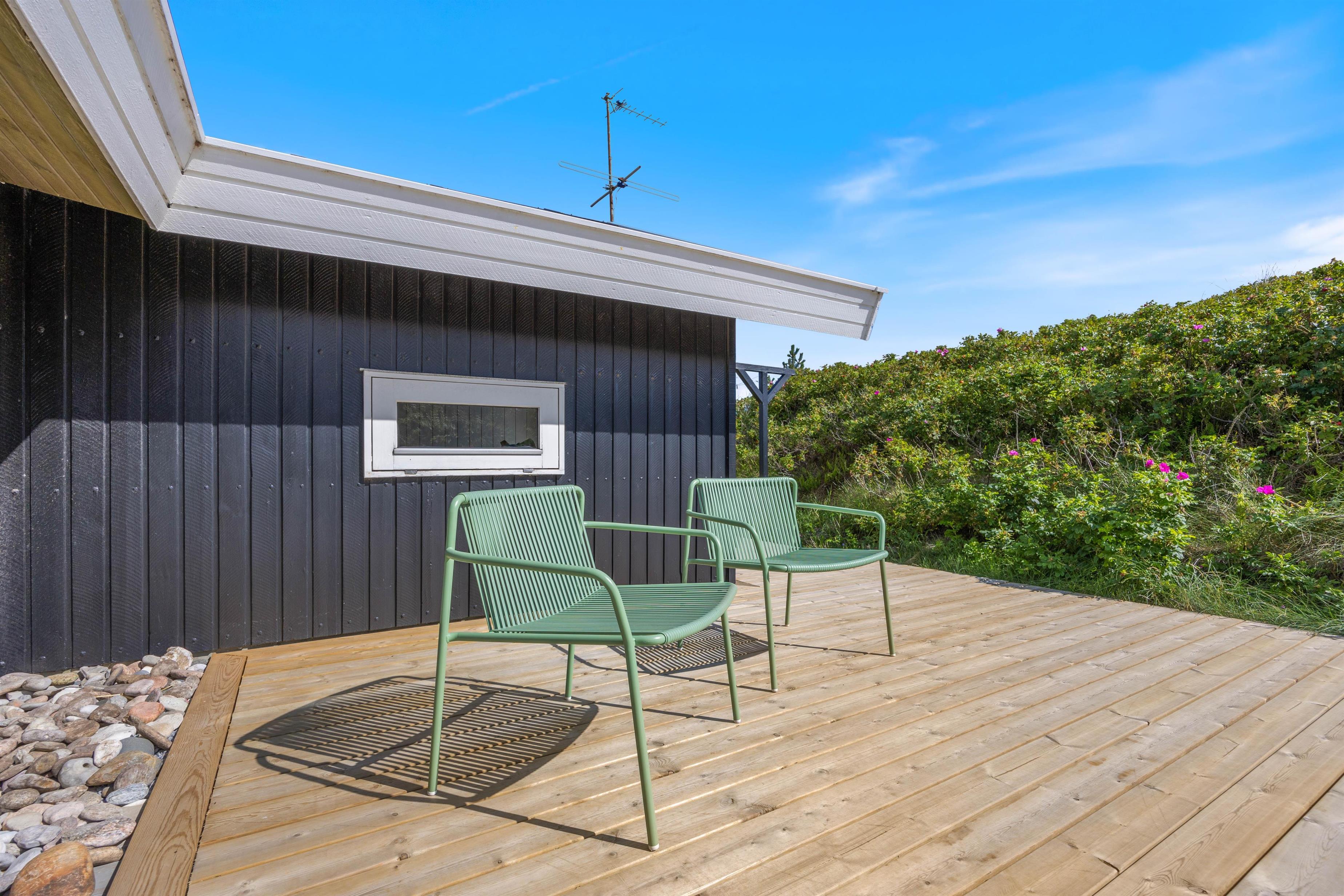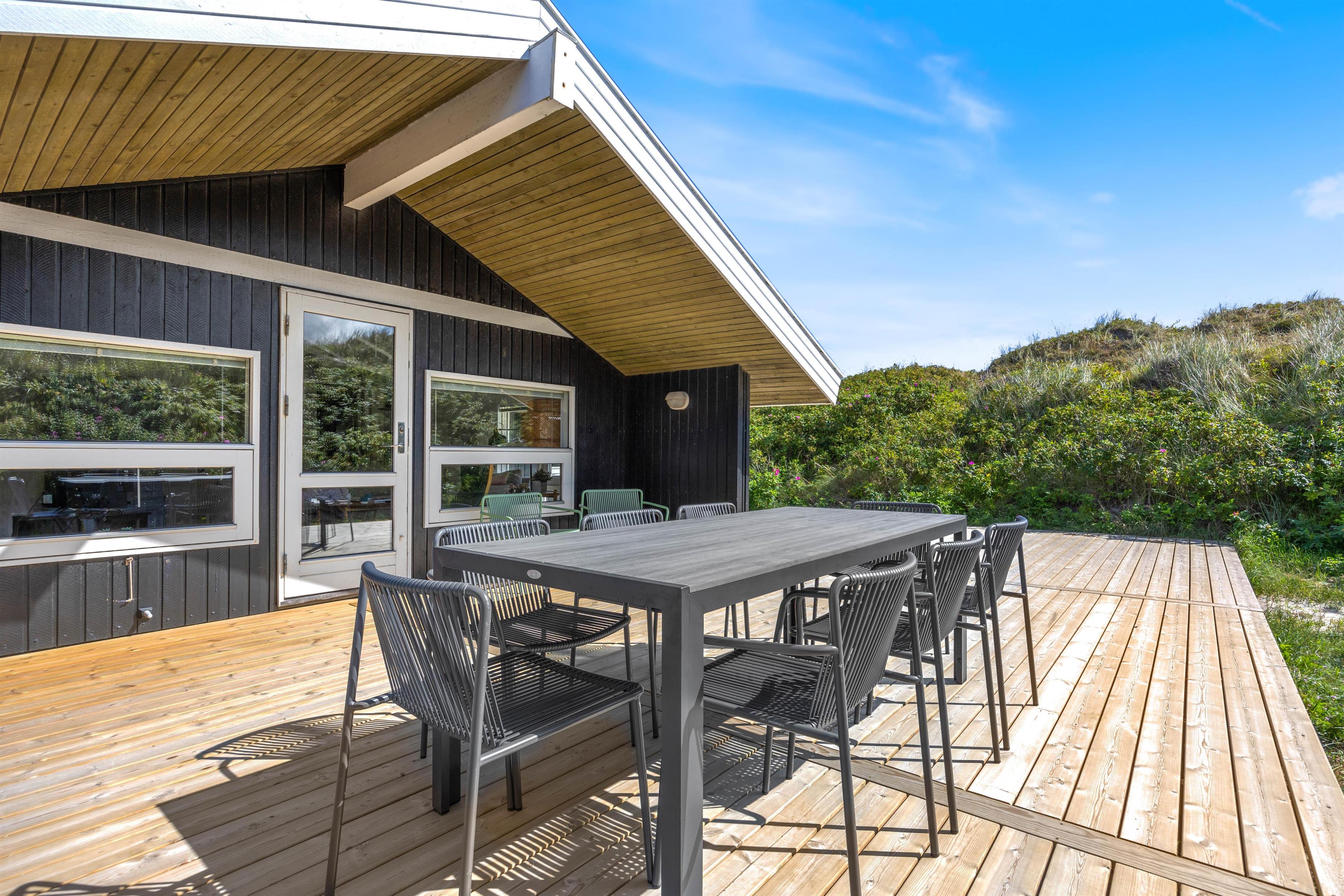 Med en beliggenhed kun 500 meter fra Vesterhavet har I mulighed for ubegrænset ophold på henholdsvis terrasse og ved stranden. Tag eventuelt madkurven med ned på stranden, og nyd frokosten der. Når I kommer hjem, kan I tænde for saunaen og spabadet og nyde, hvordan varmen giver fornyet energi til krop og sjæl. På terrassen kan I nyde solen i dagtimerne, og tænde op i grillen til aften, så I kan nyde et lækkert grillmåltid sammen, imens skyggerne bliver lange.