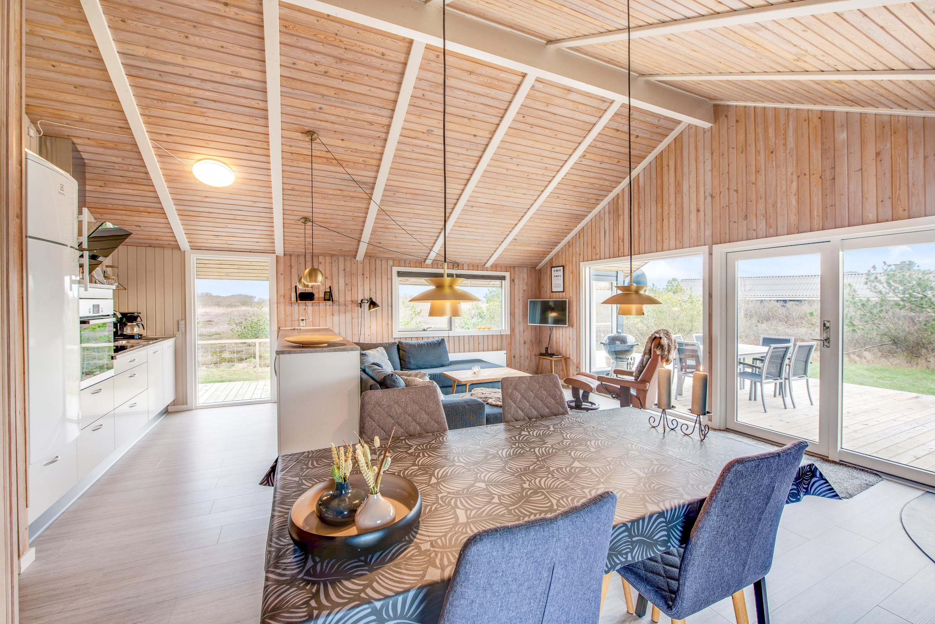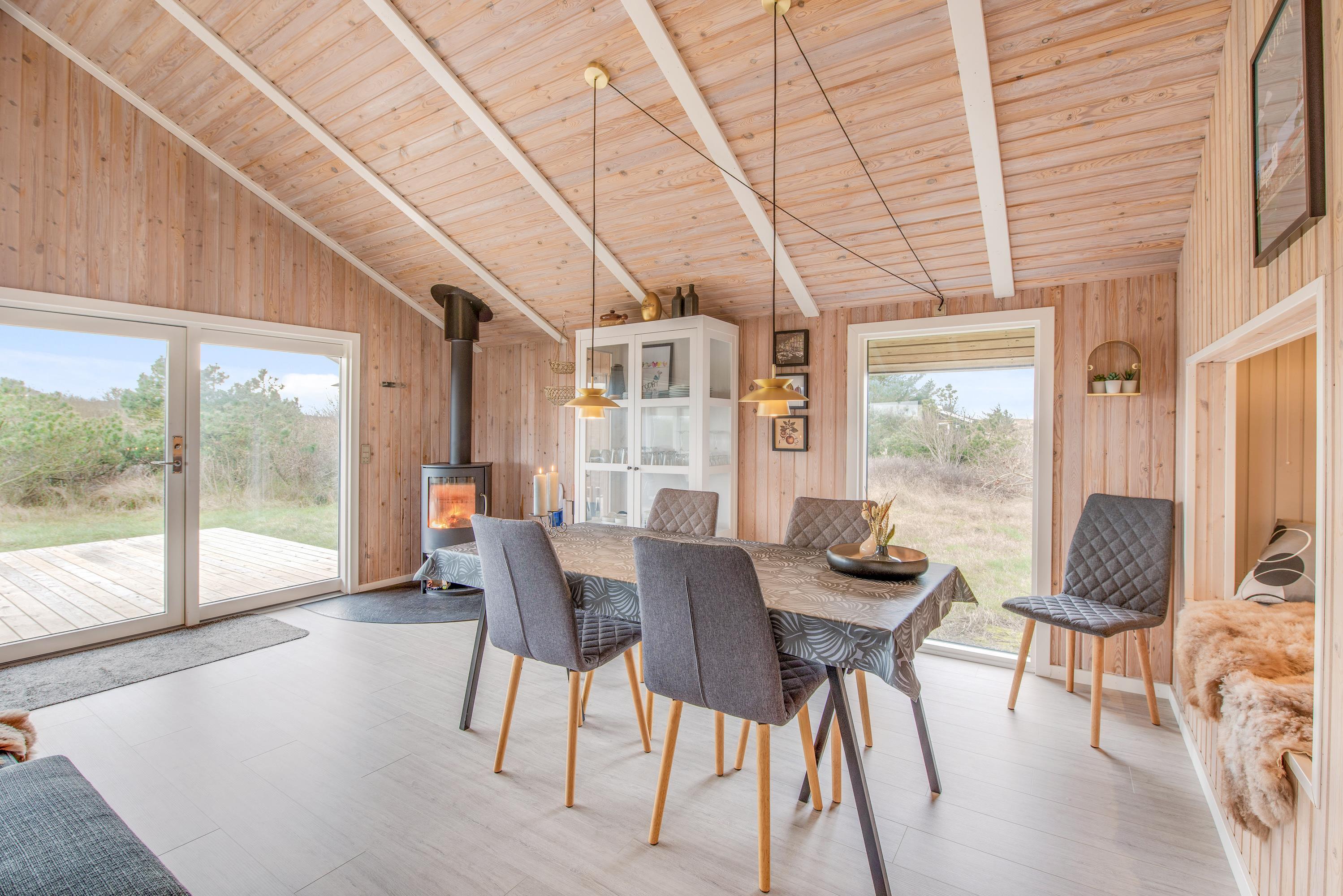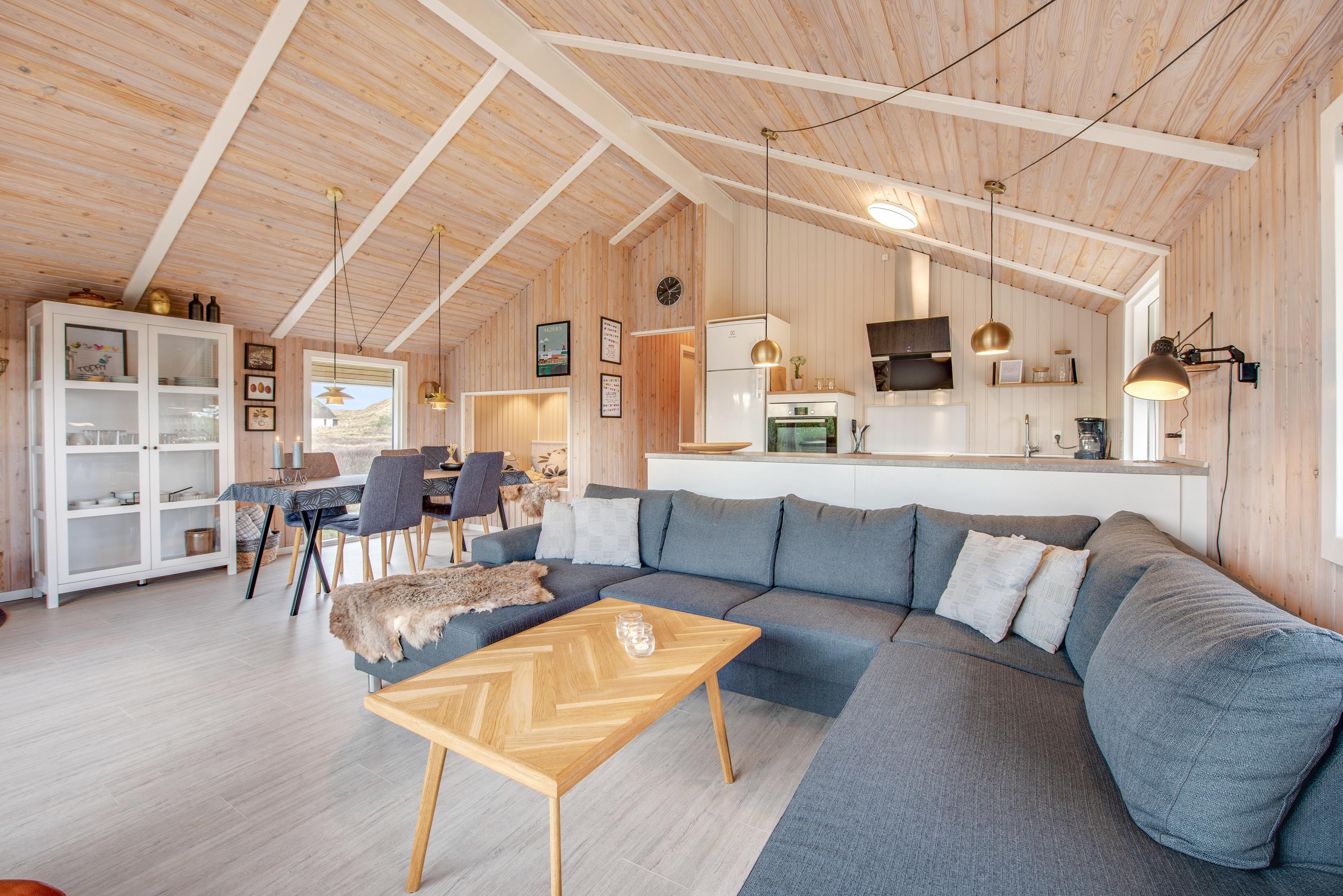 Sommerhusets hjerte er opholdsrummet, hvor både køkken, spiseafdeling og stue er slået sammen, så samvær og hygge kan komme i fokus. Her er også en lille alkove, hvor man kan sætte sig til rette med en bog eller tage en lille middagslur. Prikken over i’et er selvfølgelig brændeovnen, der ikke kun fylder hele rummet med varme, men også sætter den helt perfekte feriestemning. I sommerhuset kan I streame jeres yndlingsfilm direkte fra egen telefon. Der er både Apple-TV og Chromecast i feriehuset.