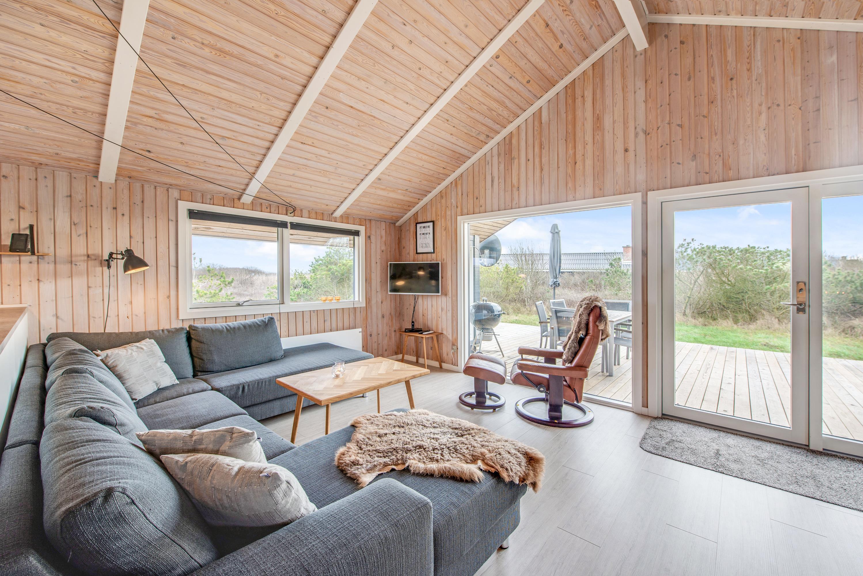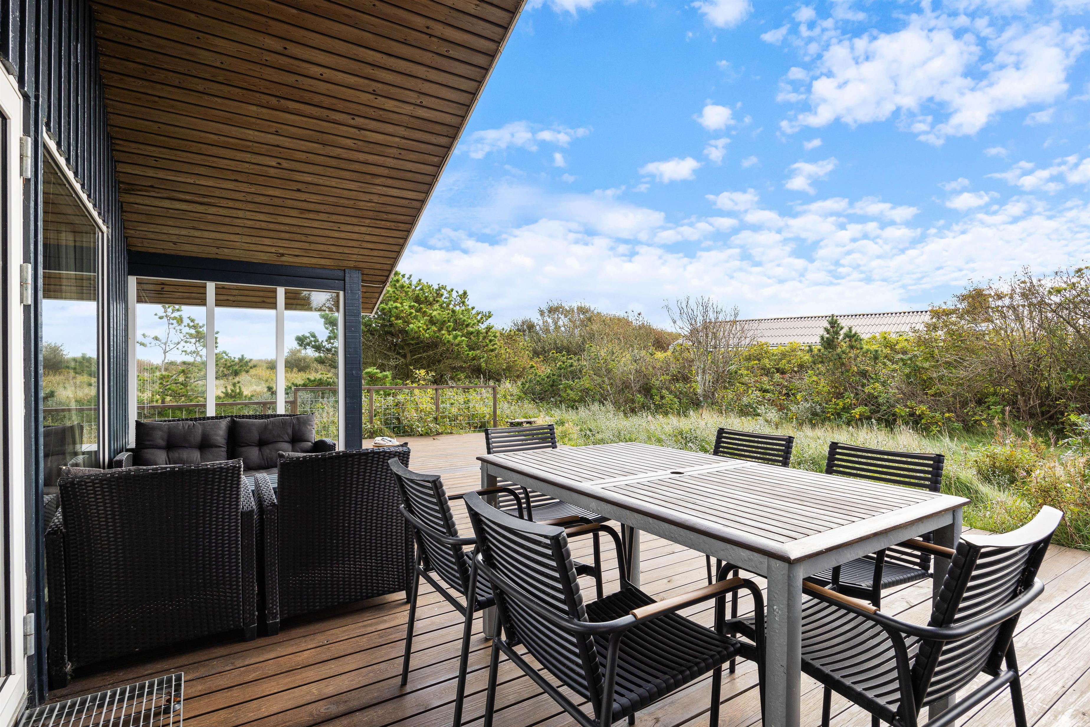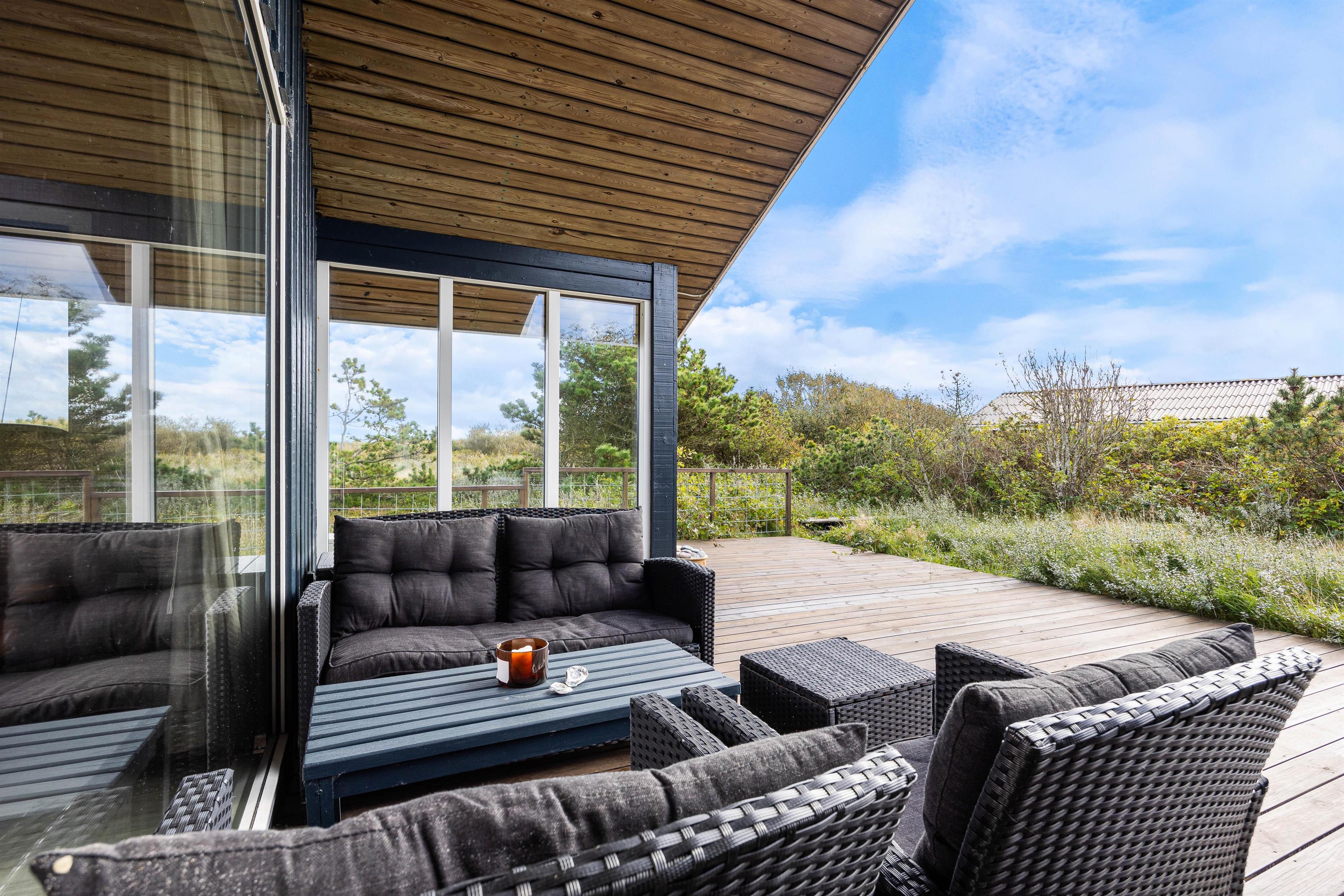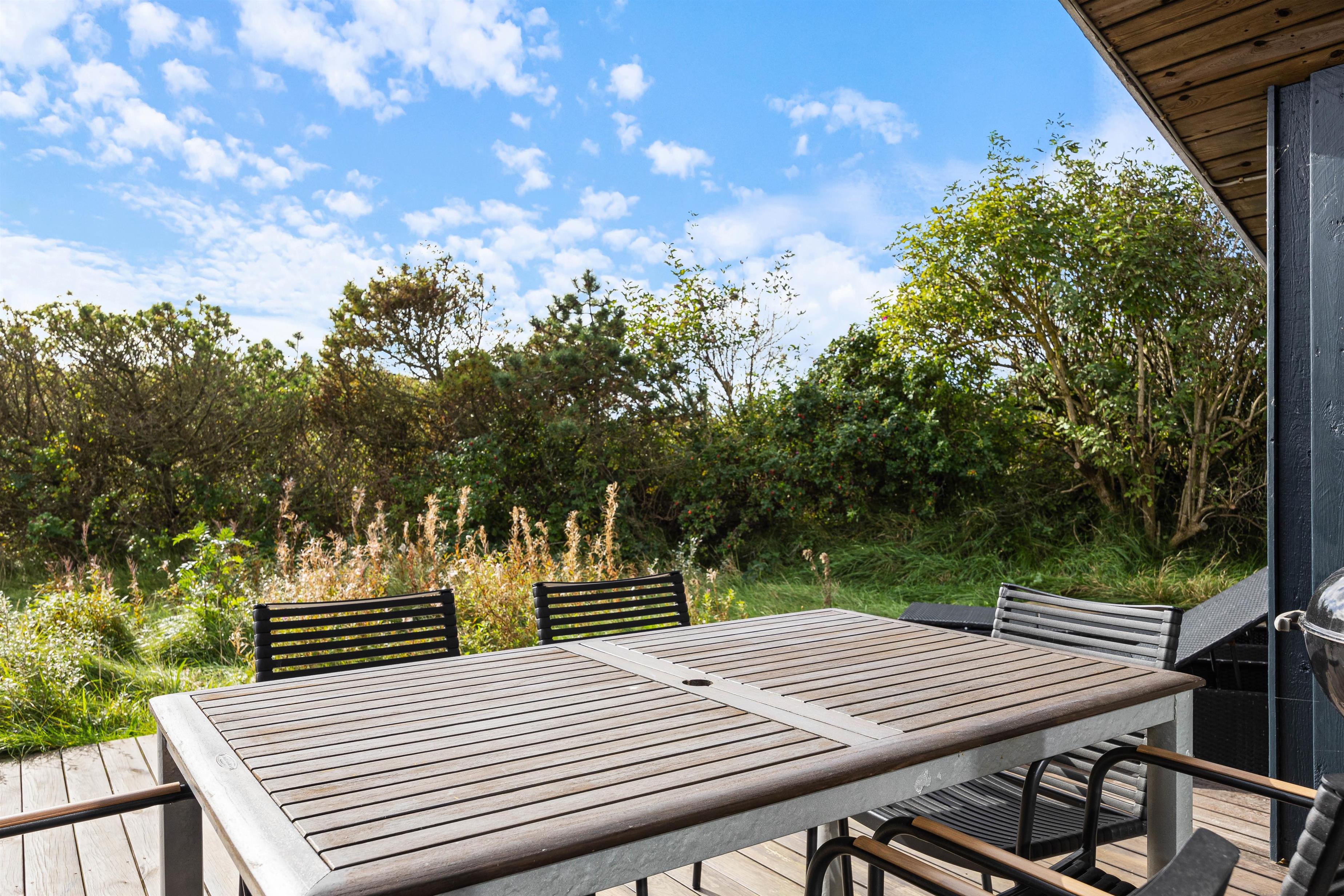 Fra stuen kommer I ud på sommerhusets fine træterrasse. Her er der både en overdækket del, hvor I kan finde ly og læ i al slags vejr, og en åben del, så I kan nyde godt af solens stråler på de gode sommerdage. Der er både havemøbler, liggestole og grill, så I har alt, hvad I skal bruge for at nyde det gode vejr – og runde af med en hyggelig grillmiddag i den lune aftensol.