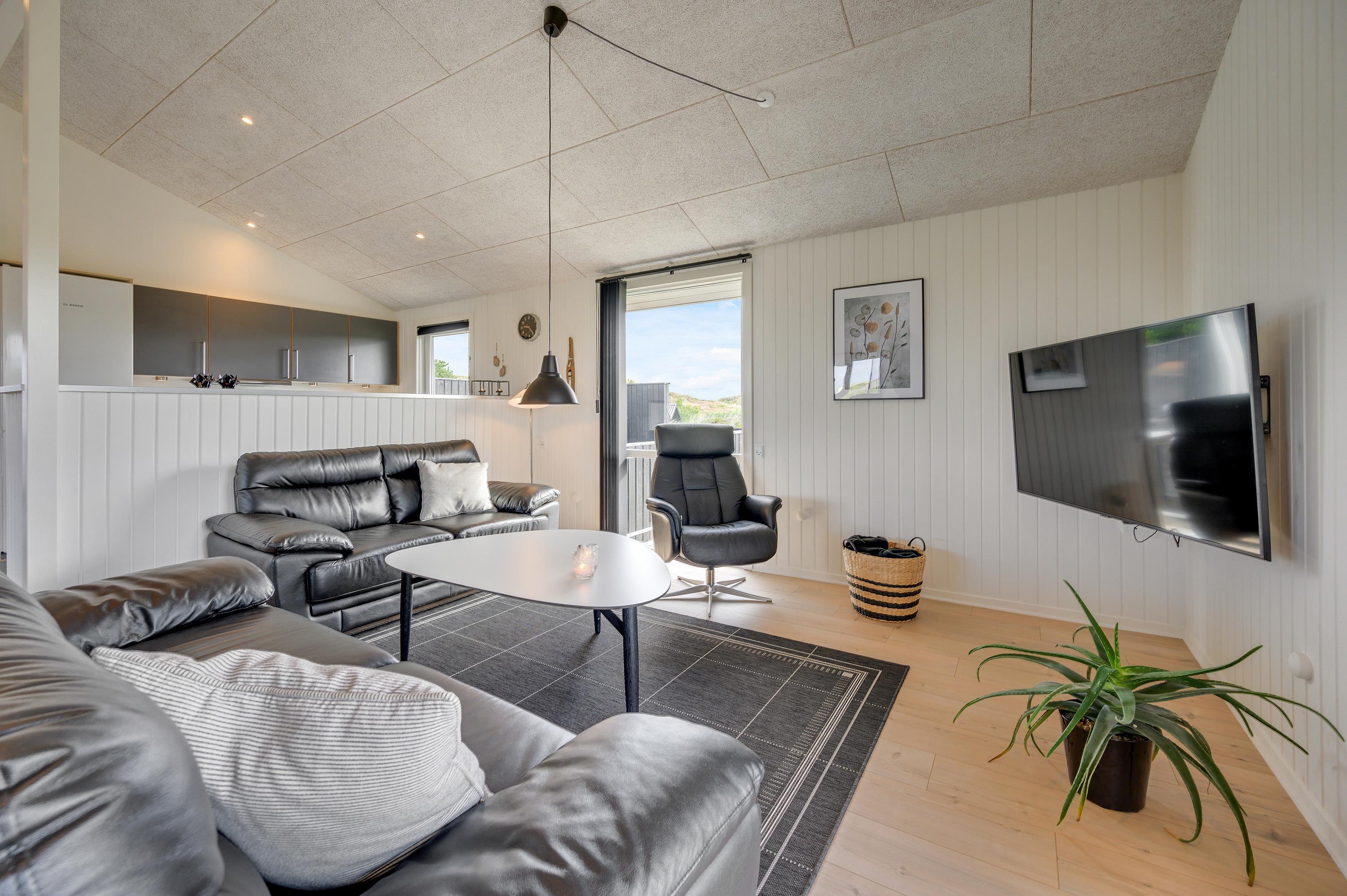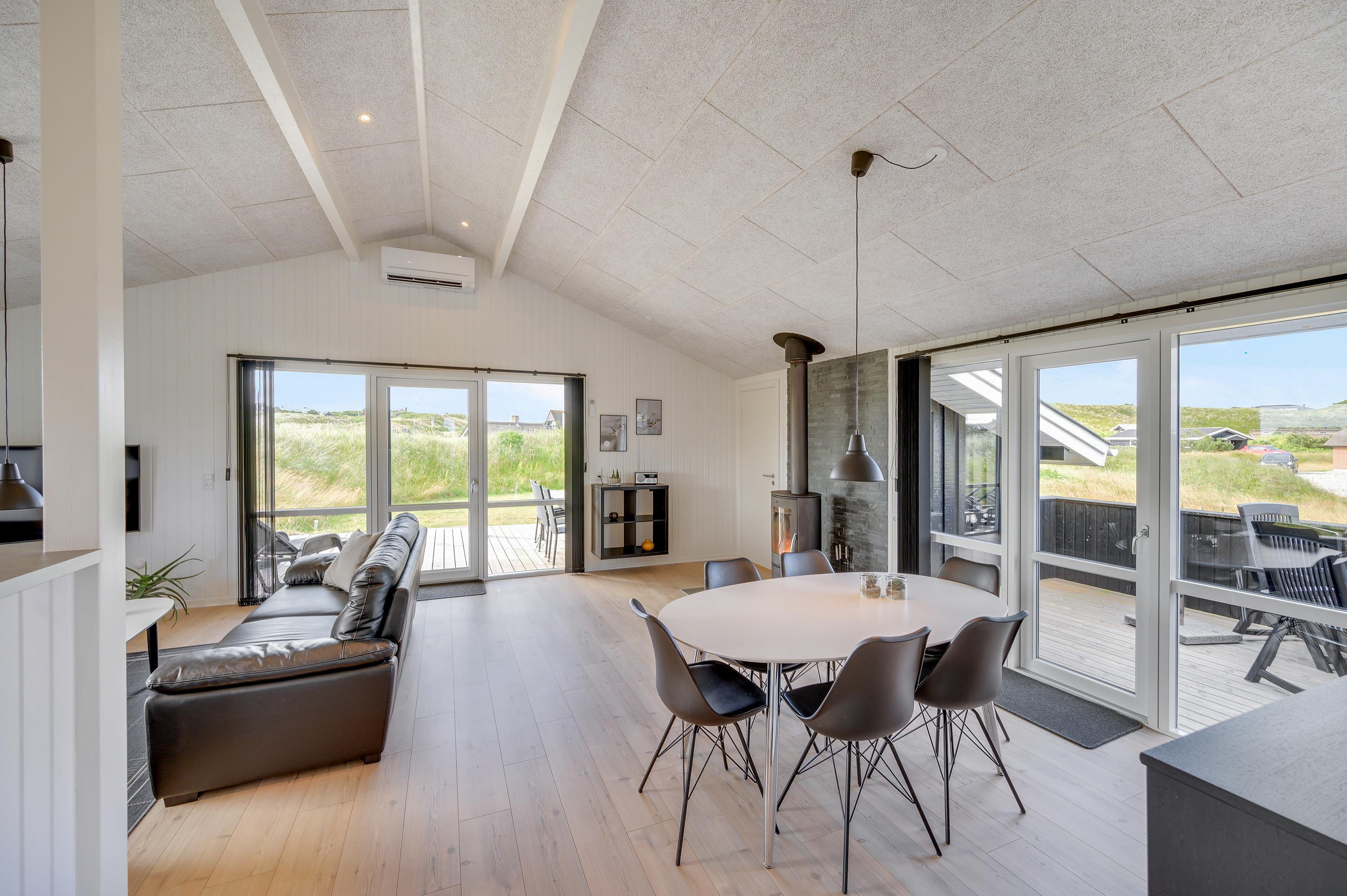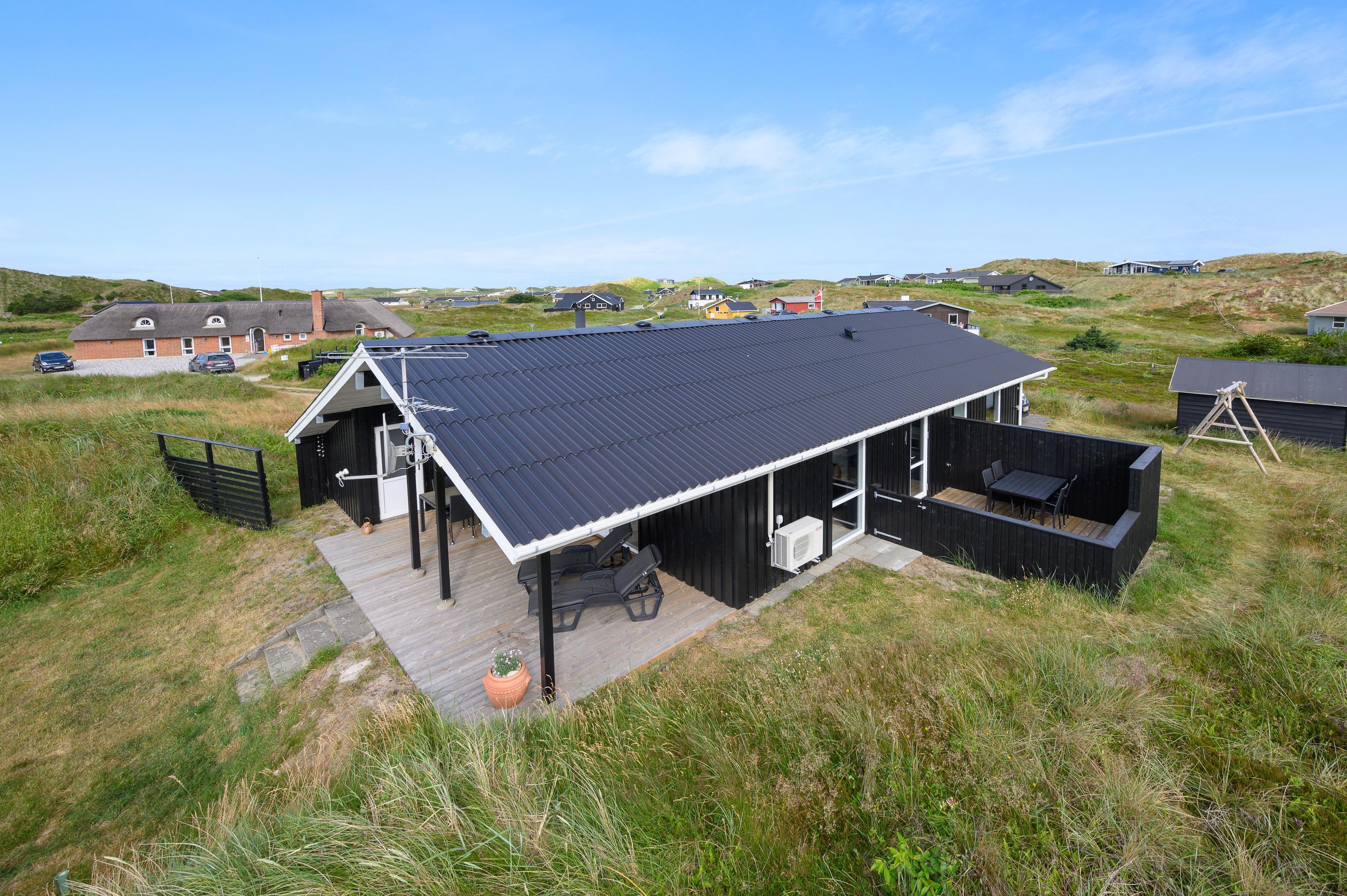 Sommerhuset ligger 700 meter fra Vesterhavet, som kan nås til fods ad Skodbjergevej gennem det flotte klitlandskab. Endnu kortere fra huset ligger den smukke Ringkøbing Fjord. Imens opvaskemaskinen tager opvasken og vaskemaskinen og tørretumbleren klarer tøjvasken, får I masser af tid til afslapning og udflugter i nærområdet.