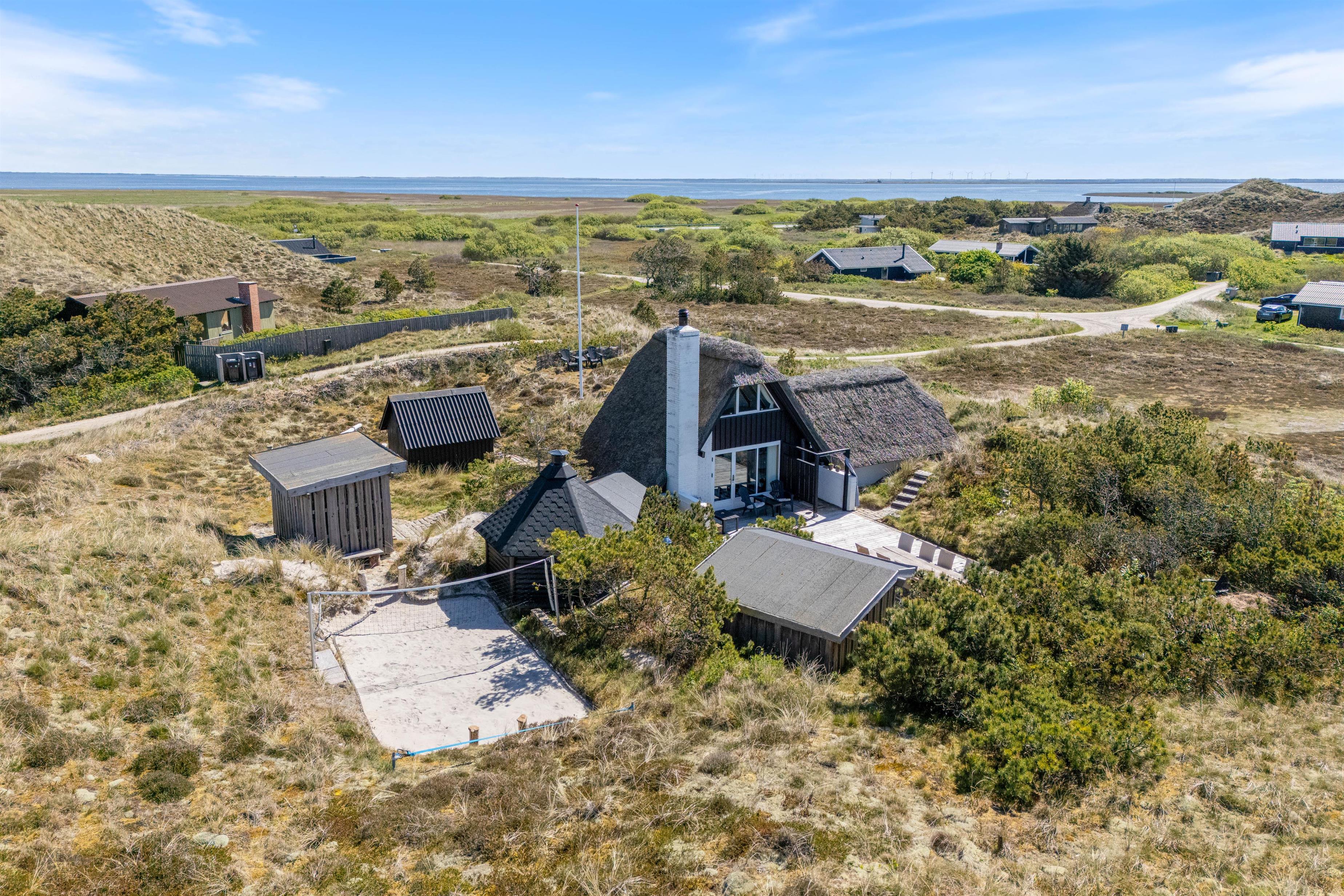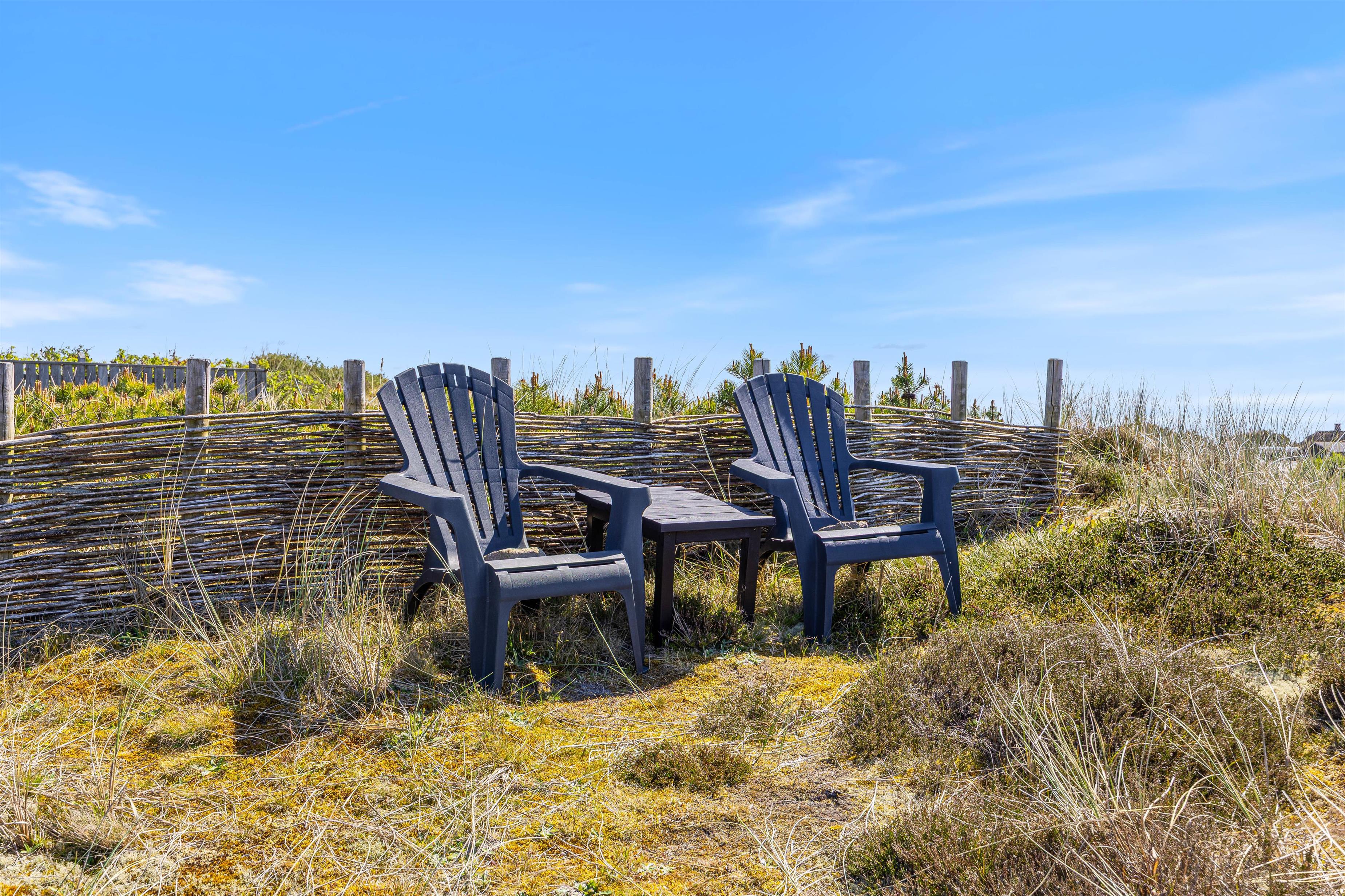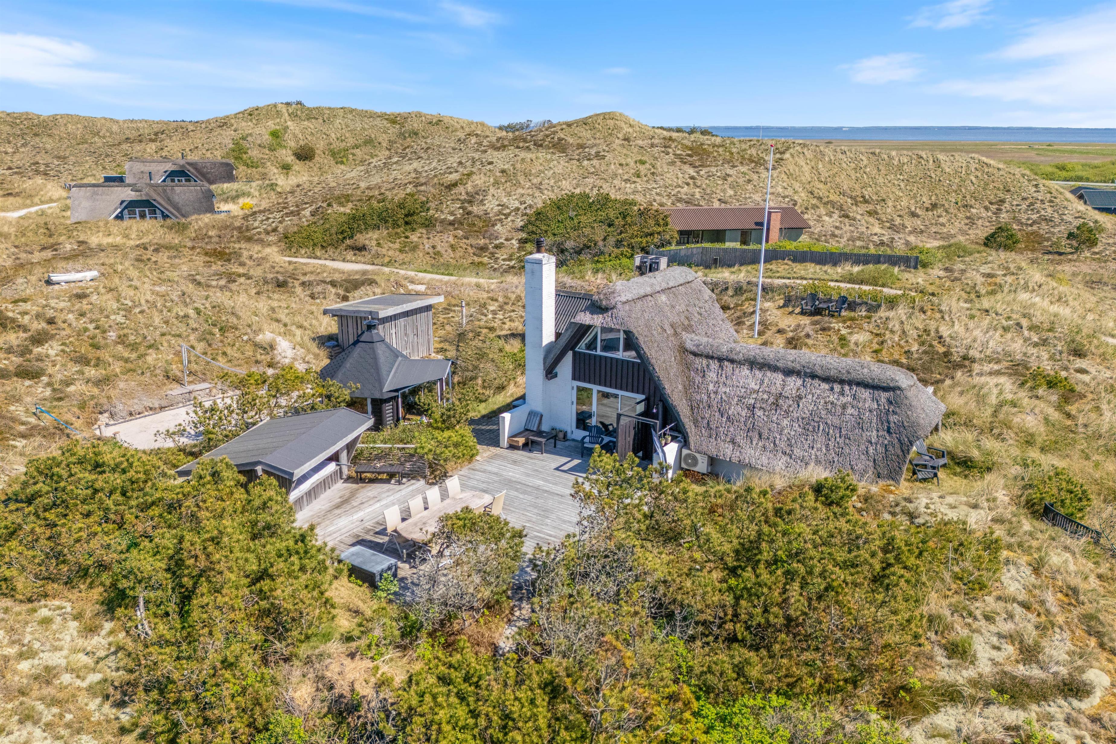 Sommerhuset har en rigtig dejlig beliggenhed på en stor klitgrund i udkanten af naturskønne Skodbjerge. Ferieområdet ligger på landtangen Holmsland Klit mellem Vesterhavet og Ringkøbing Fjord, så I både har vand mod øst og vest.