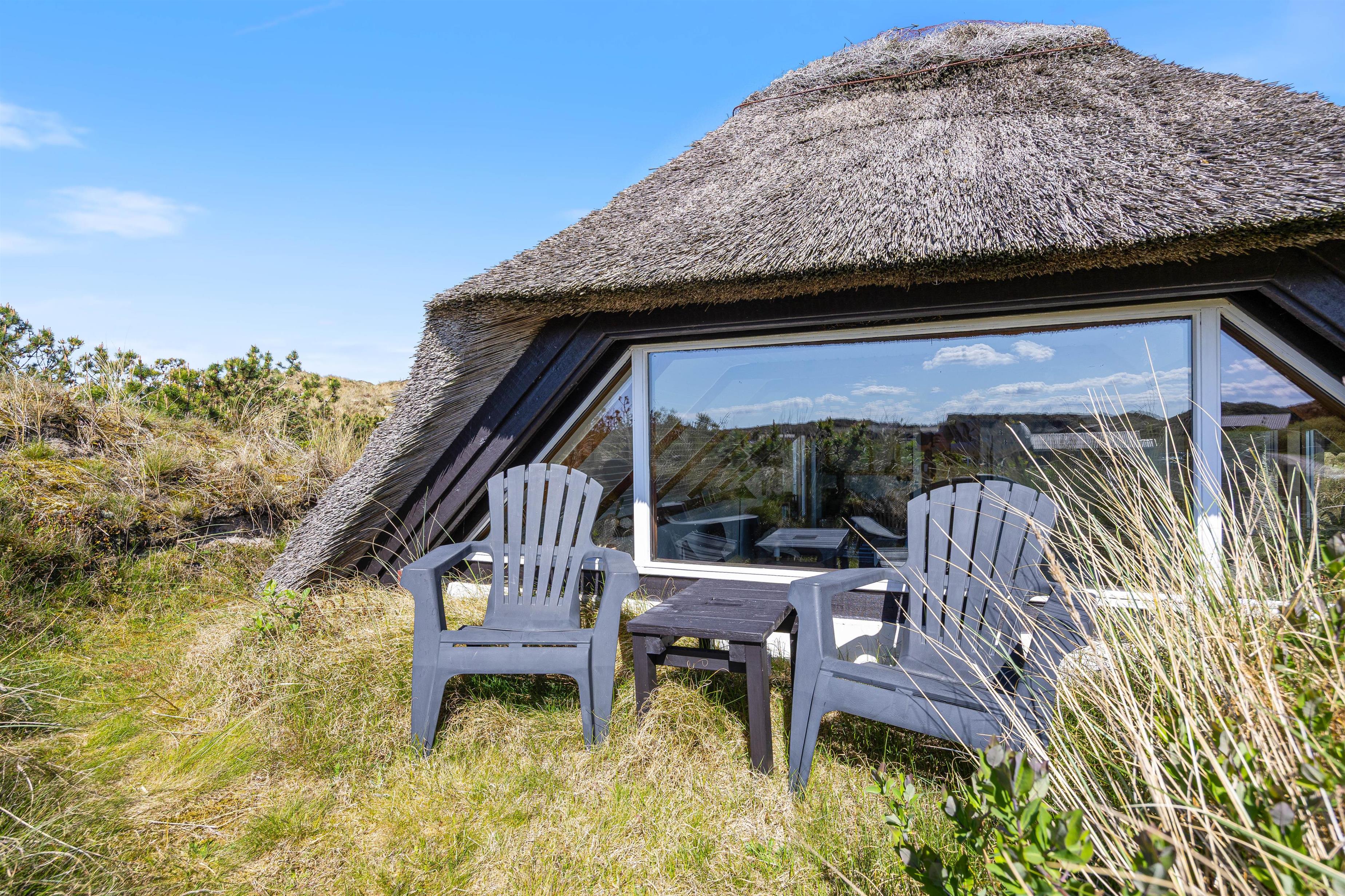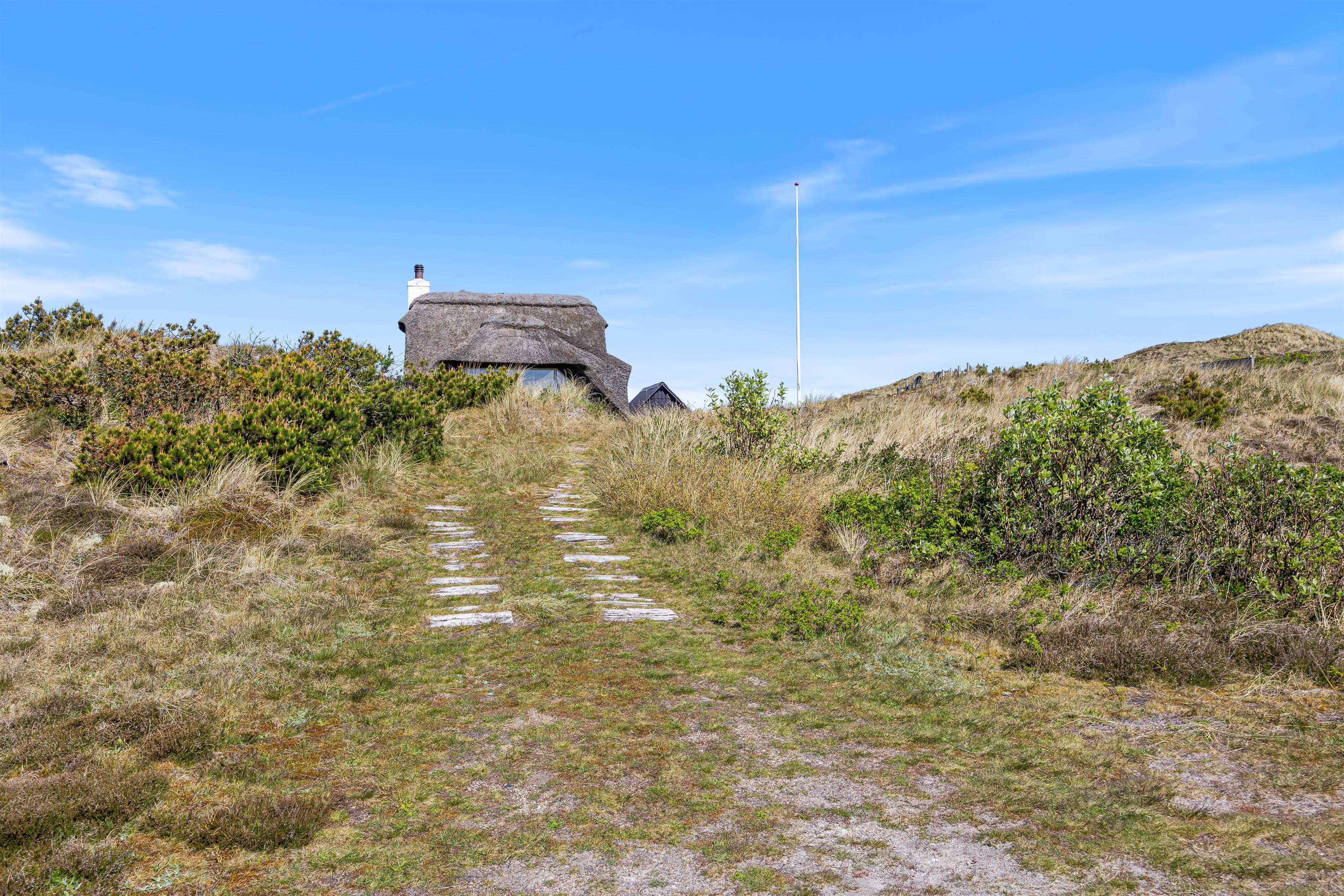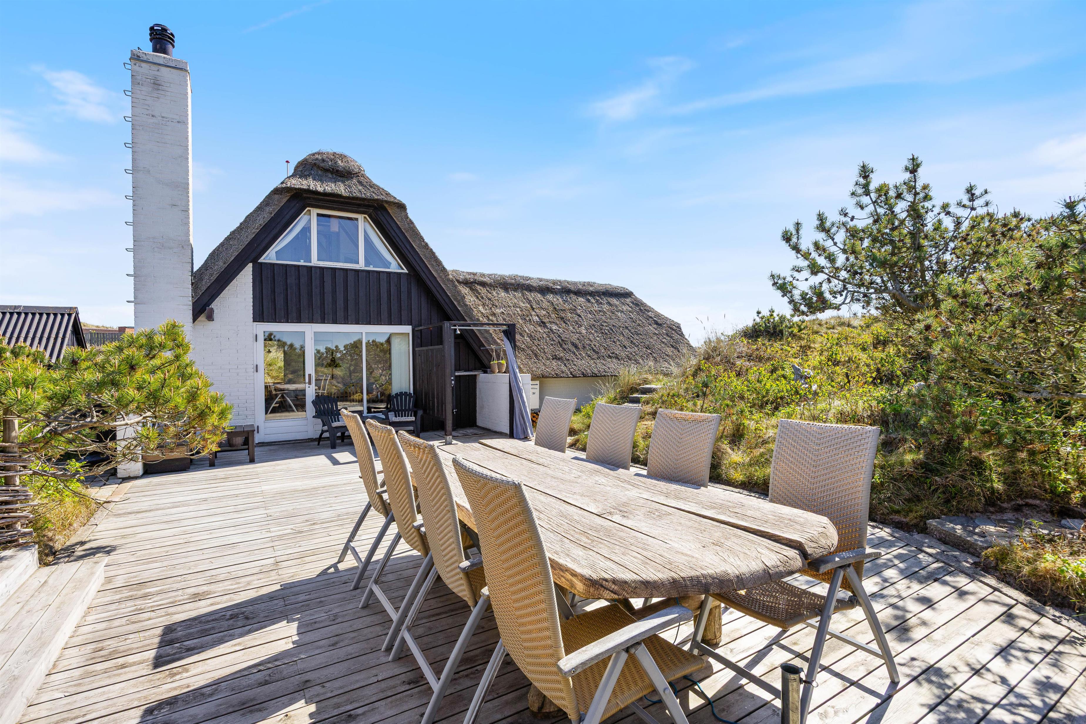 Sommerhuset har en rigtig dejlig beliggenhed på en stor klitgrund i udkanten af naturskønne Skodbjerge. Ferieområdet ligger på landtangen Holmsland Klit mellem Vesterhavet og Ringkøbing Fjord, så I både har vand mod øst og vest.
