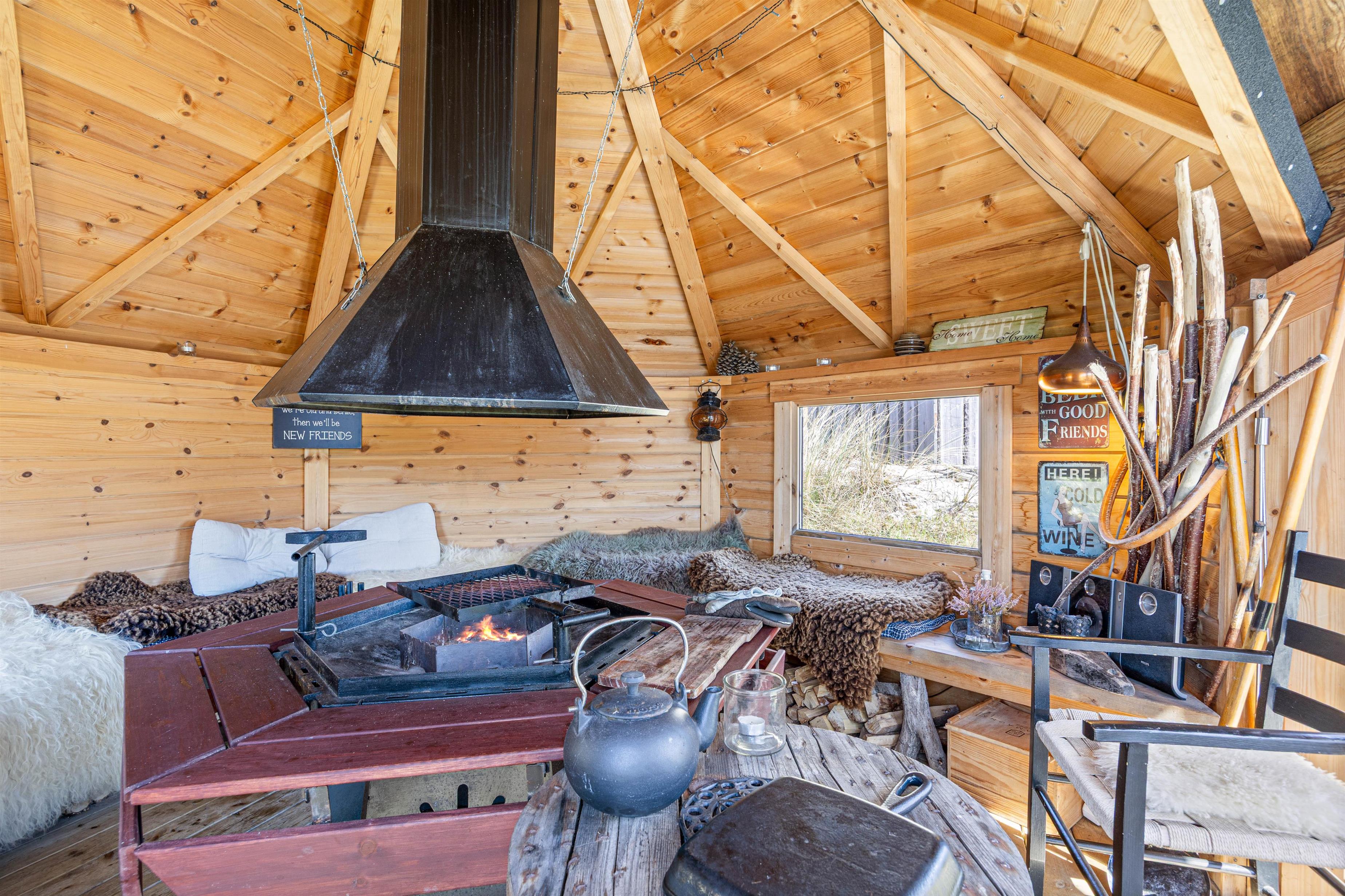 Et af feriehusets absolutte highlights er den fine bålhytte, hvor I, selv på regnvejrsdage, kan opholde jer og nyde de dejlige udefaciliteter. Her er desuden en shelter, som I kan benytte jer af til en god nats søvn i den friske havluft. Udendørs finder I også et lille skur med forskelligt fitnessudstyr – perfekt til jer, der gerne vil holde formen ved lige, selv når I er på ferie.