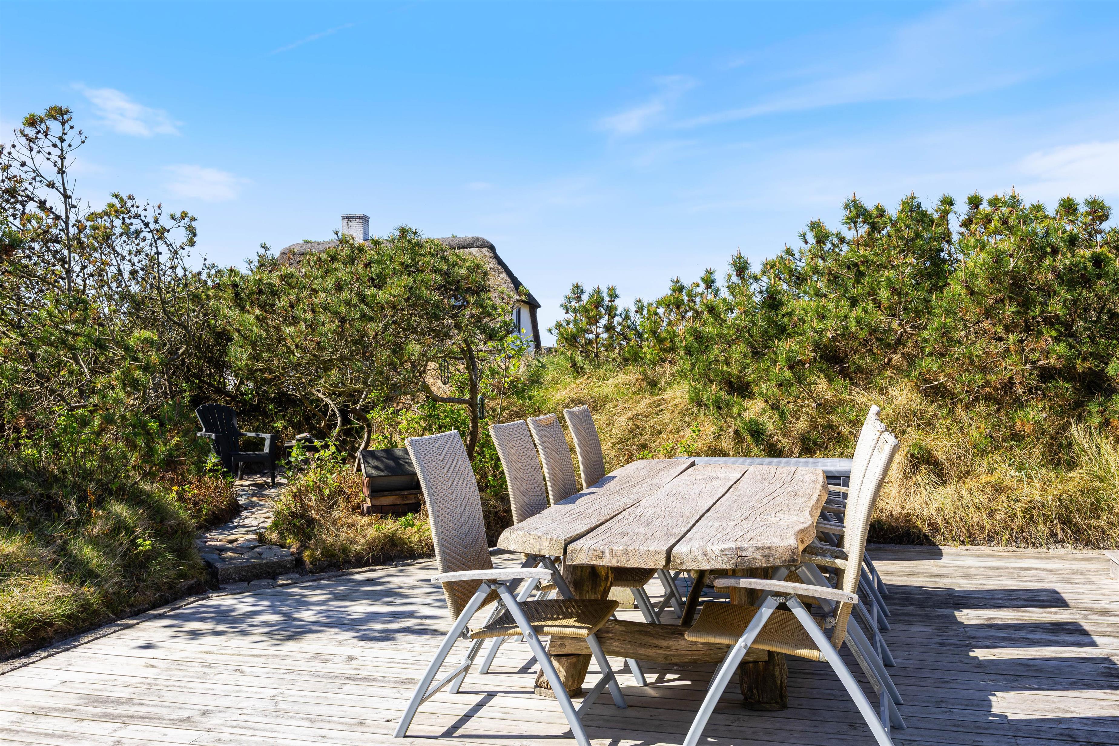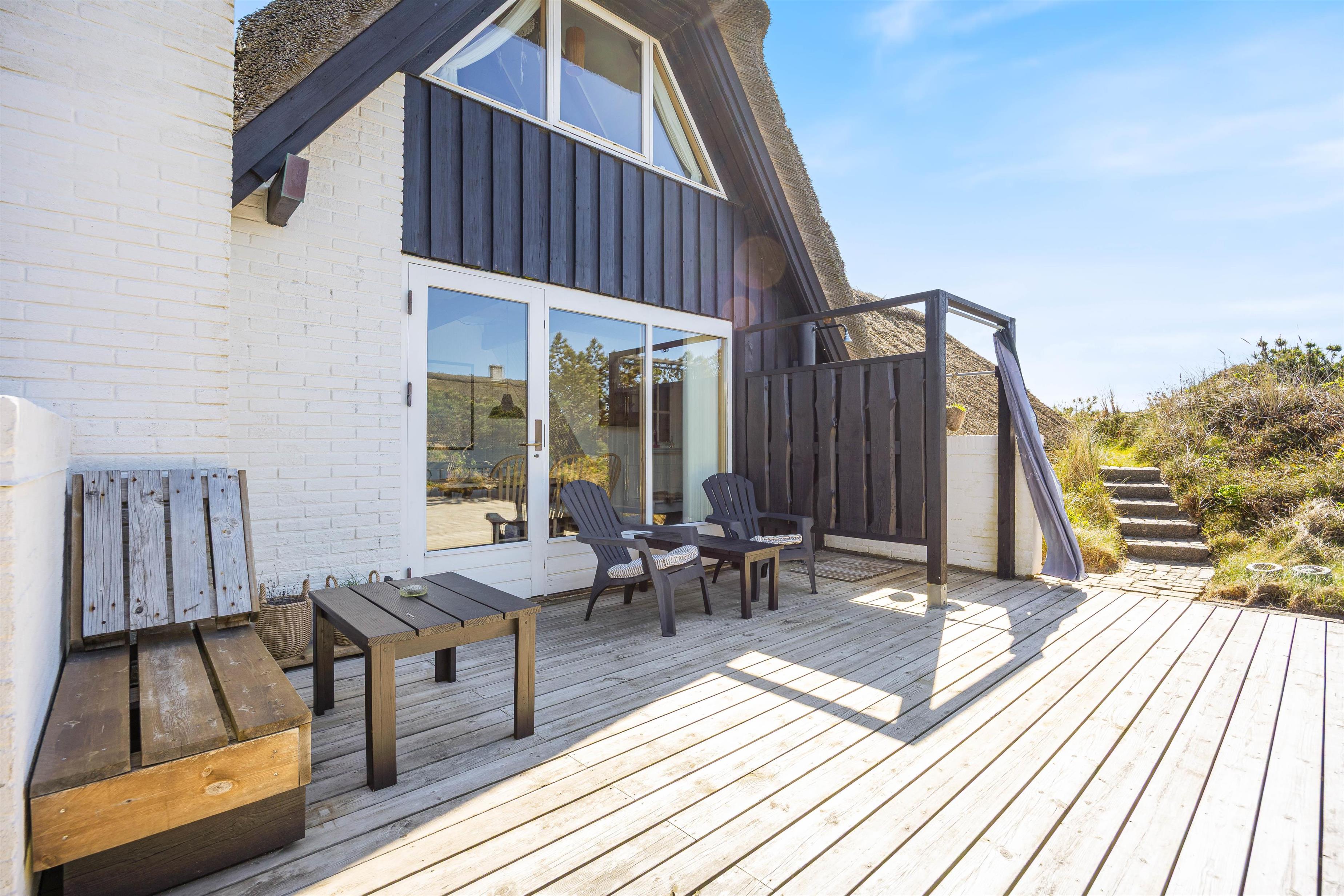 På sommerhusets afskærmede terrasse kan I afslutte dagen med et lækkert grillmåltid på en lun sommeraften, mens morgendagens ferieaktiviteter planlægges.