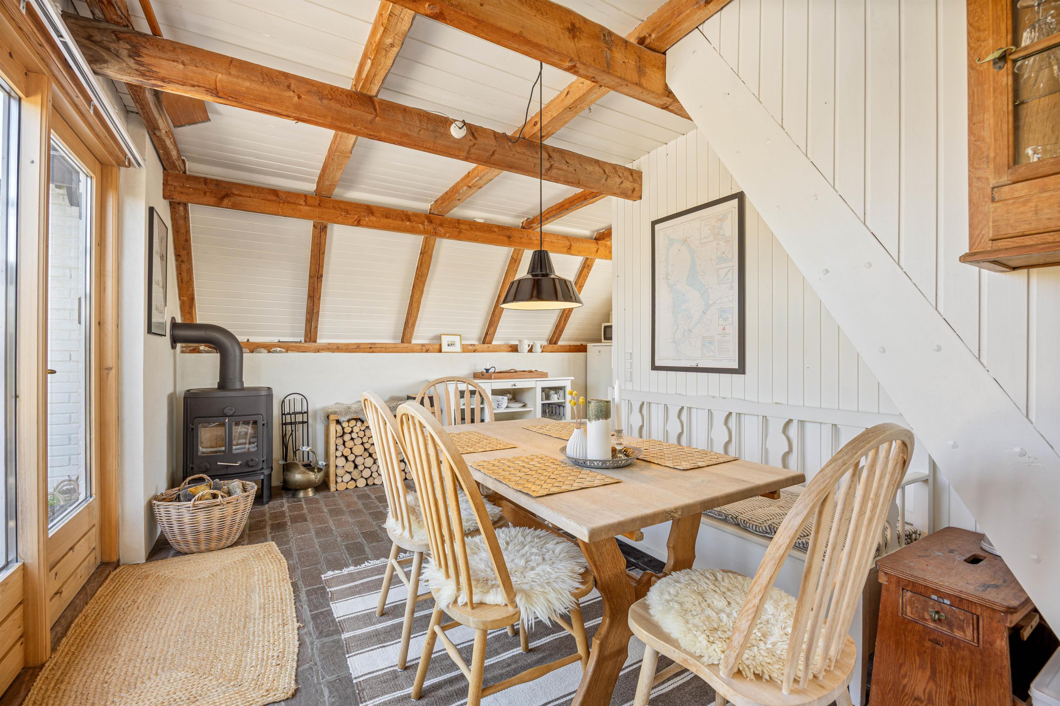 I sommerhusets opholdsrum er der en brændeovn, som ikke blot spreder varme, men også sætter prikken over i’et for den helt rigtige feriestemning. Mens ilden knitrer i baggrunden, kan I sætte jeres yndlingsfilm på fjernsynet via Chromecasten. Her er desuden en energibesparende varmepumpe til at holde en behagelig temperatur.