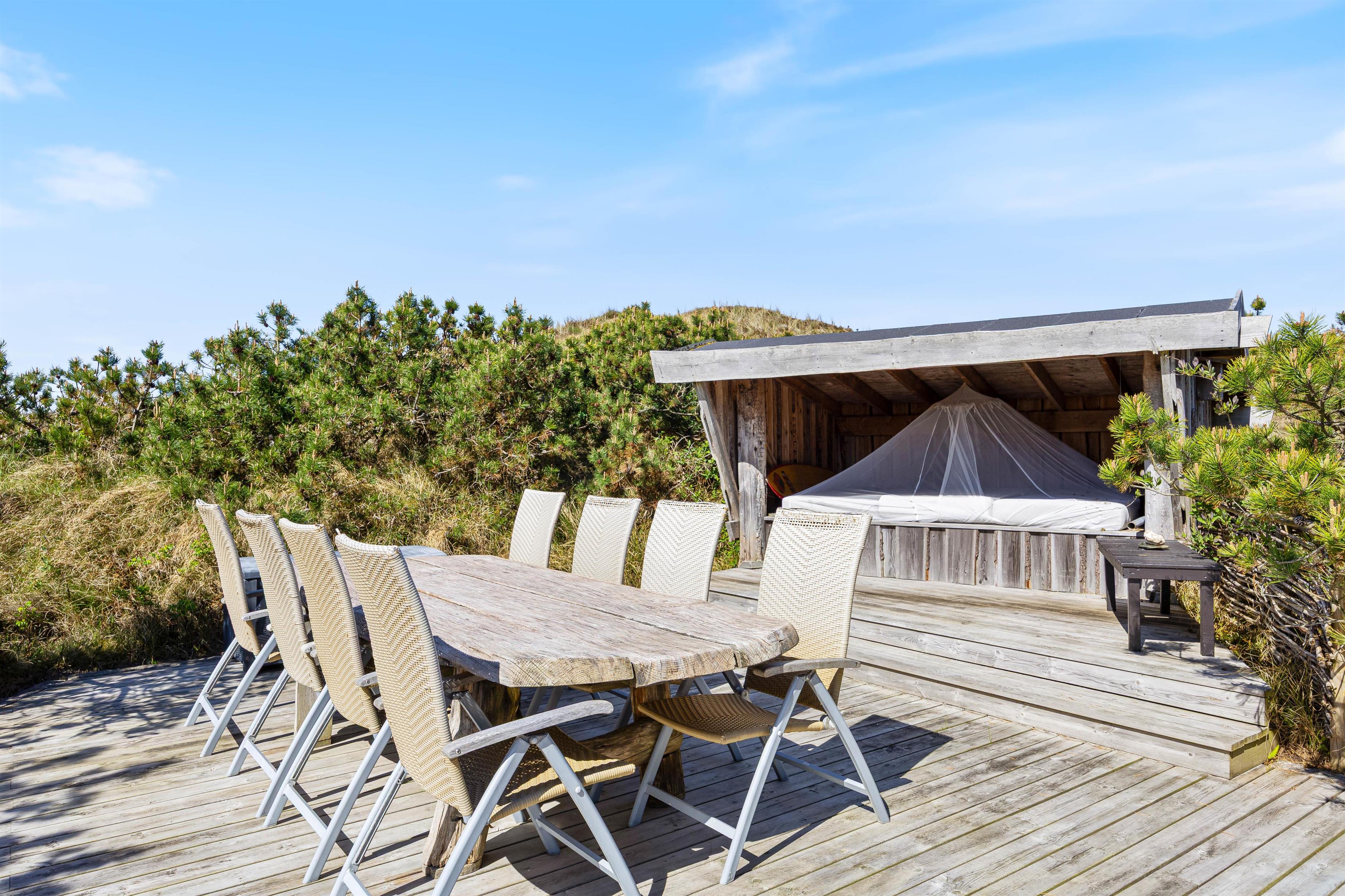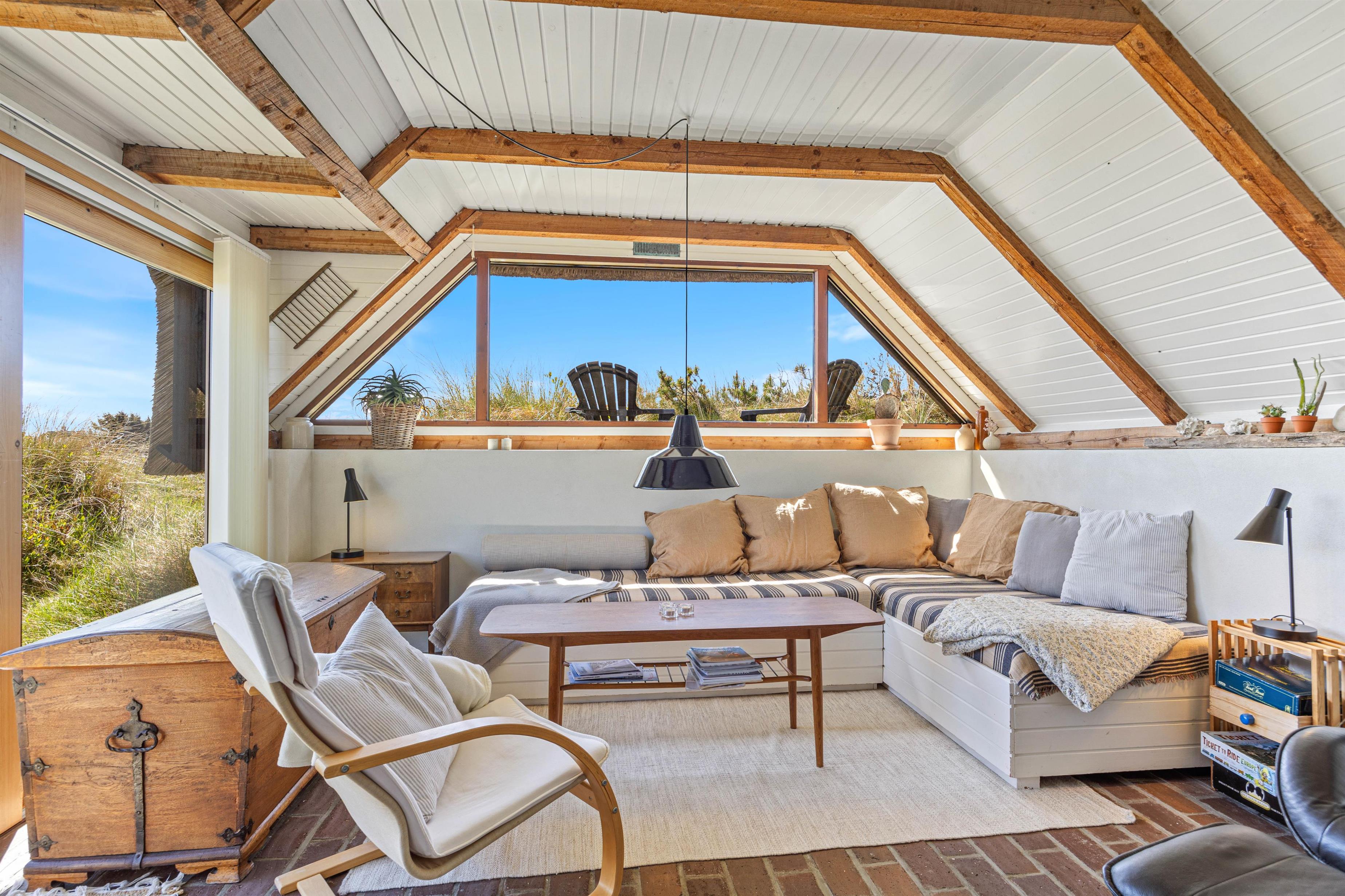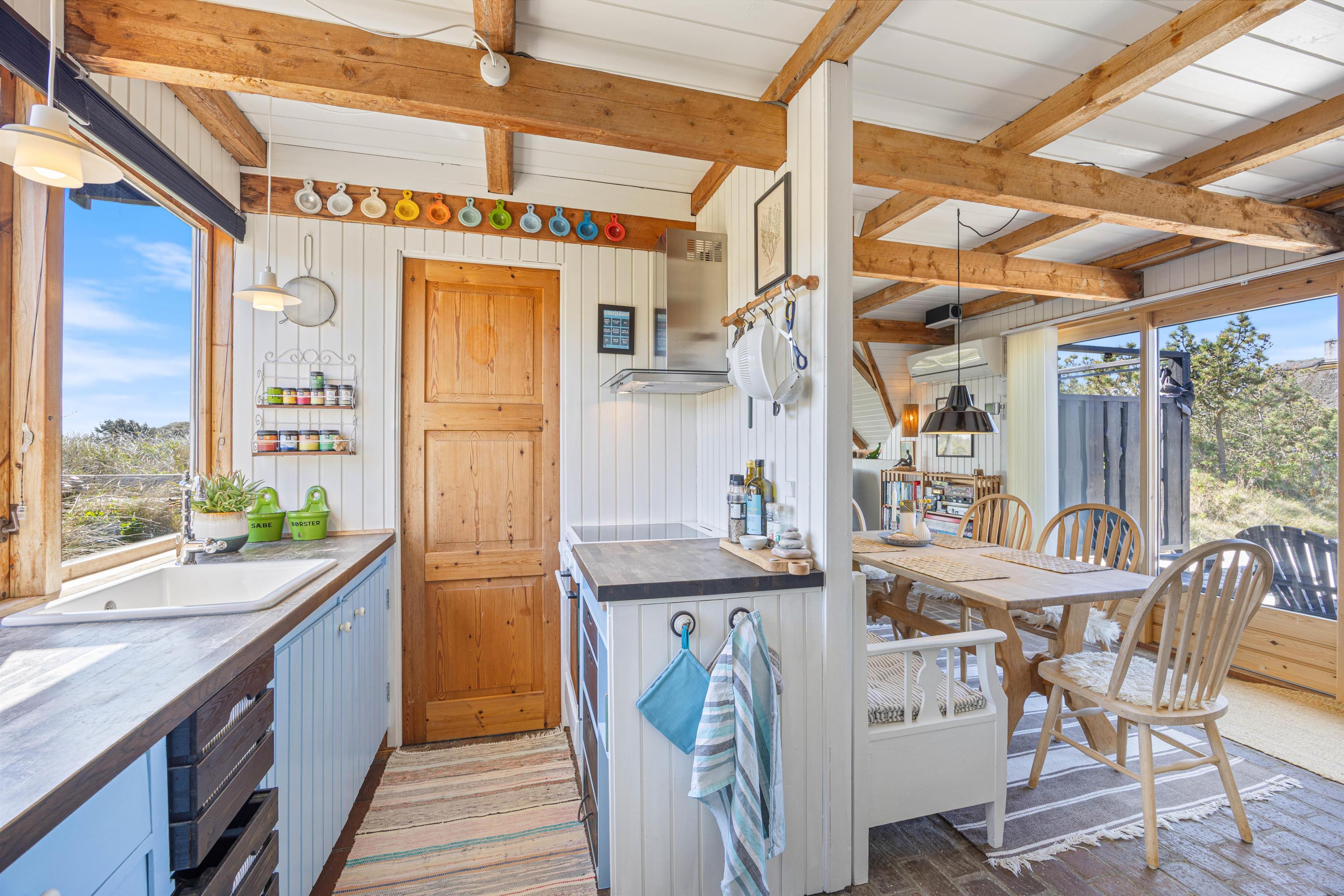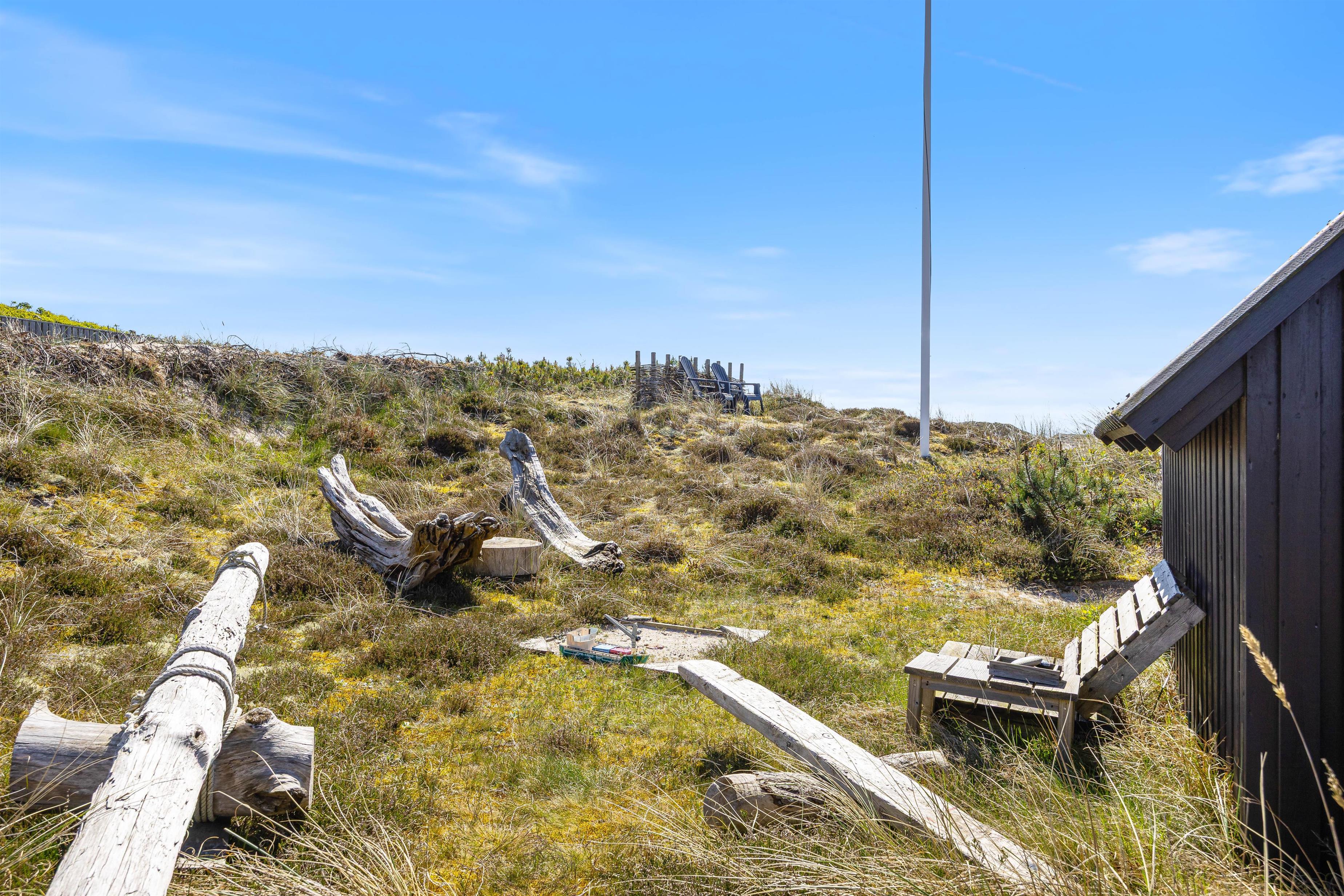 På en stor klitgrund i Skodbjerge ligger dette hyggelige sommerhus med plads til 4 feriegæster. Sommerhuset indbyder til mange hyggelige stunder både inden- og udendørs. I sommerhusets opholdsrum er der brændeovn, og udendørs finder I blandt andet udebruser, shelter, bålhytte og et lille skur med fitnessudstyr. På en varm sommerdag kan I gå med fødderne i vandkanten på stranden, som ligger 600 meter herfra.