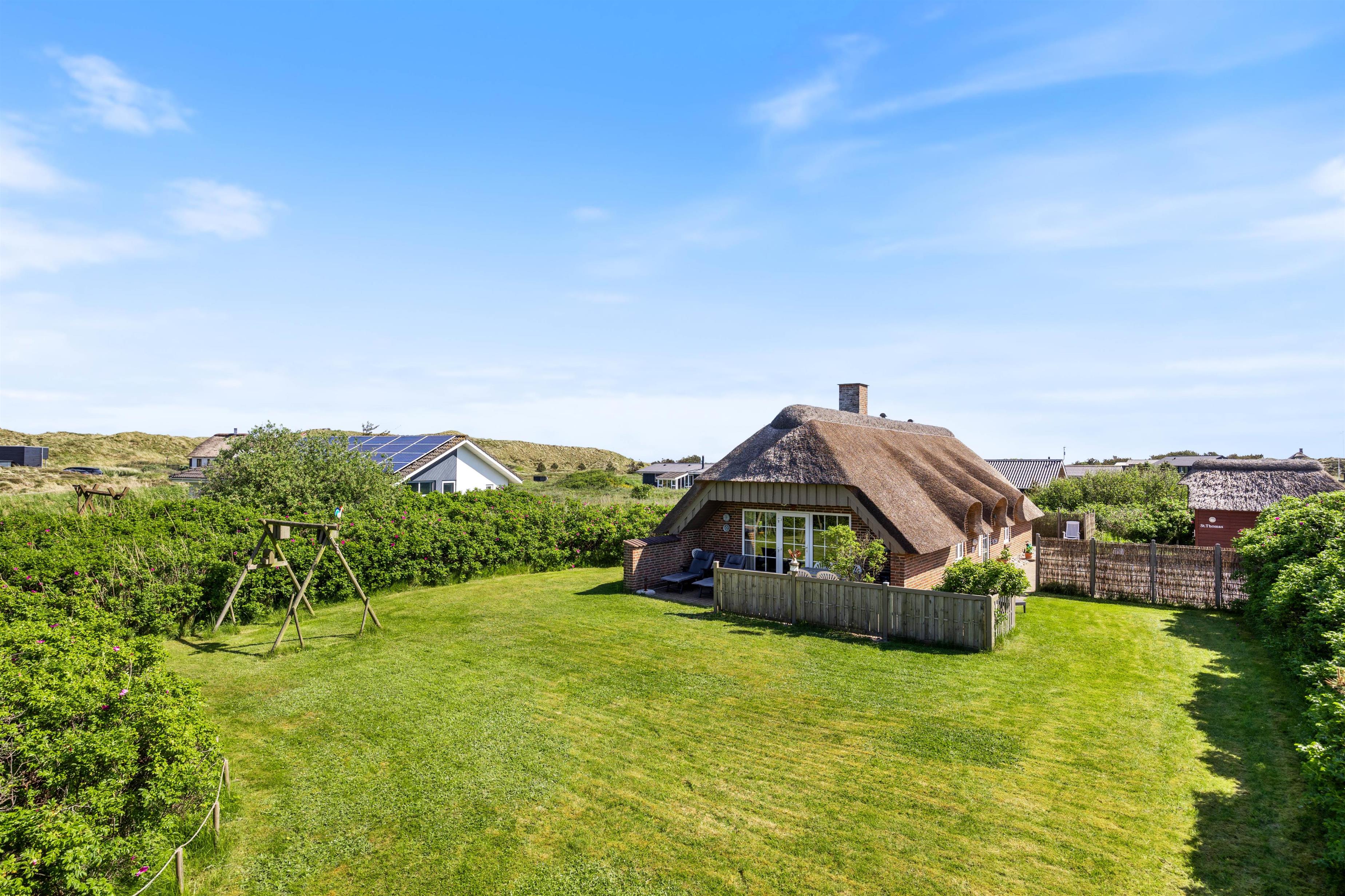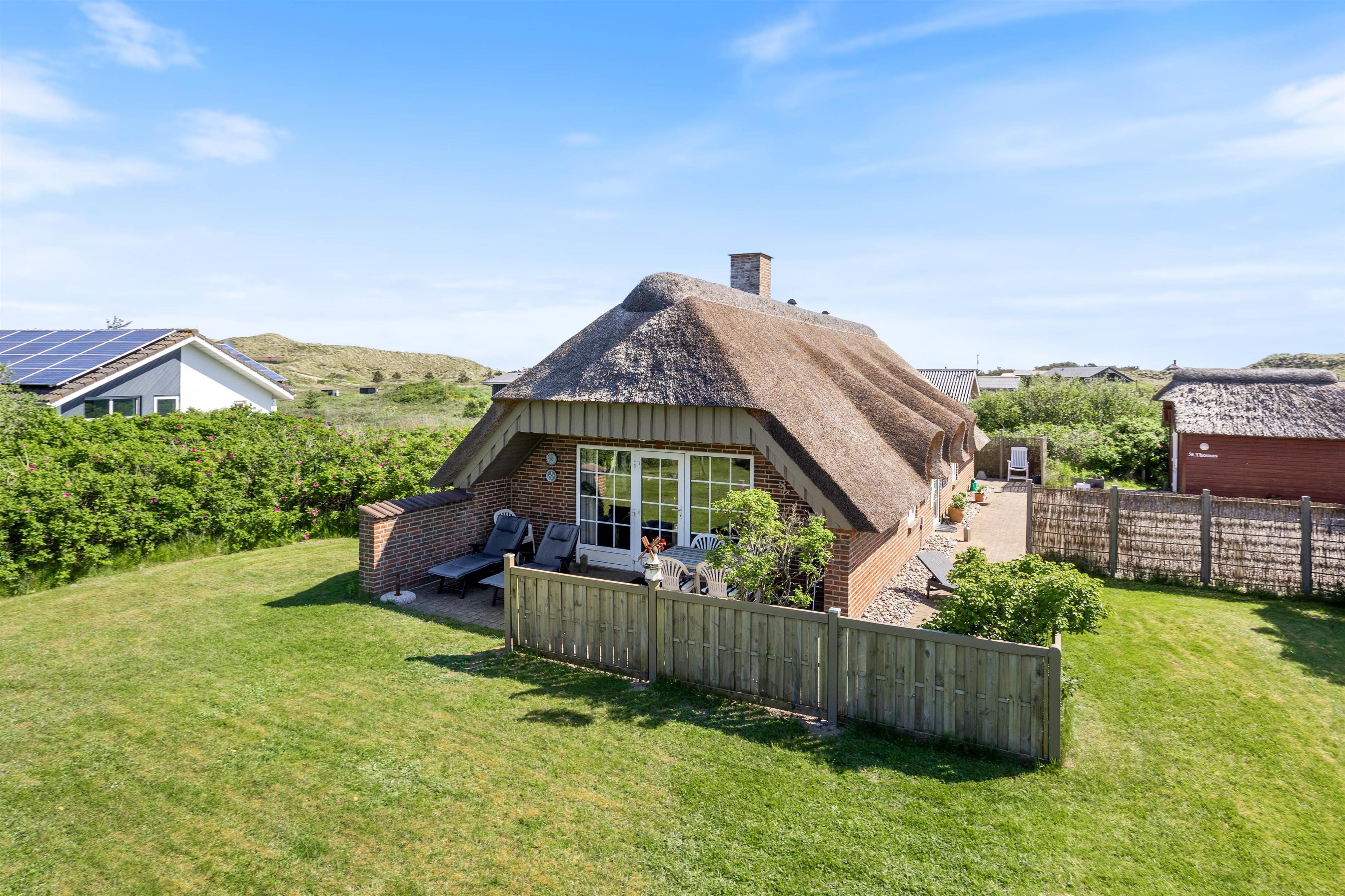 Feriehuset ligger i det smukke Skodbjerge, kun 500 meter fra Vesterhavet og de kilometerlange sandstrande. Følg stien gennem klitterne og nyd lange gåture langs vandkanten, saml skaller eller tag en forfriskende dukkert i det kølige hav. Den nærliggende havneby Hvide Sande tilbyder udover indkøbsmuligheder også mange aktiviteter som windsurfing, vandski, fiskeri eller bare afslappede dage på stranden. Hvide Sande er kendt for sit mangfoldige fritidsudbud og havneatmosfære. Nyd en lækker dansk softice og kig på sælerne, der jager i havnebassinet, eller gå på opdagelse i butikkerne efter souvenirs til dem derhjemme. Benyt lejligheden til at opleve den lokale kultur og gastronomi samt at opdage den unikke natur på den danske vestkyst.