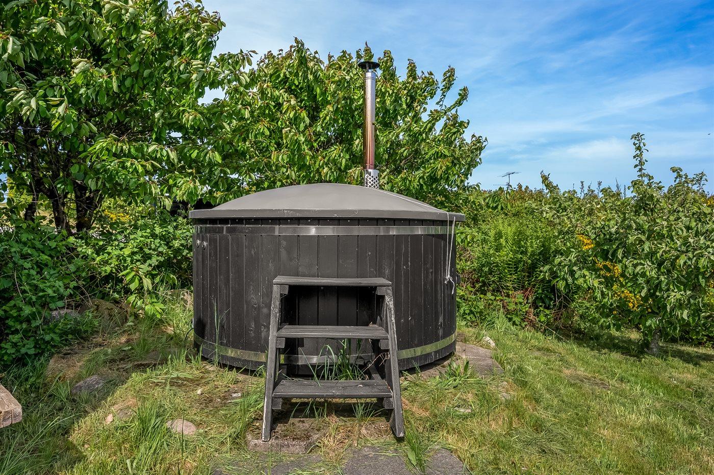 Der er mulighed for afslapning i det udendørs vildmarkskar til 6 personer.