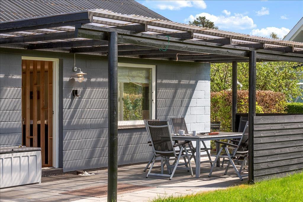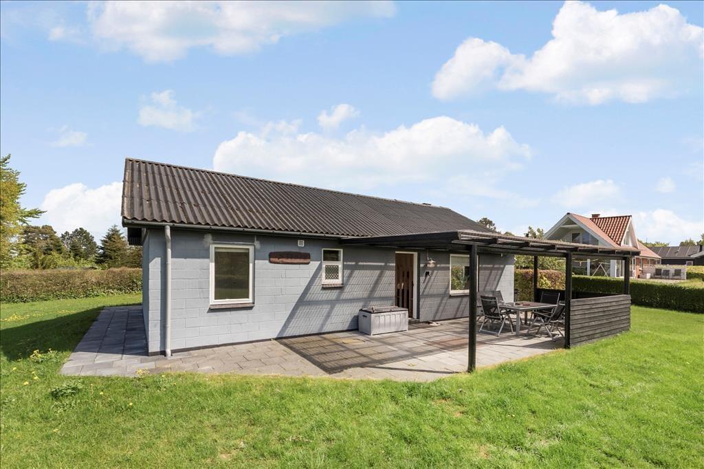 Huset ligger på en skøn grund, hvor du bliver taget i mod af en stor, grøn græsplæne, der er perfekt til leg og boldspil. Her er masser af plads til at lade børnene løbe rundt eller til at spille en venskabelig fodboldkamp. Når dagen går på hæld, kan du nyde den dejlige, overdækkede terrasse -Tænd for grillen, snup en forfriskning og fryde dig over livet. Selvom duggen falder i løbet af aftenen, kan du og familien blive siddende og nyde den varme sommeraften, samværet, naturens lyde og den rolige stemning. Det er her, feriens gode stunder virkelig kommer til live.