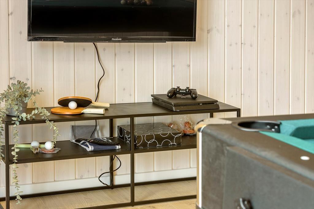 Senere på aftenen samles nogle i stuen, hvor de behagelige møbler lokker til ren afslapning. Måske rundes dagen af med en filmaften eller en intens omgang PlayStation, hvor familien deler grin og heppen.